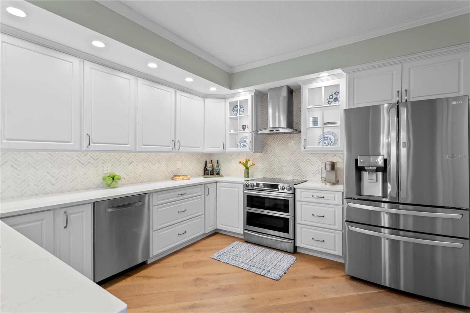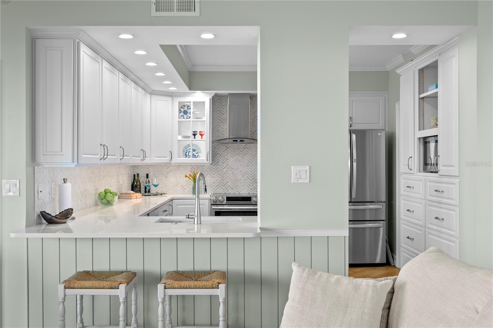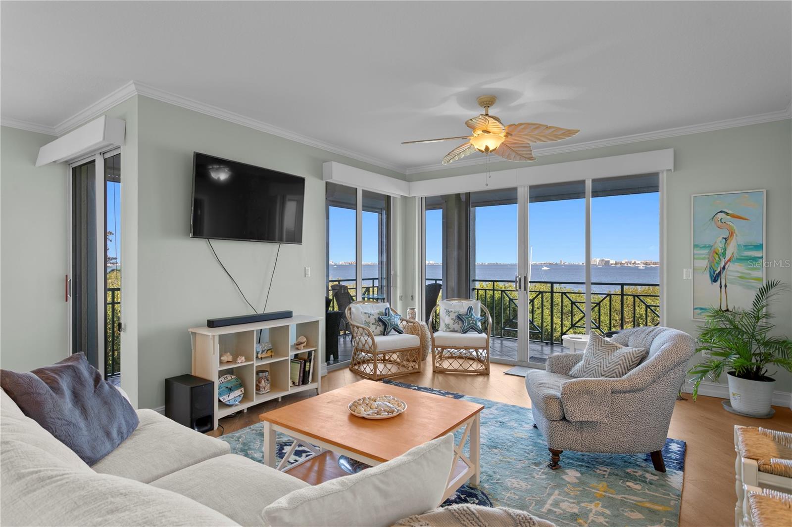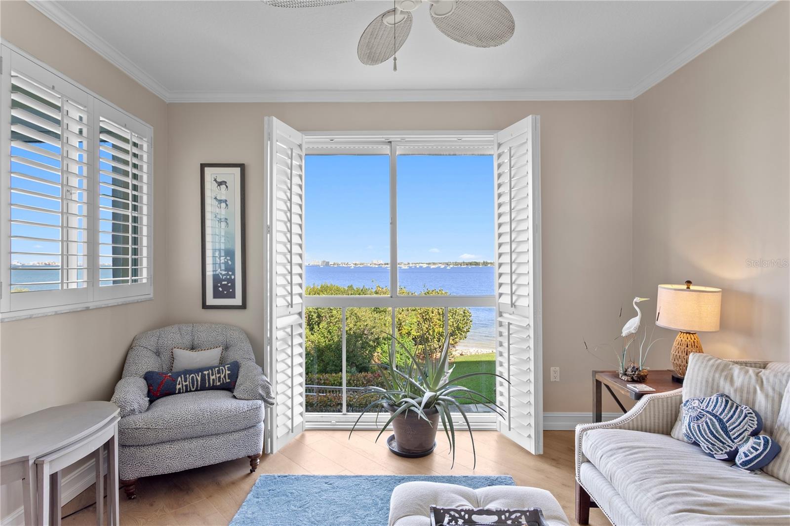 Experience refined waterfront living in this brilliantly renovated corner residence in Antigua at Dolphin Cay, one of St. Petersburg’s most desirable guard-gated coastal communities. Perfectly positioned along Boca Ciega Bay, this exceptional condominium captures panoramic open water views and year-round sunsets from an expansive 40-foot wraparound veranda, creating a seamless connection between indoor elegance and the natural beauty of the waterfront. Inside, a casual coastal design is defined by walls of windows and abundant natural light, enhancing the open-concept layout and The chef’s kitchen is stunning and serves as the heart of the home, featuring custom glass cabinetry, quartz countertops, designer backsplash, and stainless appliances—all opening effortlessly to the living and dining areas, ideal for both everyday living and elegant entertaining. A versatile bonus room with sweeping water views offers exceptional flexibility as a den, office, or potential third bedroom—tailored to today’s lifestyle needs. The owner’s suite is a private retreat, showcasing a wall of windows, a custom-designed walk-in closet, and a beautifully updated spa-inspired bath. The guest suite is thoughtfully positioned for privacy, with an adjacent bath that has been stylishly renovated. Refined coastal finishes throughout include a soft coastal palette, crown molding, and plantation shutters, while electric hurricane shutters provide both protection and convenience for the expansive veranda. Additional features include: a reserved in garage area parking space, Private storage room conveniently located at the corridor entrance, and a well-maintained building with strong community appeal which has undergone all its Milestone and SIRS reports. Residents of Dolphin Cay enjoy a resort-style lifestyle across 88 acres of lush, gated waterfront grounds, featuring: A Private beach overlooking Boca Ciega Bay, Kayak launch and Fishing pier, Three waterfront heated swimming pools, 3 Har-Tru lighted tennis courts, Fitness center and clubhouse and Scenic walking trails through protected natural areas. Dolphin Cay is just minutes from the vibrant arts scene, waterfront venues, and renowned dining of Downtown St. Petersburg, as well as the sugar-sand beaches of St. Pete Beach and Pass-a-Grille. Tampa International Airport and St. Pete-Clearwater International Airport are both easily accessible making it one of the most desirable waterfront communities for both primary and second-home buyers. This is a rare opportunity to own a fully renovated, corner waterfront residence with expansive outdoor living and unobstructed sunset views in one of St. Petersburg’s most exclusive gated communities.