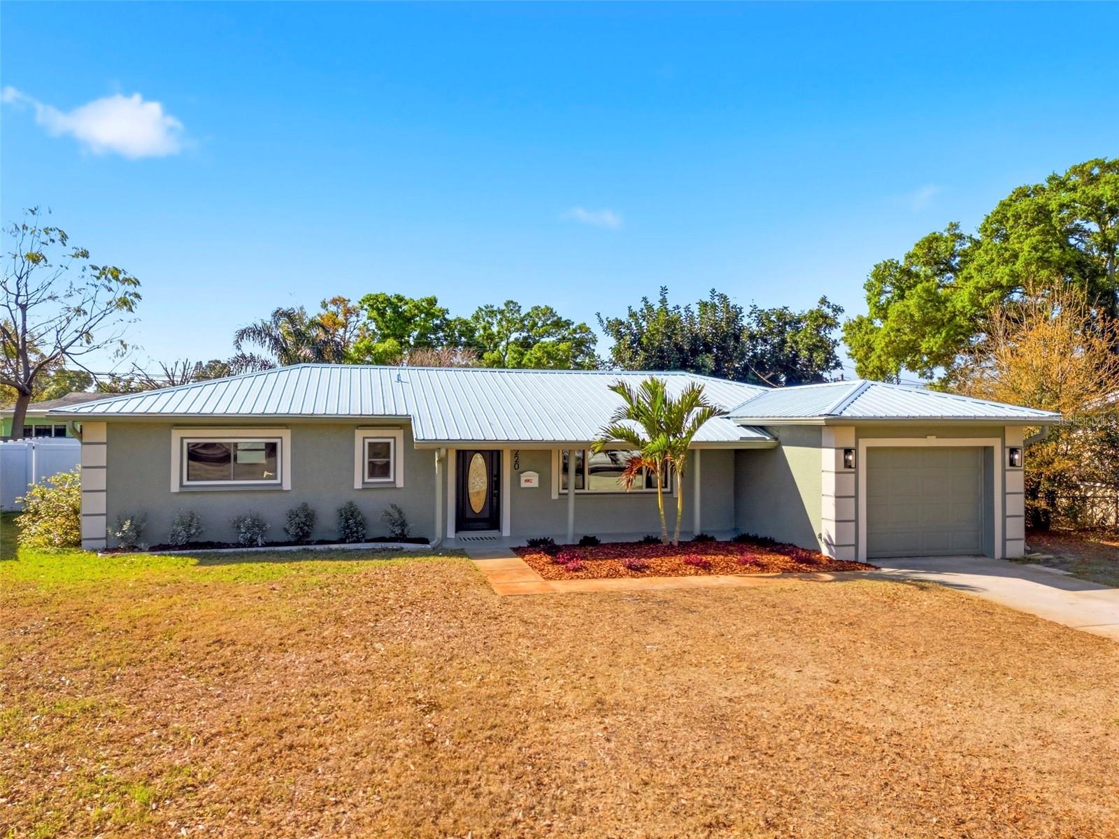 Completely updated and move-in ready, this beautiful 3-bedroom, 2-bath, 1-car garage single-family home in St. Petersburg offers the perfect blend of style, comfort, and durability with solid block construction and a long-lasting metal roof! Inside, you'll find fresh interior and exterior paint and attractive LVP flooring throughout the main living areas, creating a modern and welcoming feel. The spacious open-concept layout seamlessly connects the living room, kitchen, and dining area, making it ideal for everyday living and entertaining. The stunning kitchen features stone countertops, stainless steel appliances, a gorgeous tile backsplash, recessed lighting, a large island with barstool seating, and abundant cabinet and counter space. The dining room is conveniently located just off the kitchen, perfect for gatherings. The primary suite offers a relaxing retreat with an en-suite bath that includes dual sinks and a beautifully tiled walk-in shower. Step outside to enjoy the large fenced backyard with a storage shed, offering plenty of space for outdoor activities, pets, or future additions. The home also includes a 1-car garage and is ideally situated in a non-flood zone, while still being centrally located close to parks, shopping, dining, entertainment, and vibrant downtown St. Petersburg. Don’t miss your opportunity to own this beautifully updated home in an incredible location, schedule your private showing today!