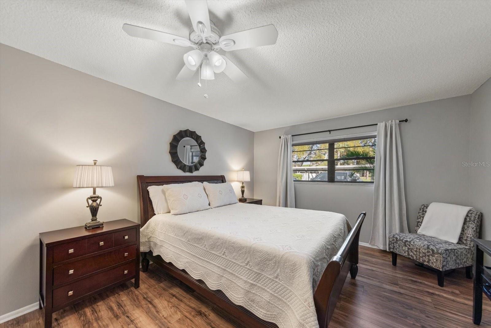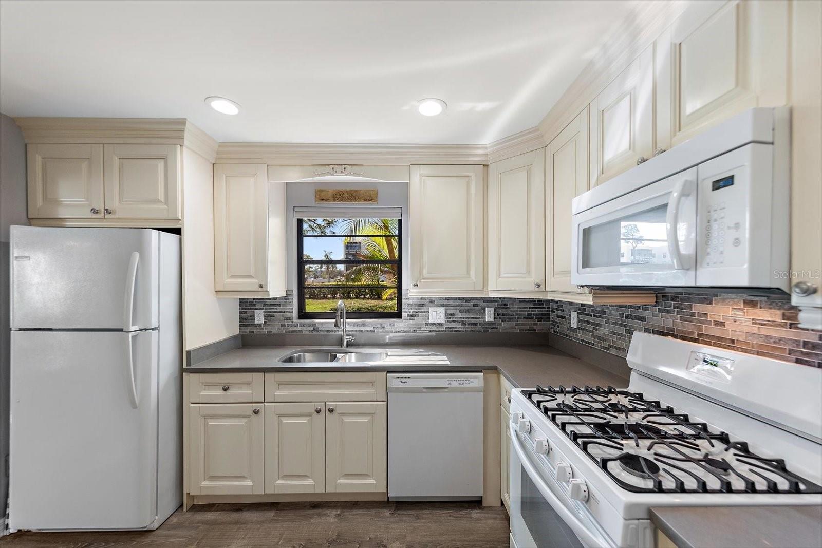 Welcome to this beautifully renovated, fully furnished turnkey first-floor corner condo with peaceful pond views in the desirable Madison Building at Terrace Park at Five Towns. This well-maintained home features luxury vinyl plank flooring, abundant natural light, and an updated kitchen with lots of cabinets and bathrooms with quartz countertops and attractive cabinetry, plus a screened-in porch perfect for enjoying the gorgeous pond view and sunsets that are spectacular. Covered parking, in-unit washer and dryer, and a short walk to one of the community’s heated pools and outdoor grilling area add convenience and comfort. Enjoy resort-style living with six swimming pools, tennis courts, shuffleboard, pickleball, and newly updated bocce ball courts, along with a full calendar of social activities including clubs, dances, yoga and stretching classes, movies, card games, and weekly food truck events. The community is enhancing its amenities through the Imagine Program, including renovations to both clubhouses and a new modern fitness center. Beautifully landscaped grounds feature peaceful walking paths, scenic ponds, and abundant wildlife, all just minutes from the Gulf beaches, shopping, dining, medical facilities, and entertainment, offering the perfect combination of relaxation, recreation, and convenience. This community is the best kept secret for nature lovers and people that want lots of activities.