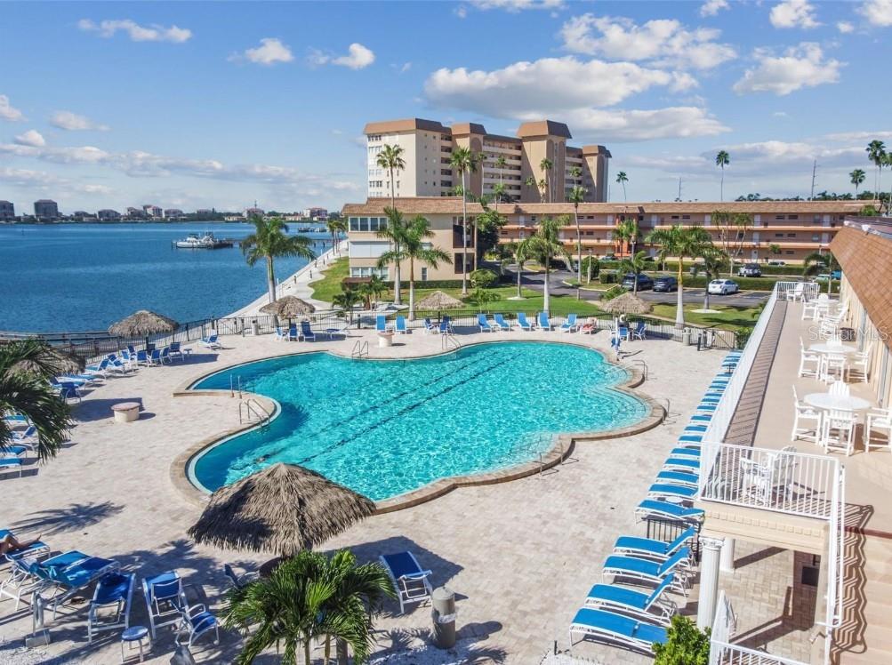 PANORAMIC WINDOWS PROVIDE EXPANSIVE WATER VIEWS INCLUDING SUNRISE AND BEAUTIFUL SUNSETS ACROSS THE ENTIRE SOUTH SIDE OF THIS HOME. A GREAT CORNER UNIT WITH 2 BEDROOMS & 2 BATHS WITH ADDITIONAL WATER VIEWS FROM THE MASTER SUITE. THIS HOME PROVIDES LARGE GREAT ROOM/ DINING ROOM COMBO IN ADDITION TO THE HUGE FLORIDA ROOM WHICH CAN BE USED AS AN OFFICE AND A MORNING BREAKFAST AREA. THE BRIGHT AND SUNNY KITCHEN WITH BREAKFAST BAR MAKES IT A LOVELY HOME. CUSTOM BUILT IN DESKS STAY; this unit is fully handicap accessible. THIS COMMUNITY HAS ALL YOU NEED FOR A FLORIDA STYLE RESORT COMMUNITY. MANY POOLS AND HOT TUB, BOAT DOCKS, CANOE AND KAYAK STORAGE, FIRE PIT, LARGE FITNESS CENTER, COFFE BAR, CLUB HOUSE WITH BALLROOM, AND CARD ROOMS, CRAFT CENTER, AND TENNIS COURTS. THIS COMMUNITY HAS GATED SECURE ENTRANCE. OTHER AMMENITIES INCLUDE GOURMET GROCERY, HAIR SALON AND DOCTORS OFFICE ON PREMISES. THIS PARTICULR HOME HAS A PERMANENT COVERED PARKING SPACE AT FRONT DOOR WHICH WILL BE DEEDED TO NEW OWNER. ELECTRIC ROLL UP HURRICANE SHUTTERS MAKE THIS HOME SAFE IN ANY WEATHER. ELEVATORS AND LAUNDRY ON EACH FLOOR SIMPLIFY DAILY LIVING. BASIC CABLE & WATER INCLUDED IN FEES. COME SEE WHAT YOUR NEW CAREFREE LIFESTYLE COULD BE. MOTIVATED SELLER.