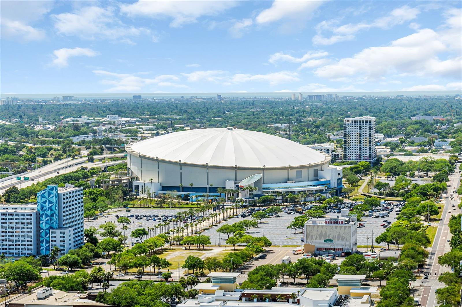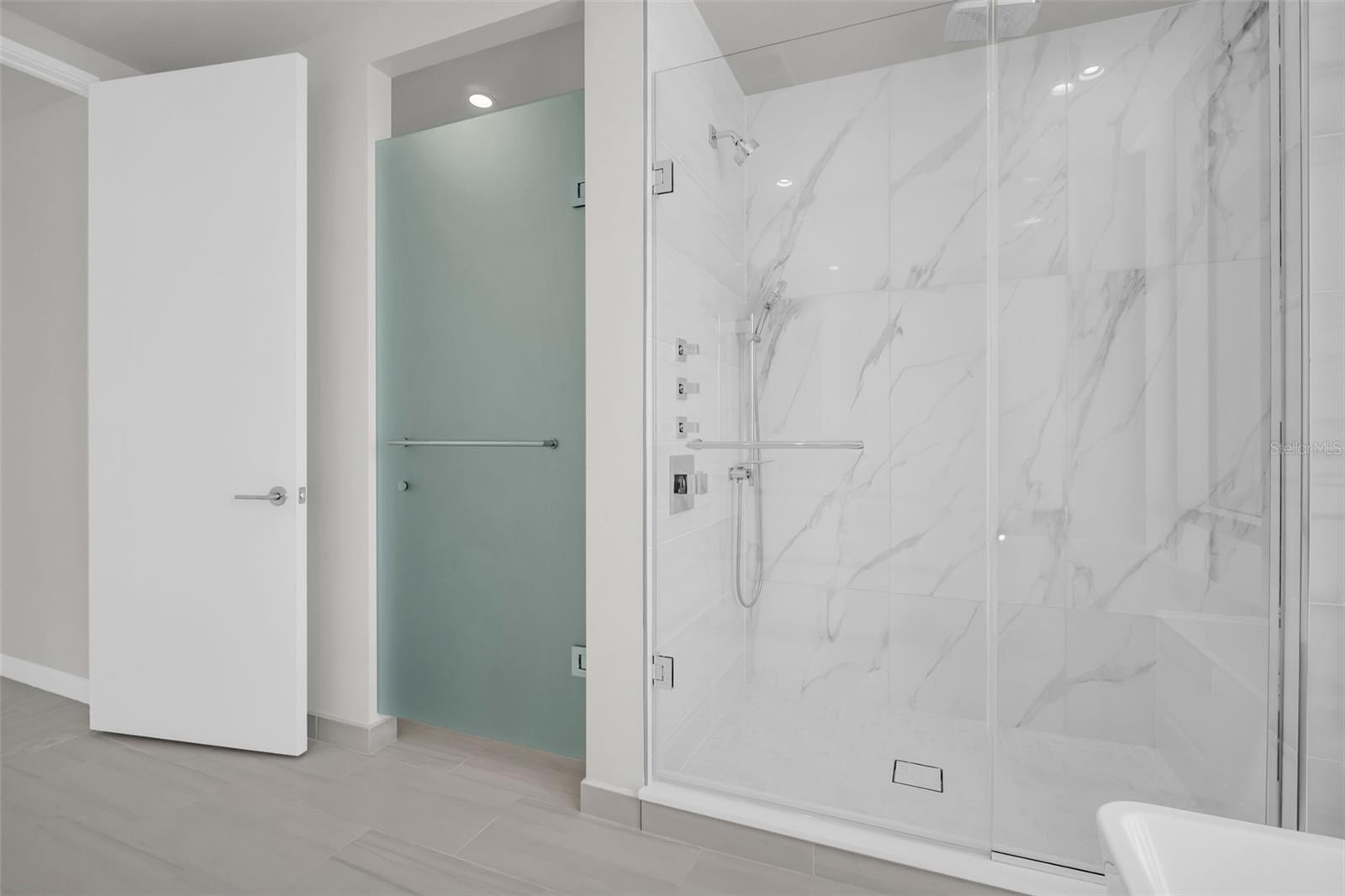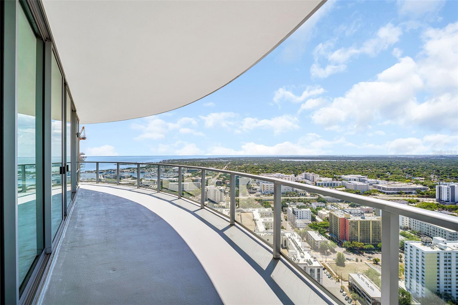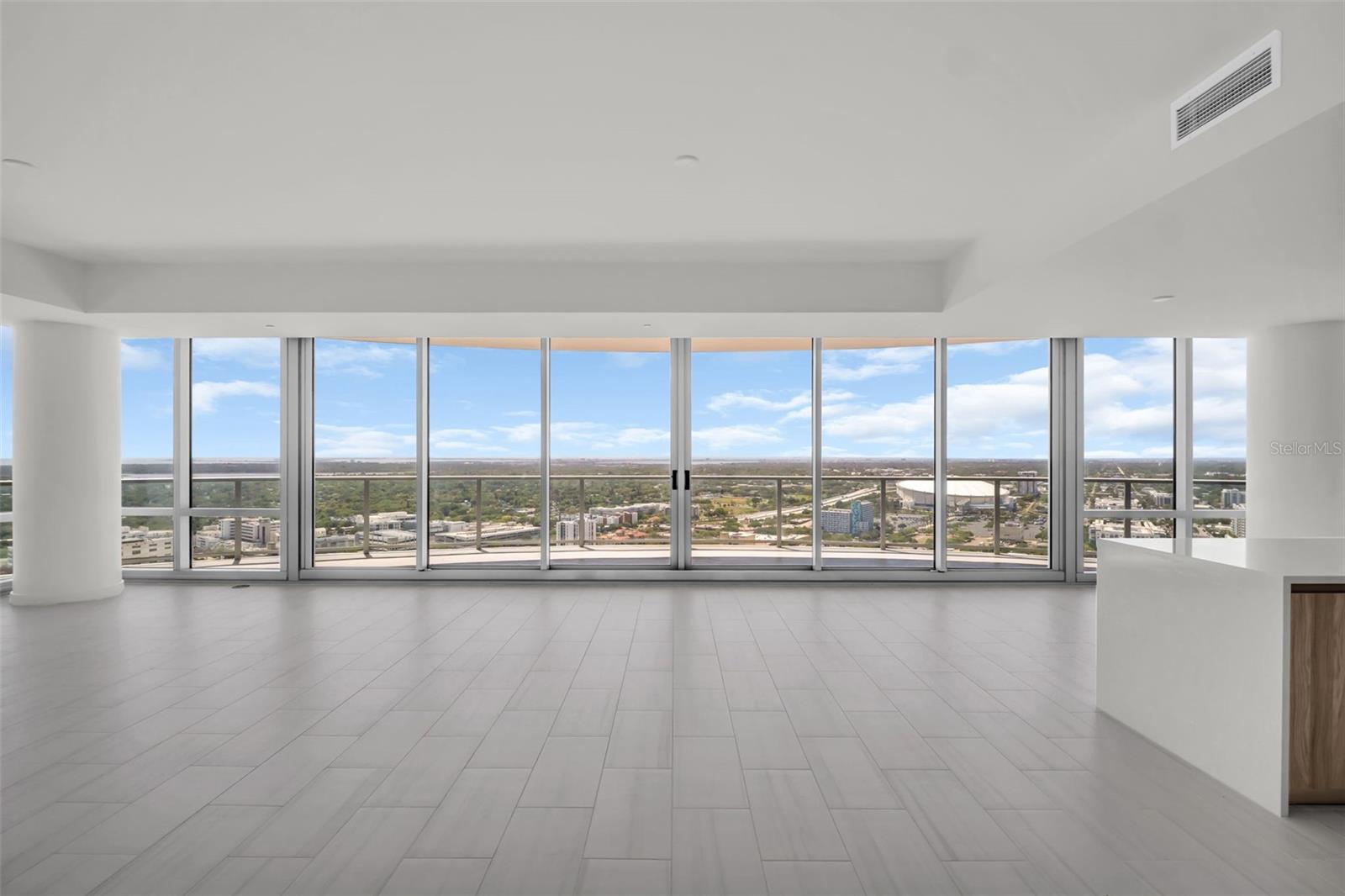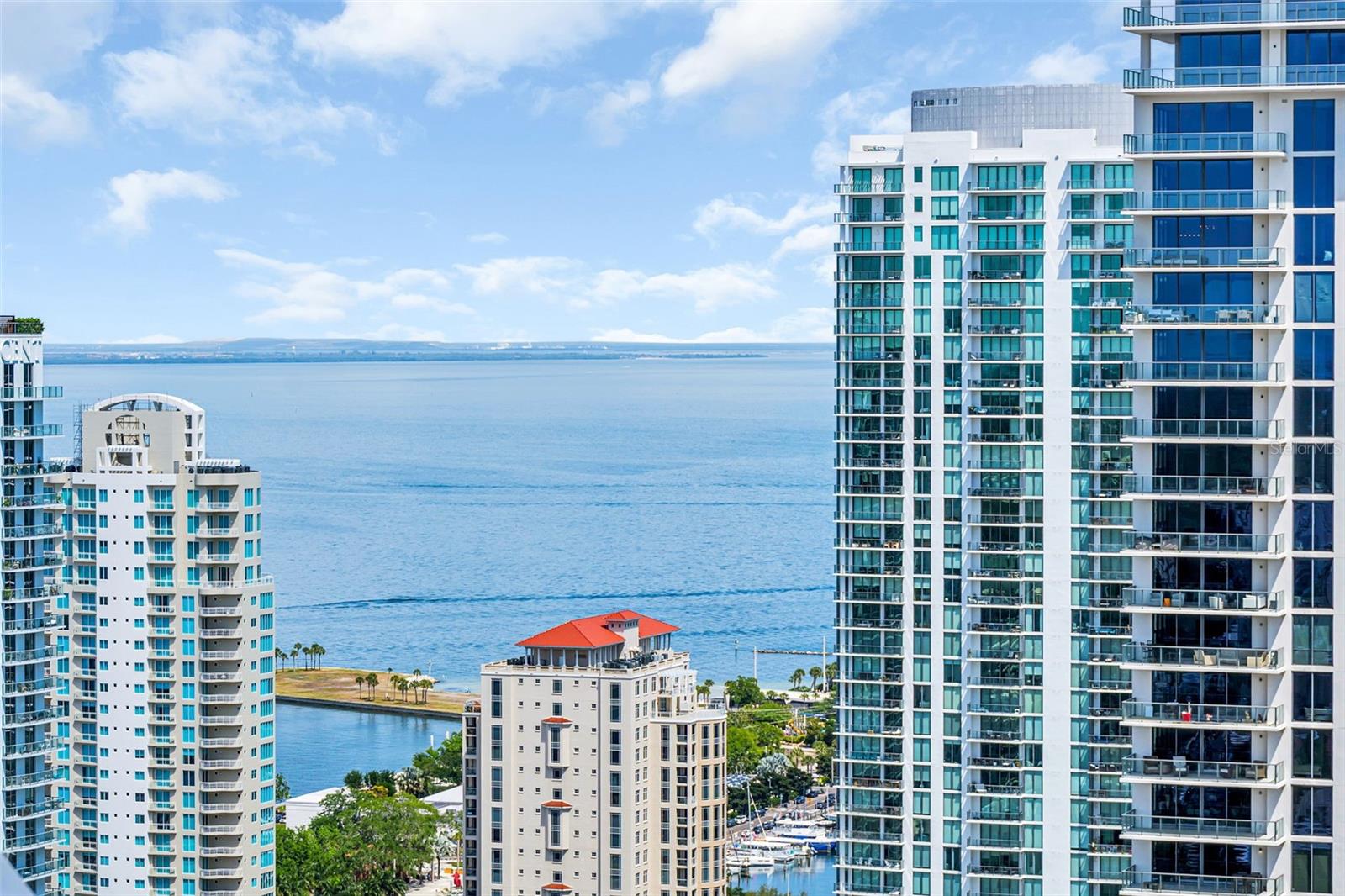 Perfectly positioned on the southwest corner of the newly completed 400 Central, Residence 3401 captures one of the building’s most spectacular vantage points. Thanks to the tower’s unique angled design and the residence’s coveted southwest orientation, the home enjoys remarkable panoramic views stretching across Tampa Bay and all the way to the Gulf of Mexico. Framing these views is an exceptional feature—an expansive wraparound terrace that spans the entire outer edge of the residence, creating a seamless connection between indoor and outdoor living and offering multiple vantage points for sunrise, sunset, and the downtown skyline. This expansive 3-bedroom, 3.5-bath residence offers approximately 2,658 square feet of interior living space complemented by over 1,000 square feet of terrace space, delivering more than 3,600 square feet of total living area. A standout feature of this residence is that every bedroom, in addition to the main living areas, offers direct access to its own private balcony space, allowing each room to enjoy natural light, fresh air, and its own unique perspective of the surrounding views. Inside, floor-to-ceiling glass walls flood the open-concept great room and dining areas with natural light while seamlessly extending the living experience to the terraces. The result is a home that feels both spacious and inviting, ideal for entertaining or enjoying quiet evenings overlooking the water and city lights. The designer kitchen features sleek European-style cabinetry, quartz countertops with a waterfall island, matching quartz backsplash, and a premium JennAir appliance package, including a gas cooktop, wall oven and microwave combination, counter-depth refrigerator, and integrated dishwasher. The primary suite serves as a private retreat with direct terrace access and a spa-inspired bathroom featuring a freestanding soaking tub, frameless glass shower with rain and handheld fixtures, quartz vanity with dual sinks, and Grohe fixtures throughout. Additional features include porcelain tile flooring in the main living areas, premium carpeting in the bedrooms, solid core interior doors, recessed LED lighting, high-efficiency climate control, and a full-size Whirlpool washer and dryer. Residents of 400 Central enjoy resort-style amenities, sophisticated design, and immediate access to downtown St. Petersburg’s waterfront parks, dining, arts venues, and vibrant urban lifestyle. Residence 3401 represents a rare opportunity to own a premier corner residence with sweeping water views, exceptional outdoor living, and private balcony access from every bedroom