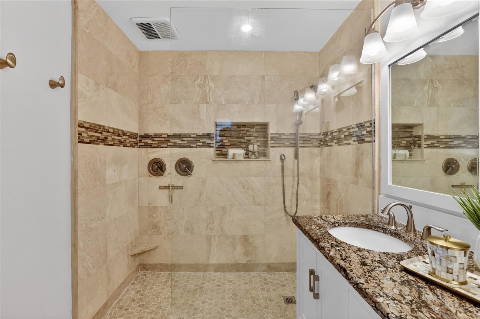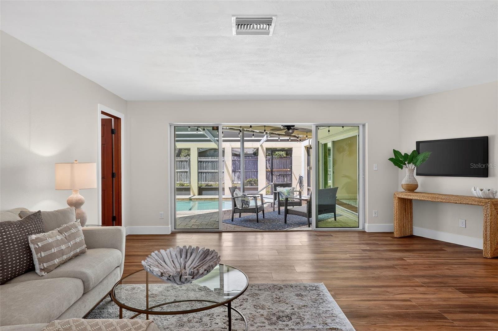 From the moment you arrive, this beautifully maintained and thoughtfully upgraded 3-bedroom, 2-bathroom home invites you to slow down and settle into the effortless rhythm of Snell Isle living. Set on a spacious lot in one of St. Petersburg’s most desirable neighborhoods, the home blends warmth, functionality, and modern design with new luxury plank vinyl flooring throughout, creating a cohesive and elevated feel from room to room. Natural light and intentional design guide you through the home, where every space has been curated for both comfort and connection. Impact-rated features and storm protection provide peace of mind, while the transferable flood insurance policy adds an extra layer of confidence for the next owner. At the heart of the home, indoor and outdoor living come together seamlessly around a screened-in saltwater pool—a private retreat where mornings begin quietly with coffee and evenings unfold with effortless entertaining. The owner’s suite offers a true sense of escape, complete with a spa-like ensuite bath, an expansive walk-in closet, and the convenience of in-suite laundry. On the opposite side of the home, a thoughtfully designed secondary bedroom with a Murphy bed and built-in desk adapts to your lifestyle—whether hosting guests or creating a productive work-from-home space. A third bedroom and full bath provide additional privacy and flexibility for family or visitors. The kitchen serves as both a functional hub and a gathering place, featuring granite countertops, solid wood cabinetry, and smart stainless steel appliances, including a gas range and an innovative microwave hood that activates automatically—blending everyday ease with modern convenience. Step outside and you’ll find a setting designed for quiet moments and easy entertaining alike, surrounded by lush, Florida-friendly landscaping that enhances both beauty and simplicity. Further elevating the home’s appeal are fully owned premium Solaria 400W solar panels—free of leases or third-party agreements—delivering superior energy performance while significantly lowering monthly operating expenses. Whether you’re enjoying peaceful mornings by the pool, hosting friends under the Florida sun, or heading out to explore nearby waterfront dining, cultural attractions, and Gulf beaches, this home offers a lifestyle that feels both relaxed and refined—where every day feels like a retreat.