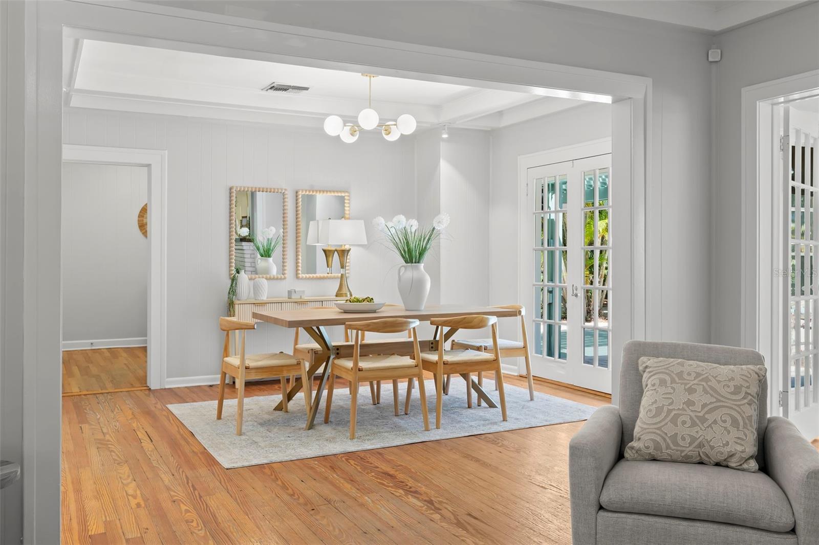 Tucked into the heart of Historic Kenwood, this rare double corner lot lives more like a private compound than a typical home—offering space, privacy, and walkability all at once. Set on a beautifully landscaped lot with mature plantings that create a true sense of seclusion, the property opens into a backyard designed for everyday living and entertaining. The pool area feels like a boutique resort, complete with multiple zones to lounge, dine, and unwind, plus an outdoor shower that makes the space as functional as it is elevated. Inside, the home blends historic character with thoughtful updates. At 4 bedrooms and 3 bathrooms across 1,861 square feet, the layout offers flexibility for families, guests, or work-from-home setups. Recent improvements—including a newer roof and HVAC (both approximately 5 years old), along with fresh interior and exterior paint—provide peace of mind while maintaining the charm of a 1930s build. A detached garage adds additional utility and potential, while the oversized lot gives a sense of breathing room that is increasingly hard to find in this area. Beyond the property itself, the location is one of its strongest assets. Just a short walk from some of St. Pete’s most loved restaurants, cafés, and neighborhood spots, you get the best of both worlds: a quiet, private retreat with immediate access to the energy of the city. This is a home that stands apart—not just for its size or features, but for how it lives.