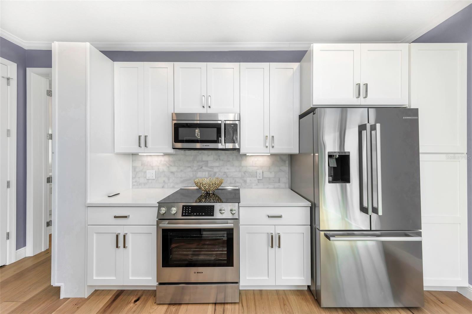 Welcome to refined urban living at Castille Urbana, a boutique 40-residence, pet-friendly community offers one of the lowest HOA fees among newer construction and an unbeatable walkable location including Tropicana Field. Residence 305 (Gardena floor plan) features a spacious 3BD/3BA split layout with open-concept living, 9’ ceilings, and expansive hurricane-impact windows that fill the home with natural light. This upgraded CORNER unit goes beyond builder-grade finishes with over $20K in custom electric blinds/shades, a custom built-in entertainment center with 75” TV, plus engineered hardwood flooring, custom lighting and ceiling fans, Electrolux washer/dryer and even a reverse osmosis system. The Stunning kitchen includes Bosch stainless steel appliances, quartz countertops, solid wood soft-close cabinetry, marble backsplash, and designer pendant lighting. Spacious bedrooms offer ensuite baths with quartz counters, dual vanities, and Carrara-style tile and huge walk-in closets for all three rooms. Enjoy city views from your private balcony and amenities including fitness center, club room, outdoor patio, dog park/wash station, gated garage parking, and bike storage. So close to dining, coffee shops, waterfront parks, attractions, this home is Ideal as a primary residence or city retreat. Minutes from Tropicana Field, Al Lang Stadium, USF and Albert Whitted Airport, this location puts you at the heart of downtown—perfect for enjoying St. Pete’s vibrant, walkable lifestyle.