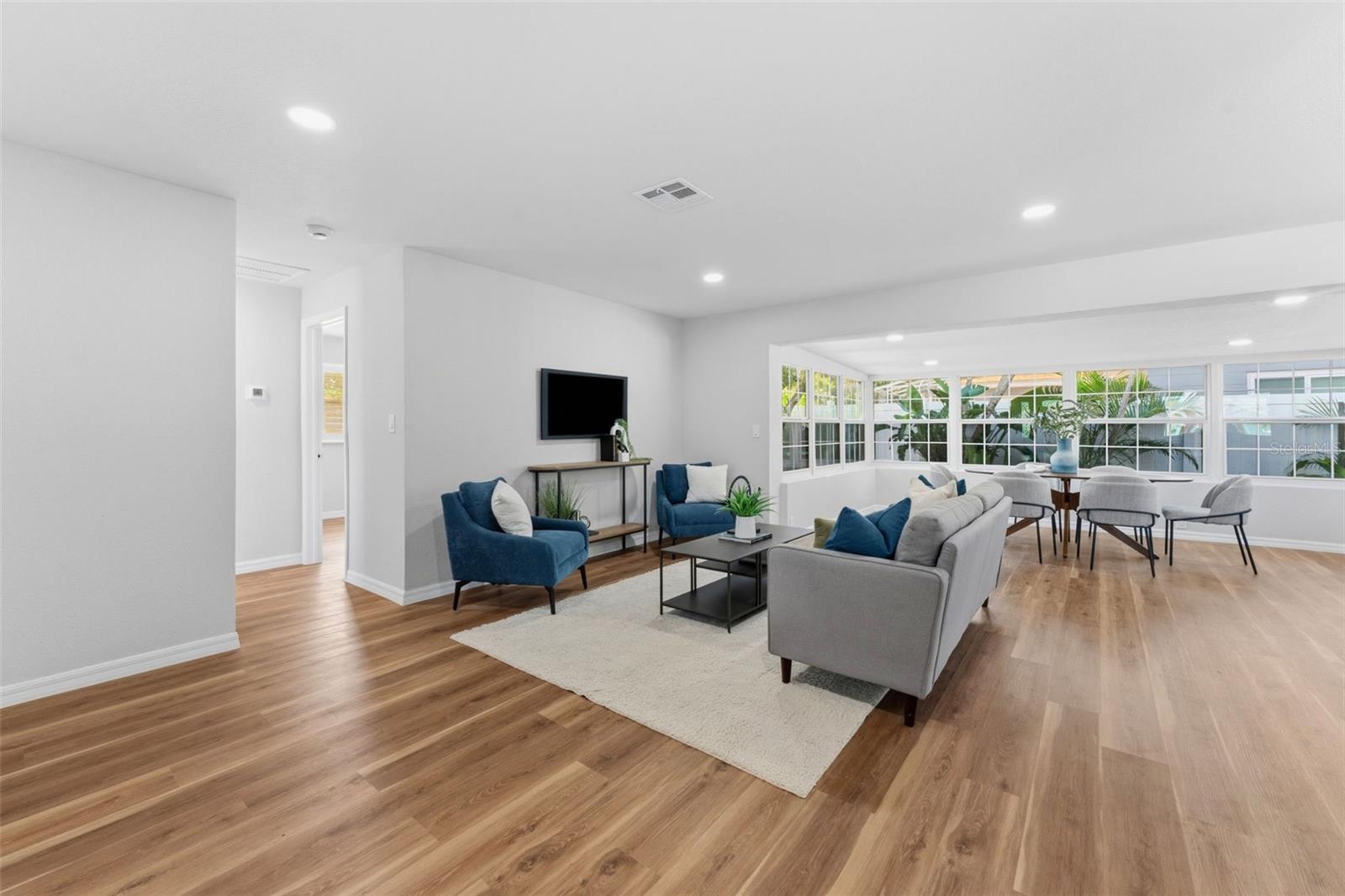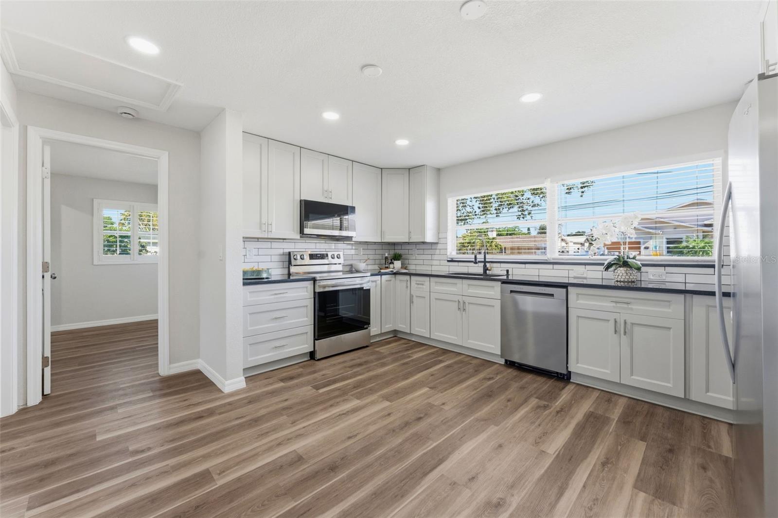 Experience refined coastal living in this impeccably renovated 3-bedroom, 2-bath pool residence on a CORNER LOT- located in the desirable Riviera Bay community. Encompassing 1,559 square feet, this home was completely transformed in 2025 with a focus on elevated design, modern comfort, and effortless sophistication. From the moment you enter, you’re welcomed by seamless luxury vinyl plank flooring that flows throughout, setting the tone for a clean, contemporary aesthetic. The designer kitchen is outfitted in 42" upper cabinets, granite counter tops with stainless steel appliances. Opens gracefully into the main living and dining areas, Filled with with beautiful natural lighting—ideal for both intimate gatherings and stylish entertaining. Outdoors, a paved patio and a fully fenced backyard creating a private oasis centered around a sparkling pool, perfectly suited for relaxing afternoons or upscale entertaining. Situated on an expansive 65 x136 lot, the property offers both space and seclusion. Riviera Bay enhances the lifestyle with convenient access to a private boat ramp inviting you to enjoy the best of waterfront living. A rare opportunity to own a turnkey, design-forward home in one of the area’s most sought-after neighborhoods. Electrical 2025, HVAC 2023 & Hot Water heater 2024. Annual flood insurance quote of $1,559.25.