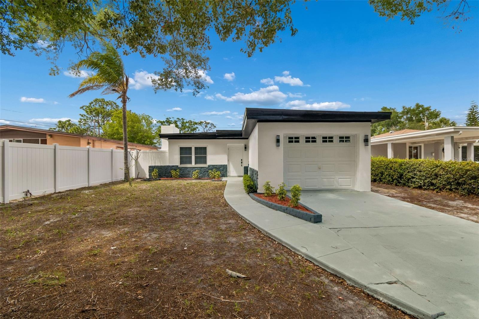 Welcome to this IMPECCABLY RENOVATED HOME in the heart of ST. PETE!!! This gorgeous 2 bed / 2 bath plus a Den/office and a 1-car garage / dining room combo, with an open concept to the BRAND-NEW KITCHEN, makes this home feel modern, spacious, and luxurious. The kitchen boasts white shaker cabinets, granite countertops, tile backsplash, double stainless steel sink with a garbage disposal and modern faucet, plus BRAND-NEW APPLIANCES included. Updates also include: NEW ROOF, BRAND-NEW ELECTRICAL PANEL, BRAND-NEW WATER HEATER, FRESHLY PAINTED INSIDE AND OUT, NEW WATERPROOF LAMINATE FLOORING, windows in excellent condition, and INTERIOR AND EXTERIOR DOORS INSTALLED THROUGHOUT THE HOME. A/C 2024 recently maintened WITH ALL-NEW DUCTWORK THROUGHOUT. Major plumbing updates have been completed throughout the entire house, along with electrical and lighting improvements across the property. This BEAUTY, located in a FAMILY-FRIENDLY NEIGHBORHOOD, is only a few minutes away from Tyrone Mall, movie theaters, plenty of quality restaurants, downtown St. Pete, all of our wonderful beaches, and Tampa International Airport. If you are looking for a funtional, modern, and luxurious home in the best location this is your opportunity —come see it today before it is gone!!