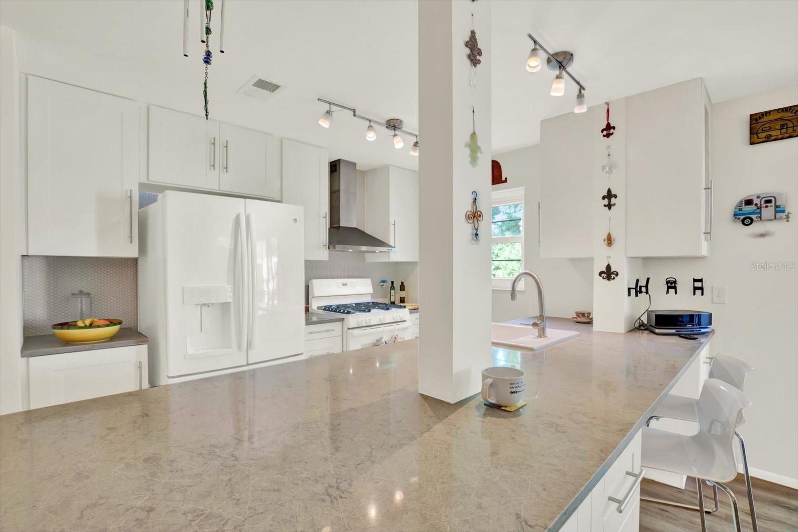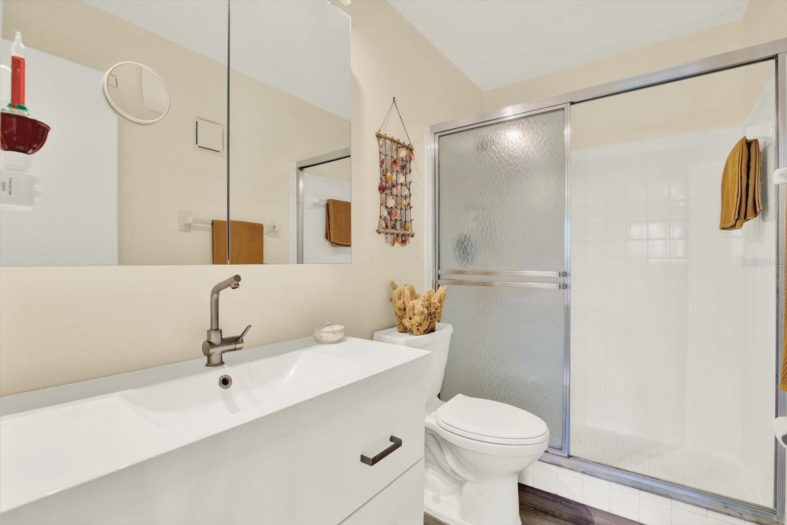 Welcome to this beautifully updated 2-bedroom, 2-bath condo in the highly desirable 55+ community of Five Towns, located in the Shoreview East building. Offering an open floor plan and serene pond views, this move-in ready residence combines modern upgrades with low-maintenance living in an amenity-rich setting. Inside, you’ll find stylish vinyl flooring throughout, a spacious kitchen featuring a large island, quartz countertops, and updated, white appliances—perfect for both everyday living and entertaining. The unit also includes a newer washer and dryer with an updated laundry closet for added convenience, as well as plantation shutters in the bedroom for a refined touch. Major systems and community improvements provide peace of mind, including a newer roof, resurfaced parking lot, fresh building paint, and updated exterior and door lighting. The AC has been regularly serviced semi-annually and enhanced with UV light technology, and the unit features a central gas water heater. Step outside to your brand-new screened patio (2026), the perfect place to relax and enjoy tranquil water views. Additional highlights include covered carport parking and elevator access within the building. Five Towns offers an exceptional lifestyle with multiple pools, a large clubhouse, shuffleboard, and beautifully maintained grounds with mature landscaping—ideal for peaceful, shaded walks. Conveniently located near shopping, the interstate, and some of the nation’s top-rated beaches, this home truly has it all.