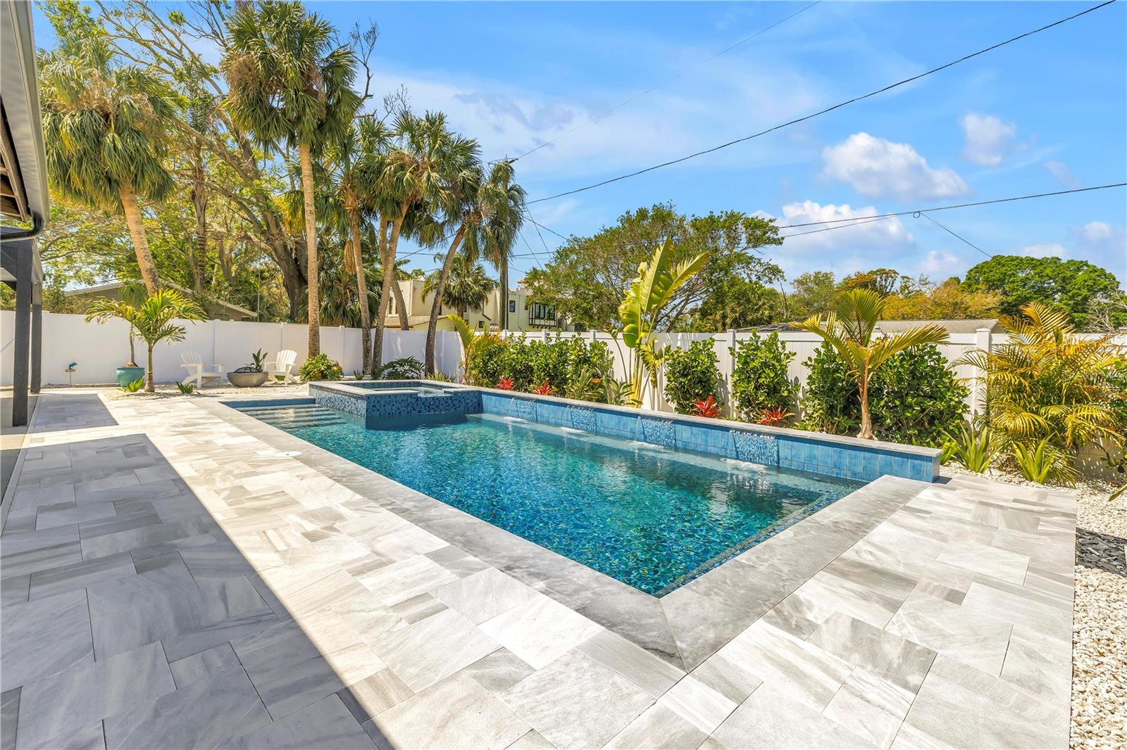 Luxury Pool Home with ADU in Prime Old Pasadena Location Expertly curated for luxury living and effortless entertaining, this exceptional Old Pasadena residence in West St. Pete offers 5 bedrooms and 4 full baths, including a detached 1BR/1BA ADU with private entrance and parking—ideal for guests or multi-generational living. The main home features a split-bedroom layout, a beautifully redesigned chef’s kitchen with oversized island, dual pantries, and abundant storage, all flowing seamlessly into open living spaces and out to an expansive covered lanai. The outdoor retreat showcases a heated saltwater pool, enhanced by lush landscaping, a 638 sq ft vaulted covered, “Entertainment Pavilion”, complete with a spa/jacuzzi and a spacious dining area that comfortably seats 12, with multiple TV mounting locations already in place. Designed with flexibility in mind, the home offers multiple suite-style bedrooms, including private primary suite options with walk-in closets and well-appointed baths. Upgrades include beautiful espresso luxury floors, metal roof (2020), tankless water heater, whole-house generator, updated baths, and a fully renovated ADU. Ideally located just minutes from Gulf beaches, Gulfport, Central Ave, and downtown St. Pete dining and shopping.
