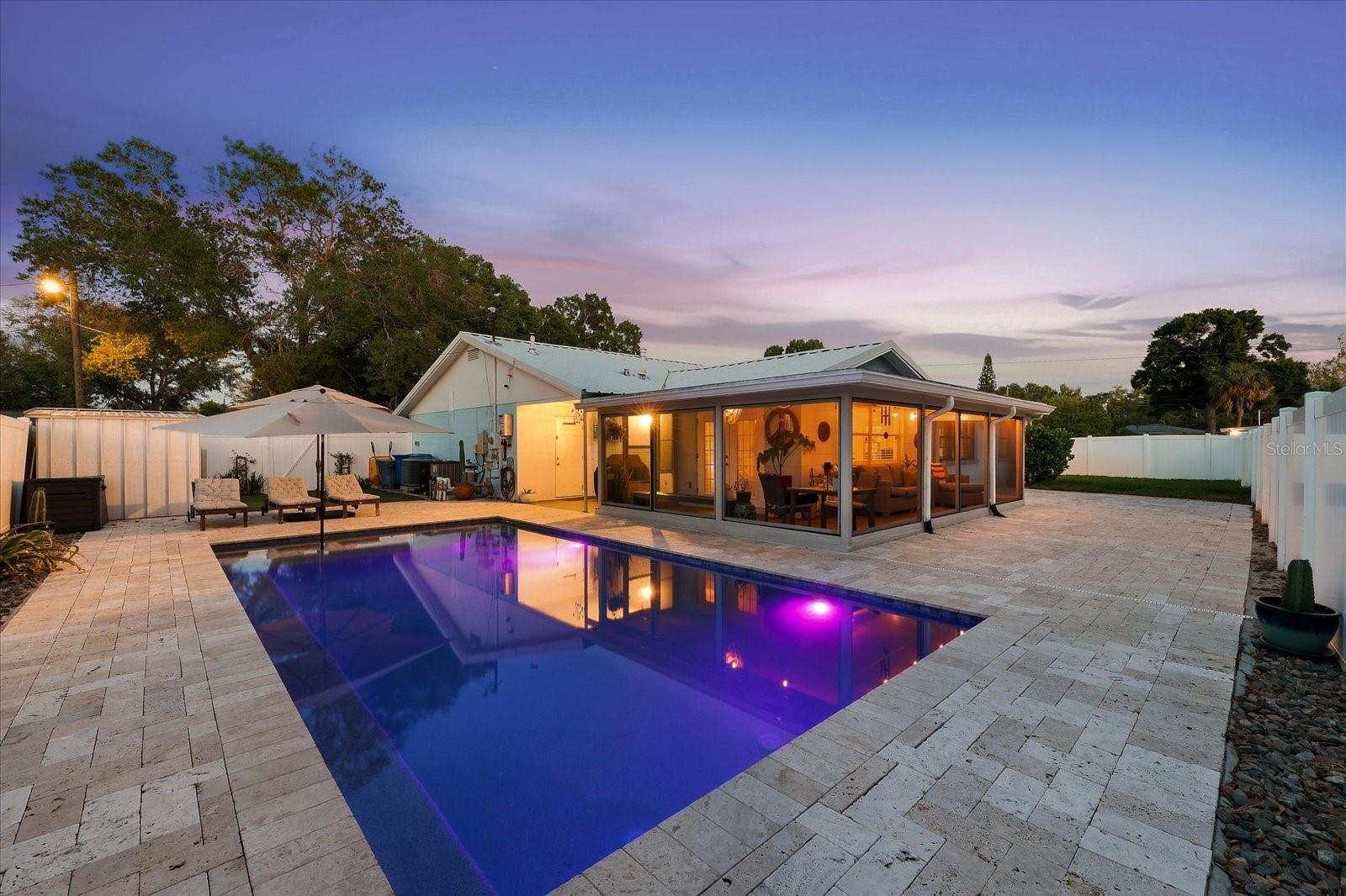 MOVE-IN READY in Northeast St. Pete. This 4-bedroom home with flexible bonus space sits on an oversized corner lot and offers the kind of indoor-outdoor living buyers are looking for. Step inside to a well-designed layout featuring tile flooring throughout the main living areas, a kitchen with wood cabinetry, granite countertops, tray ceiling, and an eat-in area plus separate dining space, and an updated primary ensuite. The additional flex space is perfect for a home office, gym, or playroom. Out back is where this home really delivers, a 2021 pool with sun shelf, pavered patio, screened-in lanai, turf, putting green, and a fully fenced yard with room to spread out. There’s also a shed for extra storage and an extended driveway leading to a two-car garage. Major updates include impact windows (2020) and a metal roof (2017). Built with solid block construction and no flooding through recent hurricanes, this home offers both comfort and peace of mind. Located just one block from Puryear Park, with soccer fields, tennis courts, and a kayak launch, and just minutes to downtown St. Petersburg and the Gulf beaches. This one checks all the boxes, space, updates, and a backyard you’ll actually use.
