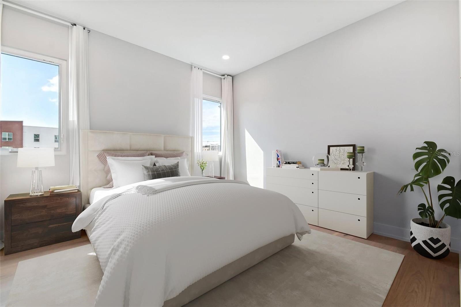 One or more photo(s) has been virtually staged. Seller offering $1,000 toward buyer’s closing costs with use of preferred lender! Downtown St. Pete living at its finest! Modern luxury meets convenience in this stunning townhome, completed in June 2023 and offering over 1,600 sq ft of modern, elegant living space. This 2 bedroom, 2.5 bathroom residence with an oversized 1-car private garage is perfectly positioned in the heart of downtown - truly within walking distance to everything St. Pete has to offer. This light-filled townhome features soaring ceilings, expansive windows, and thoughtfully selected high-end finishes throughout. The open-concept main living level showcases a sleek kitchen with top-of-the-line stainless steel appliances, quartz countertops, and a spacious island with seating--perfect for entertaining. Real wood flooring flows throughout, adding warmth and sophistication. With a multi-level layout, each bedroom offers privacy and flexibility, both featuring large closets and en-suite bathrooms, making either level ideal as a primary suite. The top floor includes access to a private balcony with city skyline views. Additional highlights include a private fenced backyard/patio, extra storage in the garage, and no need for street parking with your attached garage. Enjoy unbeatable access to downtown St. Pete's dining, nightlife, arts scene, shopping, and waterfront, as well as quick access to I-275 and I-175 for an easy commute. Johns Hopkins is just a few blocks away, adding even more convenience to this prime location. This is a rare opportunity to own a newer construction townhome in one of St. Petersburg’s most sought-after areas. Ideal as a primary residence, second home, or investment property. Schedule your private showing today!