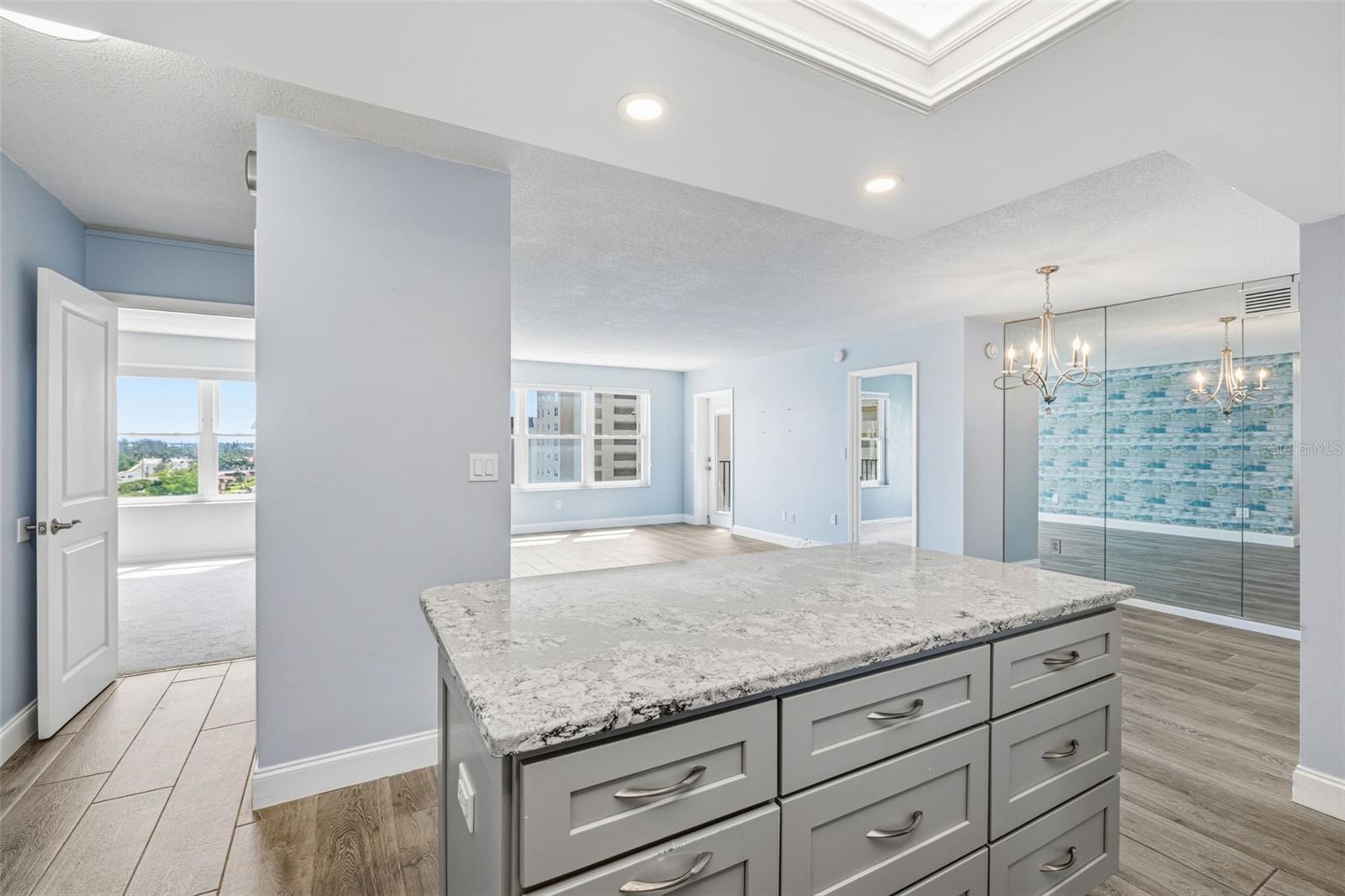 One or more photo(s) has been virtually staged. Point Brittany offers luxurious waterfront living in a premier 55+ gated community just minutes from the Gulf Coast beaches. This beautifully maintained 9th-floor residence features 1,175 square feet of thoughtfully designed living space, including 2 bedrooms and 2 bathrooms, with a private balcony showcasing sweeping views of Boca Ciega Bay, the Intracoastal Waterway, and the Gulf. Inside, the open-concept layout is filled with natural light and designed for both comfort and privacy, with a desirable split-bedroom floorplan. The recently renovated kitchen features stainless steel appliances, solid-surface countertops, and modern finishes. Tile flooring runs throughout the main living areas, while both bedrooms offer the warmth of carpet underfoot. The spacious primary suite provides a tranquil retreat with beautiful water views to start each day. Assigned parking and a well-maintained building add to the convenience and curb appeal of this exceptional home. Residents of Point Brittany enjoy resort-style amenities including a clubhouse, maintenance-free living, and a vibrant waterfront setting. Ideally located near St. Pete Beach and the greater Tampa Bay area, you'll have easy access to beaches, boating, shopping, dining, Tampa International Airport, and Interstate 275 for effortless travel north or south.