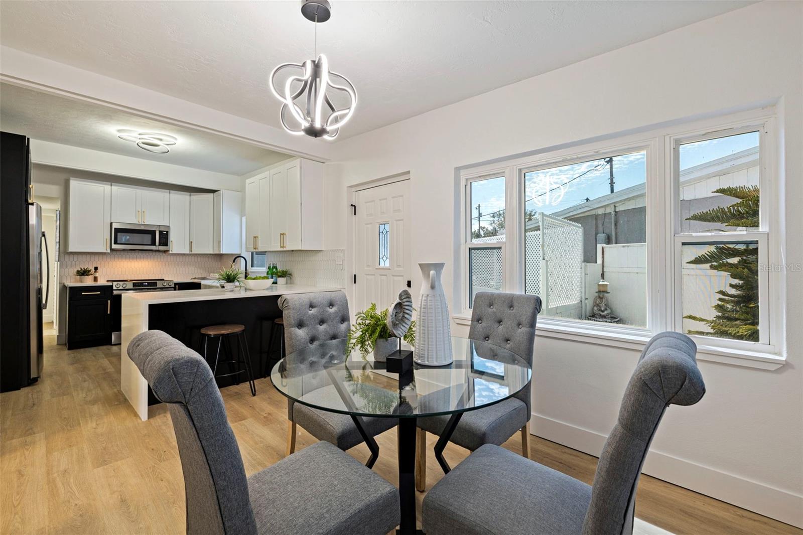Your dream home just hit the market! This fully renovated and permitted 3-bedroom, 2-bathroom BLOCK home sits on an oversized lot in the highly desirable Disston Heights neighborhood and offers standout curb appeal with fresh exterior paint and a massive circular driveway. Located in a NON-flood zone, this property provides both peace of mind and exceptional outdoor space. Inside, the home shines with fresh interior paint, luxury vinyl plank flooring, abundant natural light, and a spacious open layout. Vaulted ceilings add character and enhance the airy feel of the main living areas. A well-designed split floor plan offers privacy, with two bedrooms and a beautifully updated guest bathroom on one side and a generous primary suite on the other. The primary en-suite bathroom is a true highlight, featuring a fully renovated design with a beautifully tiled walk-in shower. Designed for both everyday living and entertaining, the home offers multiple living spaces, including two inviting living rooms—one with bar seating—and a dedicated dining area. The stunning kitchen features quartz countertops with bar seating, soft-close two-tone wood cabinetry, a stylish backsplash, and new stainless steel appliances. Major recent and newer updates include a 2024 roof, 2021 AC, 2026 water heater, 2026 mini split, newer plumbing, and newer windows—making this home truly move-in ready. Step outside to your private backyard oasis with plenty of space for a boat, RV, or future additions. Ideally located just minutes from downtown St. Petersburg, Gulfport Arts District, and the Gulf Coast’s beautiful beaches, you’ll enjoy quick access to top dining, shopping, nightlife, and entertainment while still being tucked away in a quiet, established neighborhood. Centrally located yet peacefully set, this home offers the best of both worlds. Schedule your showing today—this one shows beautifully and won’t last.