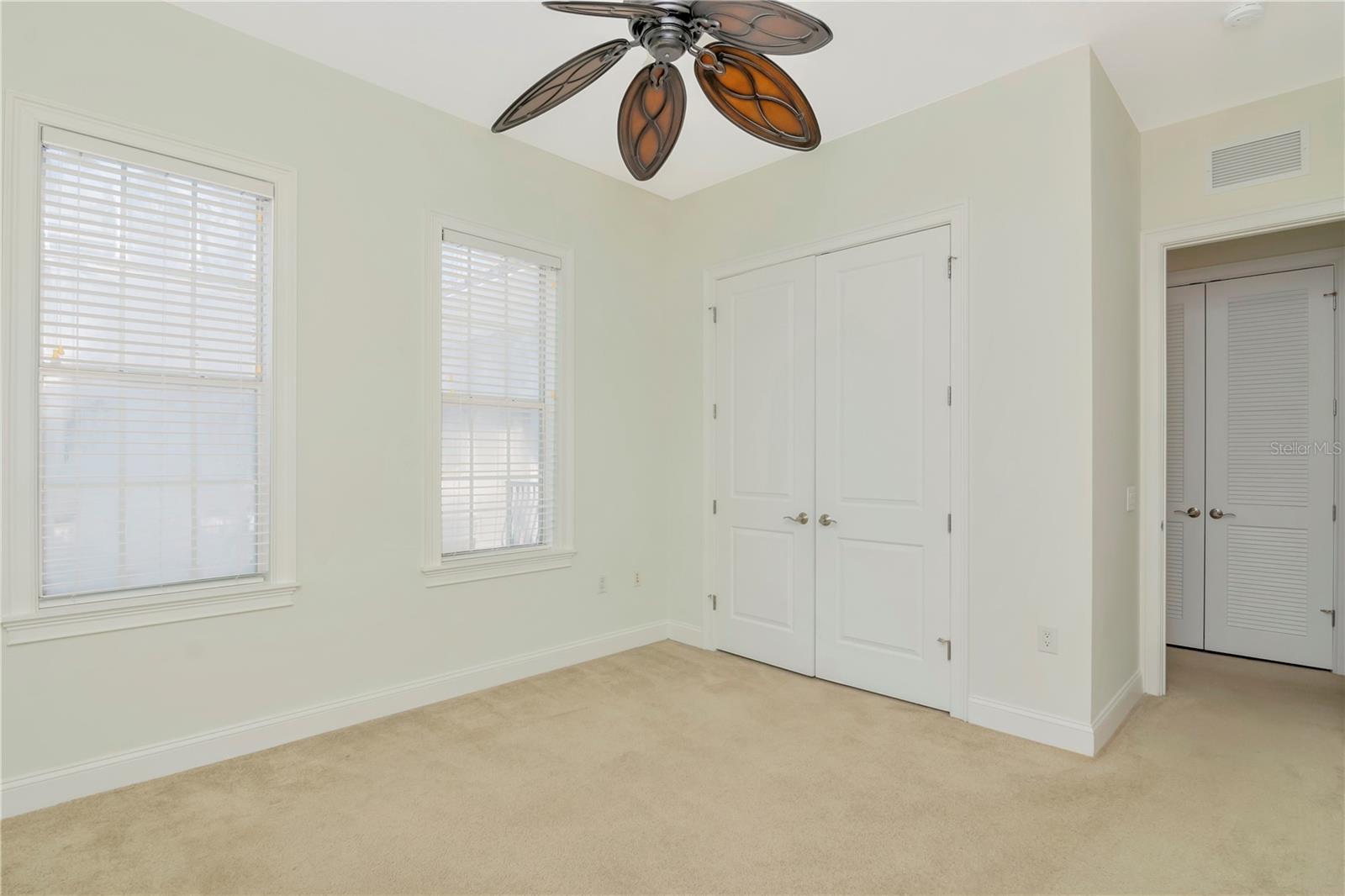 Welcome to Back Bay at Carillon. Immerse yourself in luxury living in this exquisite three-bedroom, three-bathroom townhouse, complete with a convenient half bath and a spacious 2-car garage boasting ample storage. A sense of tranquility unfolds as you step into a spacious living area with high coffered ceilings and inviting floor-plan. The stunning first-floor master bedroom, designed for ultimate relaxation, boasts a newly updated bathroom and 2 large walk-in-closets. Ascend the stairs, and discover a versatile bonus room off the kitchen – the perfect canvas for your dream theater, game room, or home office. Effortlessly entertain in the newly renovated gourmet kitchen, featuring gleaming quartz countertops, contemporary fixtures, and ample space to unleash your culinary creativity. French doors open to a spacious patio off the kitchen. Large windows grace the living areas, bathing the home in natural light and creating an inviting ambience. Upstairs, a large family room loft with connected balcony is accompanied by two bedrooms and two full bathrooms. Both AC's are brand new (2023) Beyond your doorstep, a vibrant community beckons. Carillon offers residents a resort-style experience, complete with a swimming pool, a well-appointed clubhouse, and a state-of-the-art gym – ideal for those seeking an active and social lifestyle. Beautiful walking paths, nearby grocery and great restaurants make Back Bay at Carillon one of the most desired places to live in St. Pete. This is more than a home – it's a luxurious retreat. Schedule your showing today. Bedroom Closet Type: Walk-in Closet (Primary Bedroom).