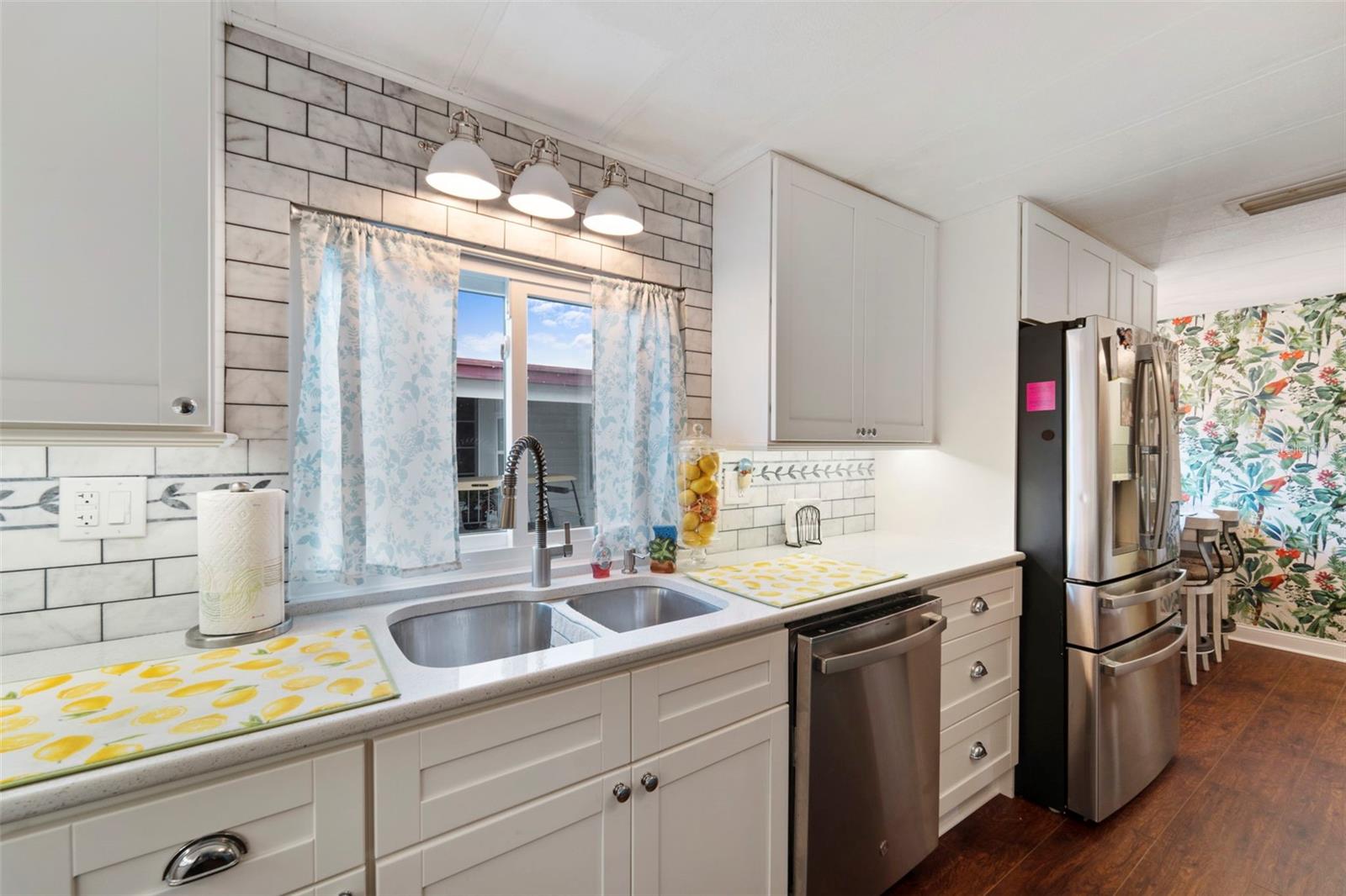 HUGE PRICE IMPROVEMENT. Seller motivated, make an offer! Step into your dream home in the radiant sunshine state of Florida, where exceptional upgrades meet waterfront luxury in a vibrant community. This beautifully renovated home boasts new flooring throughout, complemented by fresh siding and a state-of-the-art roof. Enjoy peace of mind with hurricane windows providing contemporary and secure living. The master bathroom and kitchen have been meticulously remodeled, featuring gleaming stainless steel appliances and a convenient new pantry. The laundry room is equipped with a brand-new washer-dryer combo, making chores a breeze. Fresh paint throughout the home creates a lively and inviting ambiance. Outside, the community offers two private boat ramps for seamless waterfront adventures. Relax by the pool, engage in friendly shuffleboard games, or challenge friends to billiards in the clubhouses. Stay active in the on-site gym and participate in regularly scheduled activities that foster a sense of community. With 24/7 security monitoring, you can enjoy all amenities with peace of mind. For those who love friendly competition, the options are endless – from cornhole to various fitness clubs, there’s always something happening. This isn’t just a house; it’s a bustling hub of activity and a thriving community where connections are forged, activities are enjoyed, and the community spirit makes each day extraordinary. This is more than a residence; it’s a complete lifestyle waiting to be embraced. Welcome to your new home, where every day is an opportunity for new experiences and enduring memories. Seize the chance to live the lifestyle you’ve always envisioned.