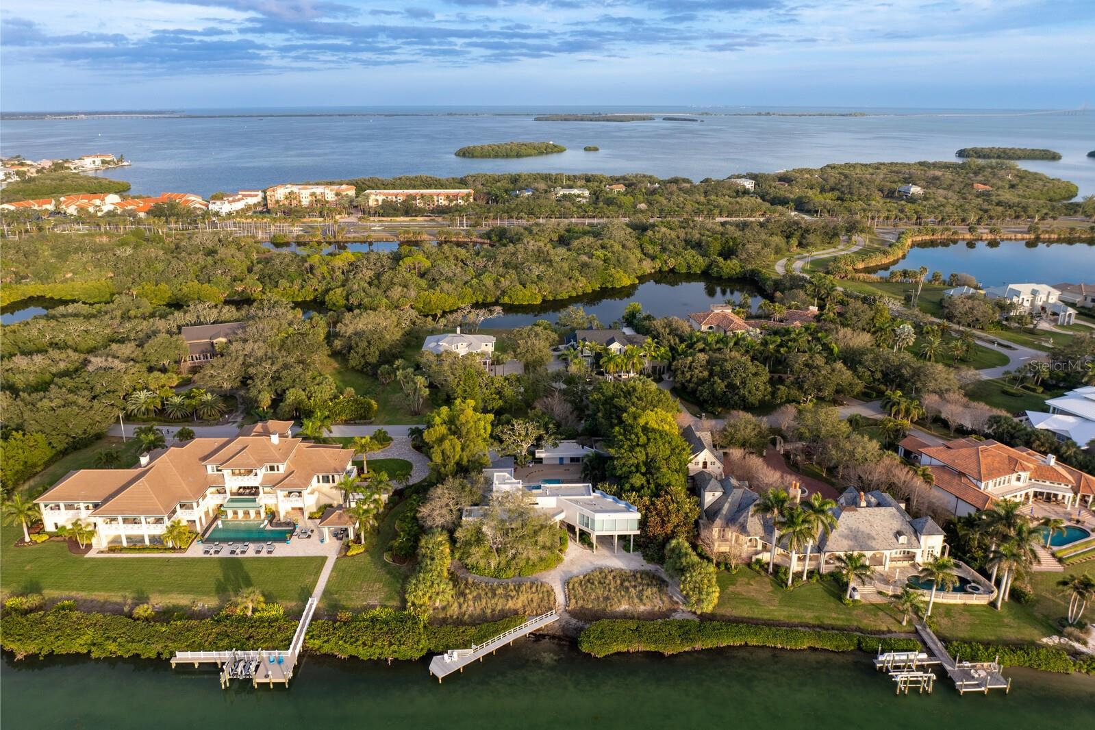 Enjoy modern coastal living with breathtaking, unobstructed open water views of the Gulf of Mexico. Situated on nearly an acre in the exclusive Westshore enclave of Tierra Verde, this architecturally unique waterfront residence offers a rare opportunity to create your dream home in one of Tampa Bay’s most desirable locations. Built in 1988 with a forward-thinking open-concept design, the home features expansive floor-to-ceiling windows that blur the lines between indoors and out, offering panoramic views from nearly every room. Recently updated White Oak hardwood floors span the main living areas, enhancing the warm, modern aesthetic. The kitchen and upper-level primary suite present an exceptional opportunity for a full renovation and redesign, allowing you to fully personalize and elevate the living experience to today’s luxury standards. The flexible floor plan includes a loft-style second level with potential for complete reconfiguration and expansion—add bedrooms, baths, or a top-floor entertainment space to suit your lifestyle. Outdoor living is just as impressive, with a rooftop deck and hot tub offering 360-degree views, a lap pool, expansive deck, landscaped gardens, and a detached guest suite with a private gym. Located just 10–15 minutes from St. Pete Beach, Downtown St. Petersburg, Fort De Soto Park, and the I-275 corridor, this property combines privacy, potential, and prime waterfront access. Bring your vision and make this iconic Gulf-front property your own.