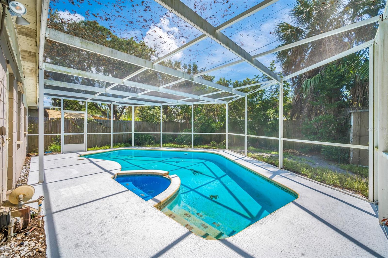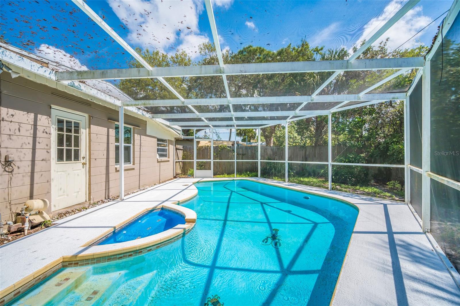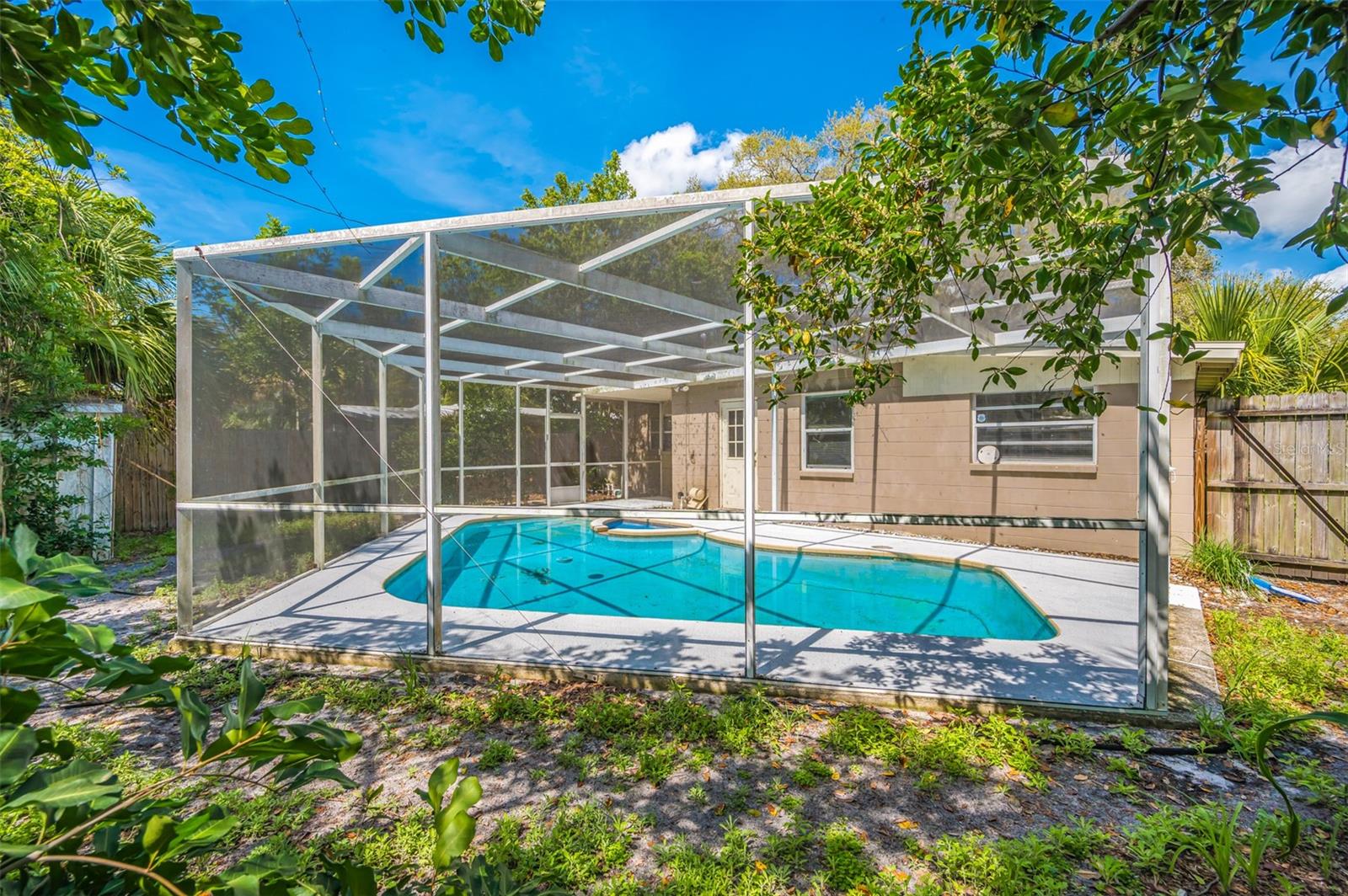 Charming solid block Swimming POOL home nestled in the coveted neighborhood of Jungle Terrace in St. Petersburg 15' drive to the Sunny pristine beaches of Treasure Island, Madeira Beach and St Pete Beach, and in close proximity to shopping hubs and unique dining spots. This home offers the ideal combination of convenience and tranquility for those seeking the Florida Lifestyle. Perfect for an investment or come enjoy the sunshine year-round. 3 bedrooms and a single bath, this cozy abode exudes charm and comfort. Step into the backyard oasis where a fully screened in pool awaits, offering a perfect retreat for relaxation and enjoyment year-round. The kitchen offers gleaming granite counters, tile back-splash and great breakfast/dining nook - was redone in 2016. Perfect for entertaining guests while cooking. Nice sized bedrooms offer plenty of room for guests or use one for your home-office. A large carport and driveway for convenient guest parking. Roof 2016, AC 2016. NON-FLOOD ZONE...