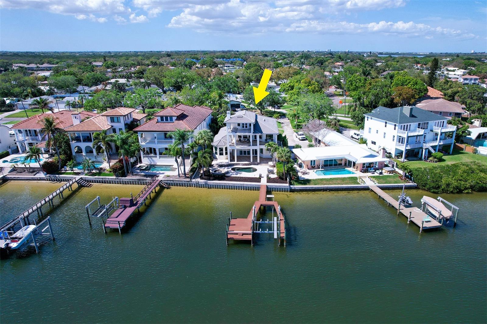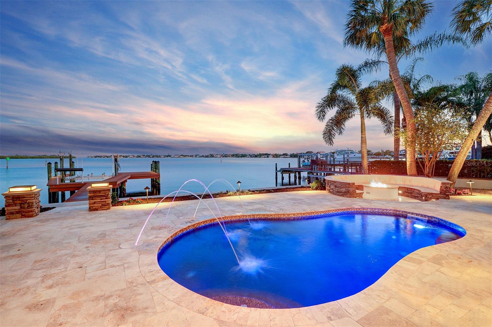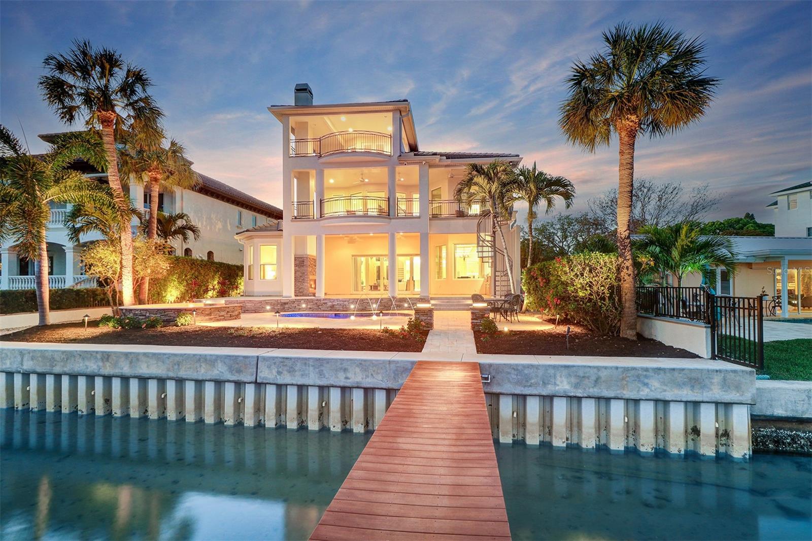 Waterfront Oasis with private dock in St. Petersburg, FL. Superior craftsmanship combined with elegance defines this custom-built 3 story home found on the tranquil waters of Tampa Bay. This home is elevated (high and dry) and built to last with its impressive exterior all block construction, hurricane impact resistant windows & doors, tile roof, substantial sea wall and whole house generator. It's brimming with architectural details and magnificent water views throughout. The impressive open concept "water view" kitchen is a gourmet chef's dream with a massive granite island, custom cabinetry, an abundance of storage and professional series appliances. The kitchen opens to the great room also with fabulous water views. The home features “smart automation technology”, maple wood floors, custom built-ins, a main level primary suite with large walk-in dressing room and luxurious en-suite bath, a nicely appointed guest suite, plus an executive office. The second living level consists of two bedrooms, a wet bar and large family room that opens to an enormous balcony with more amazing waters views. The third level has yet another family room, perfect for yoga or quiet reading and a balcony with more spectacular views of open Tampa Bay and downtown St Petersburg. Entertain in grand style by utilizing accordion doors that open to seamlessly blend indoor and outdoor living. The private back yard features a large covered terrace, inviting fireplace, outdoor kitchen, and built in fire pit that surround the Pebble-Tec salt water pool. The “U” shaped custom dock with boat lift can accommodate a large vessel making boating or fishing a breeze. This home offers expansive views of Weedon Island Preserve, a protected 3,190 acre coastal ecosystem that can be accessed in 5 minutes by kayak or paddle board. This home has something for everyone and is conveniently located just a short bike ride to Vibrant downtown St Petersburg and is only a 20 minute drive to Tampa International Airport.