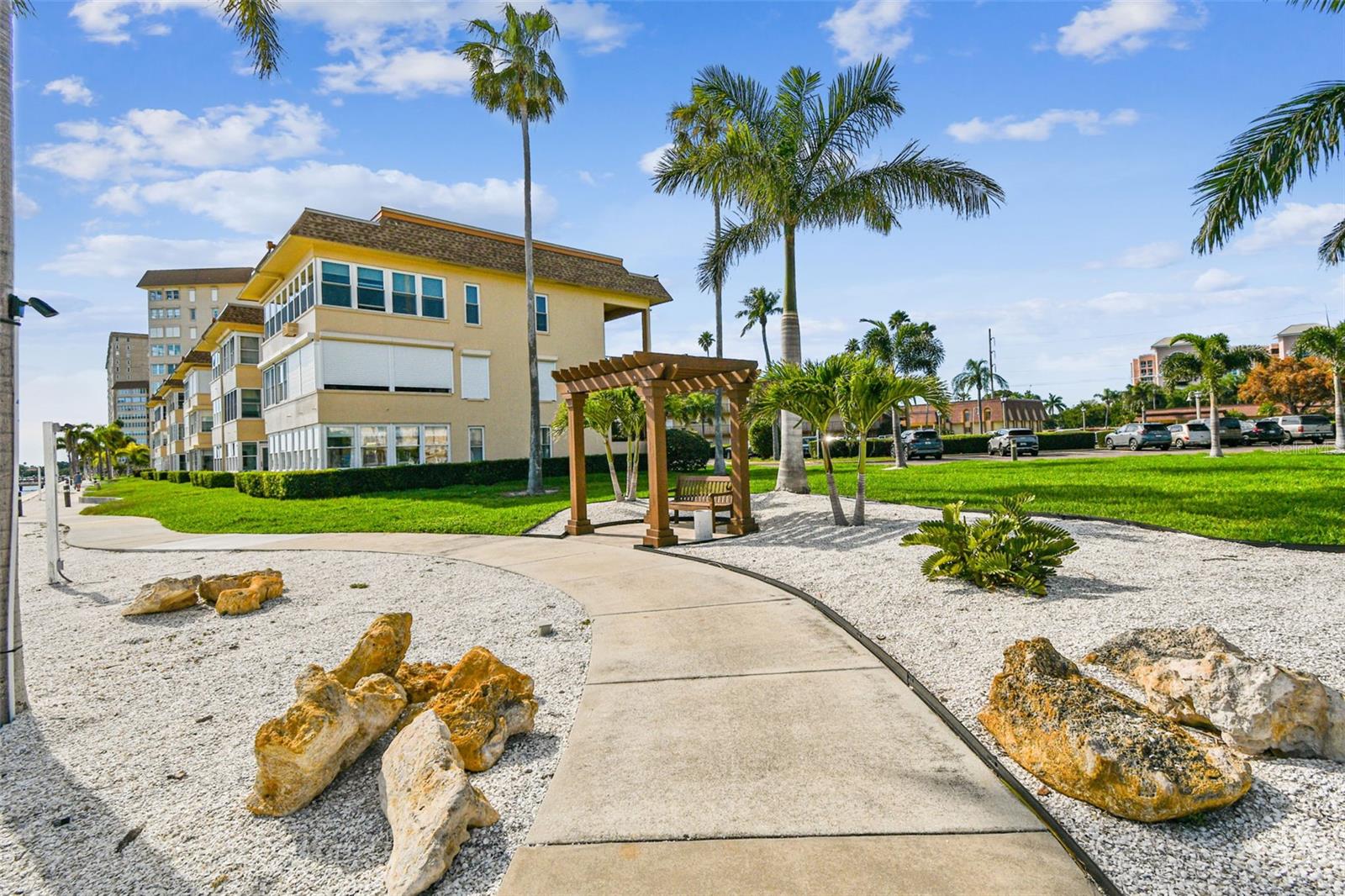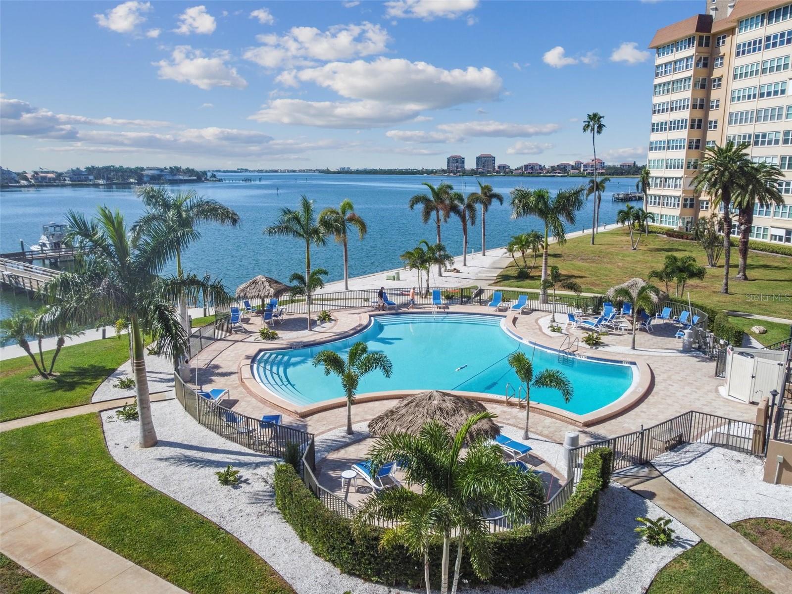 Prepare to be impressed by this beauty that combines the perfect blend of Shabby Chic charm and opulent details. Located in Bayway Isles Point Brittany, a wonderful Resort style 55+ Waterfront Condominium Community. You are going to be WOWED as you enter this beautiful recently furnished (yes, the furniture is inclulded in the sale!) and decorated condo, perfect in every way and ready for you to enjoy from day one! kitchen with maple cabinets, granite countertops, stainless steel appliances and breakfast island. Plenty of space to entertain family and friends in the open living/ dining and Florida room with multiple sitting nooks perfect for reading or sip your favorite drink.Primary and guest bedroom include a walk-in closet and both bathrooms are nicely updated. Insulated windows where you can catch a glance of the bay and boats as they pass by. Two rare assigned parking spots and two storage lockers are a plus! This tropical Isle Waterfront Community on Florida's West Coast includes 4 heated pools, a fishing pier, first come first serve boat slips, kayak storage, launch dock, fire pits, billiards room, card room, Club house, fitness facilities, yoga/dance studio/art studio/ballroom, waterfront walking path, tennis courts, hot tub, Tiki Huts, covered Pavilion, it also features onsite grocery and deli shops, Located only minutes to St Pete Beach, Pass a Grille, Fort De Soto beach, downtown St Pete with it's great waterfront dining, restaurants, Museums , best shopping and entertainment! A 30 minute drive to Tampa International Airport, Tampa Bay baseball games, Tampa Bay Buccaneers home. Come and get a taste of the florida lifestyle,you won't be disappointed.