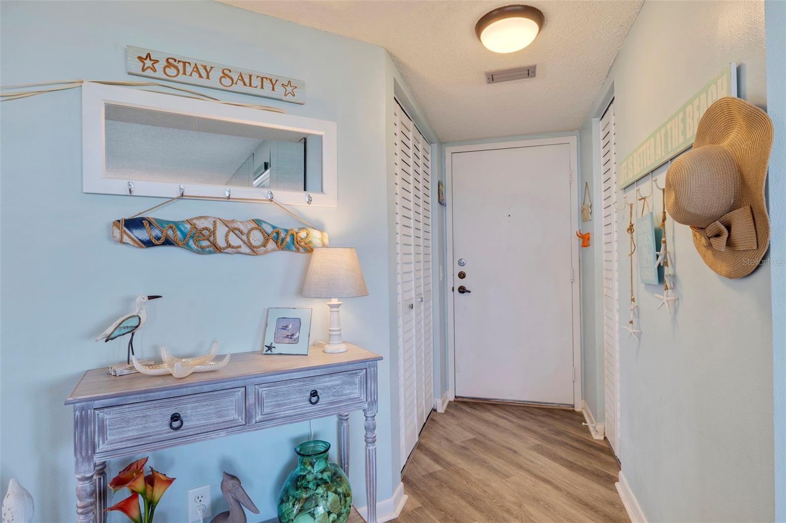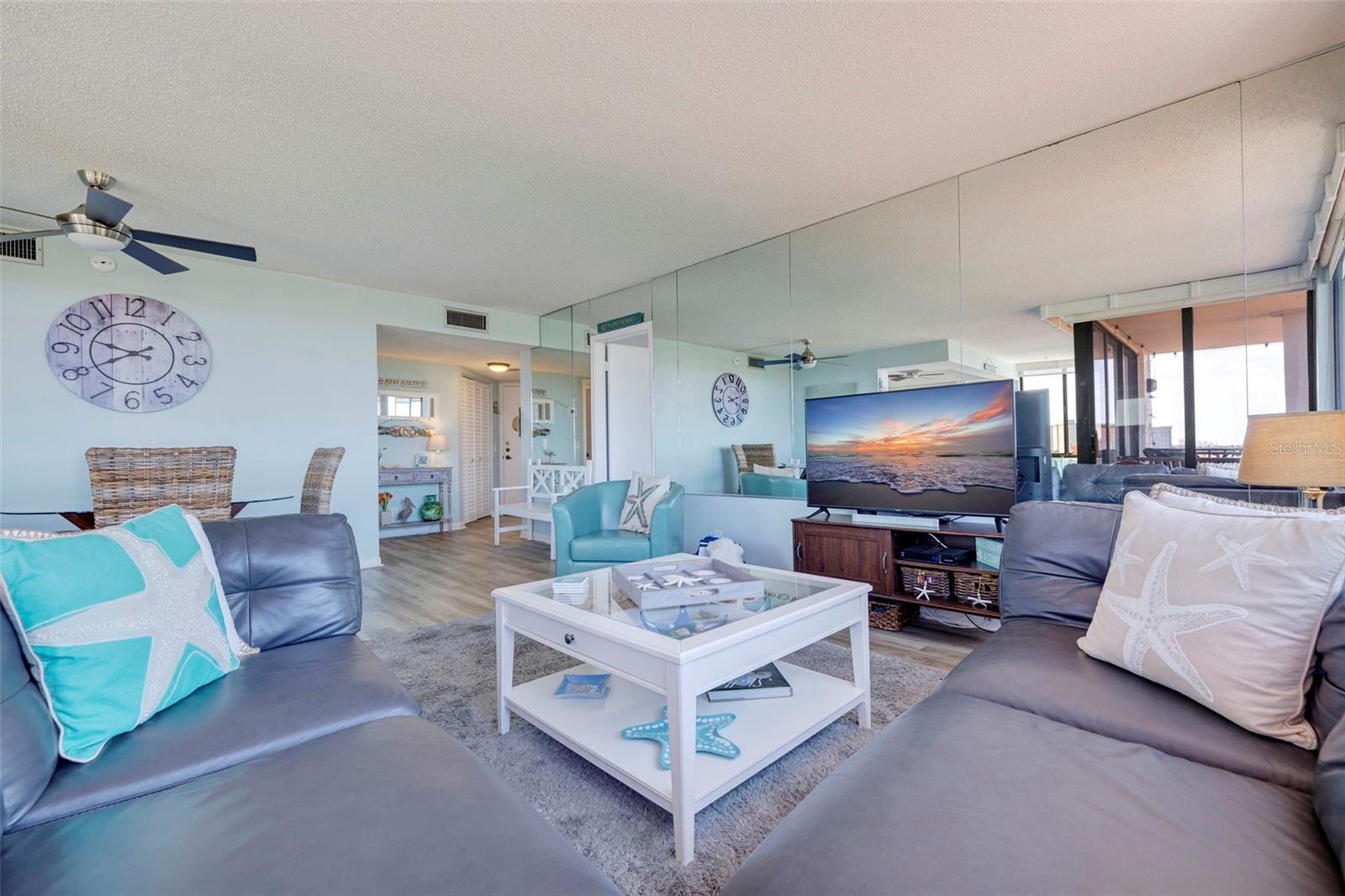 Make this your coastal getaway with this condo's charm - a top corner unit—partial water views & fully furnished! Welcome to easy coastal living in this beautiful 2-bedroom, 2-bathroom condo in the highly desirable Palma Del Mar community. This 1,050 sq ft top-floor corner unit overlooks the 5th tee box of the golf course and offers breathtaking views of Boca Ciega Bay and Tampa Bay—visible from nearly every room and your private lanai. All assessments have been paid and the Milestone Inspection is complete, giving peace of mind to both homeowners and investors. The HOA’s annual budget meeting notes are available, showing a stable, well-managed community with low fees. This unit has been thoughtfully updated with luxury vinyl plank flooring, stainless steel appliances, modern lighting, and contemporary bathroom vanities. The spacious primary suite includes a cozy nook perfect for a home office or reading area, along with a large walk-in closet. Enjoy resort-style amenities including a heated saltwater pool & spa, clubhouse, fitness center, bike storage, fishing pier, and many golf courses. The condo includes a premium assigned parking space just steps from the lobby and plenty of guest parking. Located minutes from St. Pete Beach, Fort De Soto Park, Downtown St. Petersburg, top-rated restaurants, and shopping—this is a perfect year-round residence, vacation getaway, or income-producing rental (30-day minimum lease). Whether you're seeking tranquility, investment potential, or both—this is the one you've been waiting for.