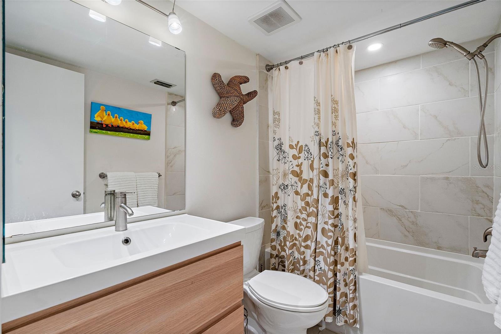 AWESOME view of a pond with a relaxing water feature! This highly sought after 945 sq. ft. ground floor, 2 bedroom / 2 bathroom floor plan is now available for purchase! This condo is in pristine condition, Totally Renovated and move-in ready. Master bath has new walk-in shower, new vanity, toilet, and more. The entire unit has Ceramic Tile flooring. Kitchen has been updated with quartz countertops and new kitchen cabinets. The patio is excellent for relaxing on a nice evening. Amenities include: Heated Pool, Hot Tub, Fitness Center and Social Room. Your assigned covered parking is only steps from your front door. Less than 2 miles to our beautiful beaches, only 25 minutes to TPA International Airport, 15 minutes to exciting downtown St. Pete with fine dining, museums, theater, movies, shopping, Saturday morning markets and 20 minutes to Ellenton Outlet Mall. Buyer should verify room measurement for accuracy.