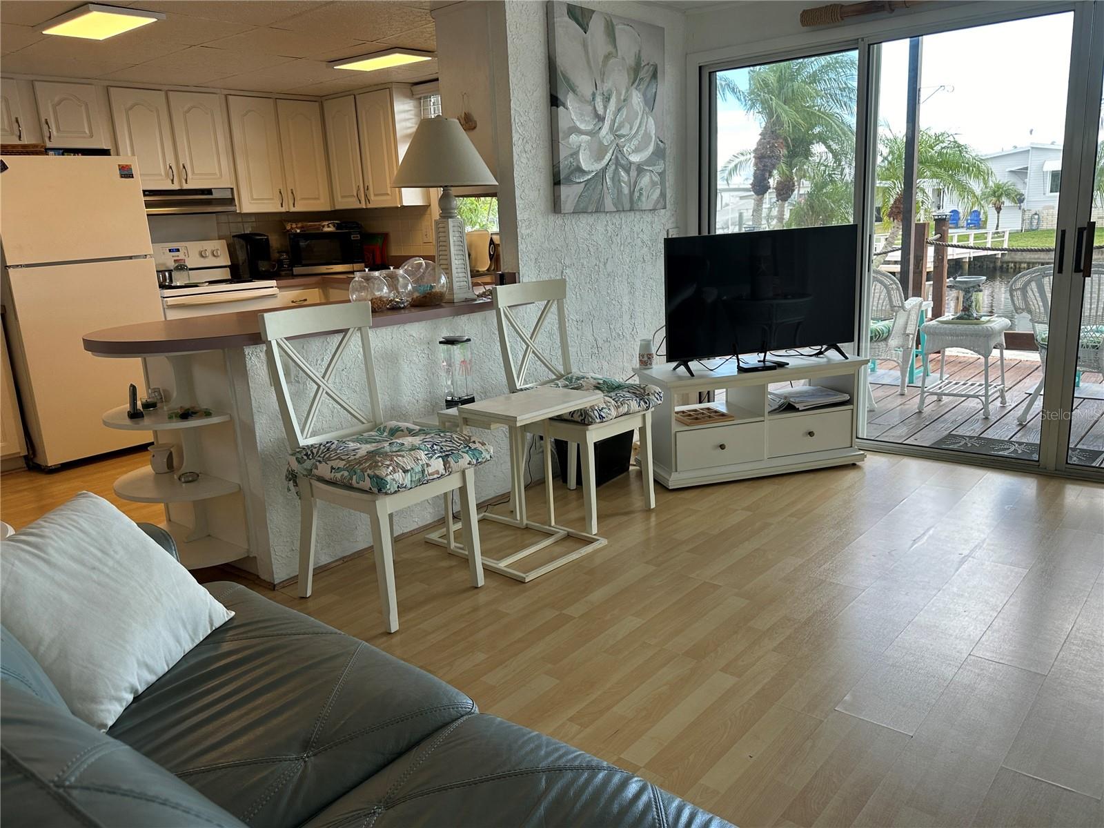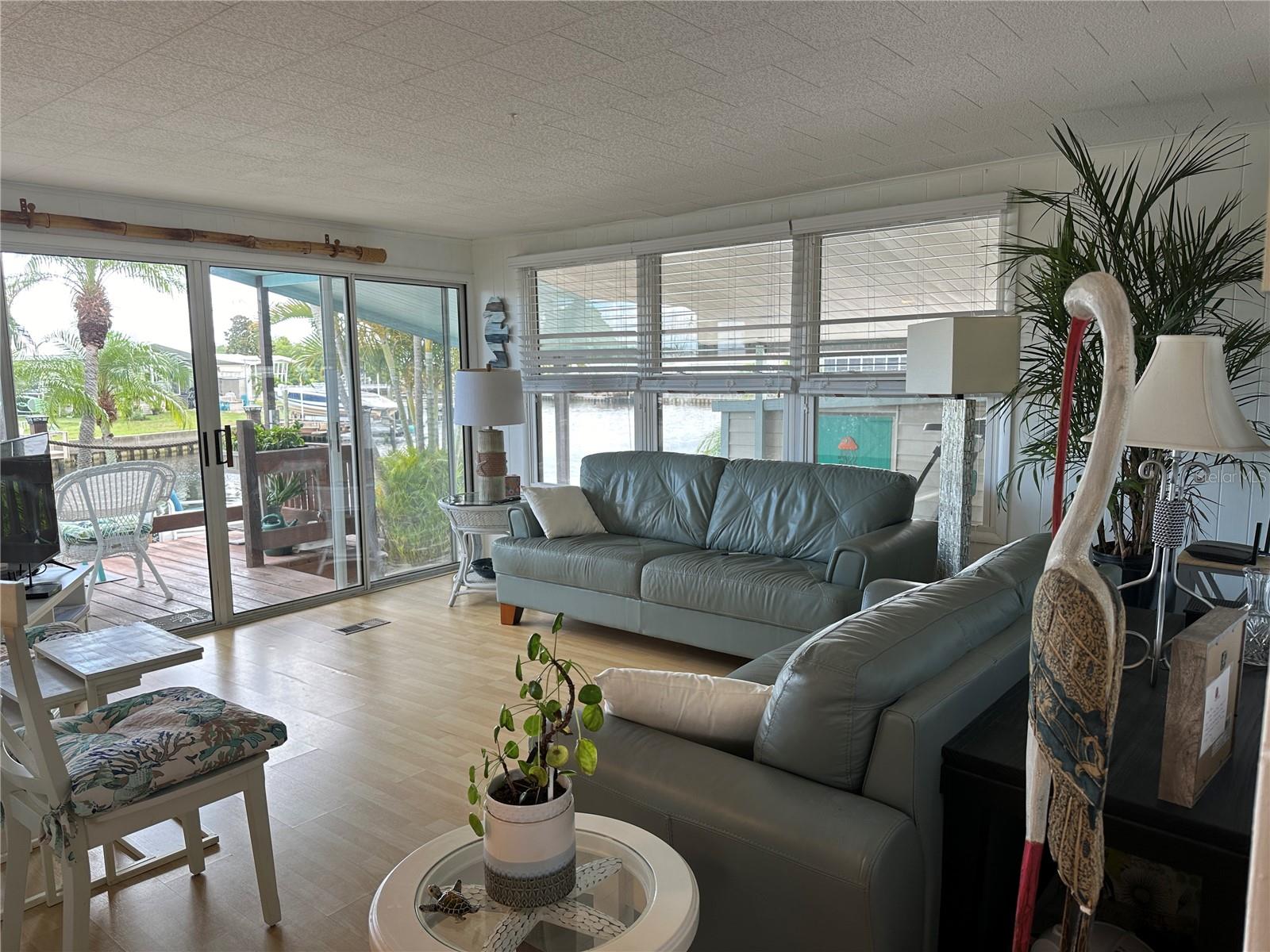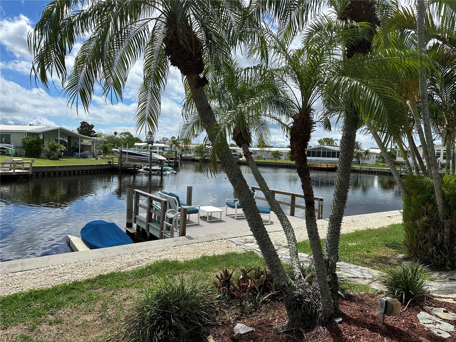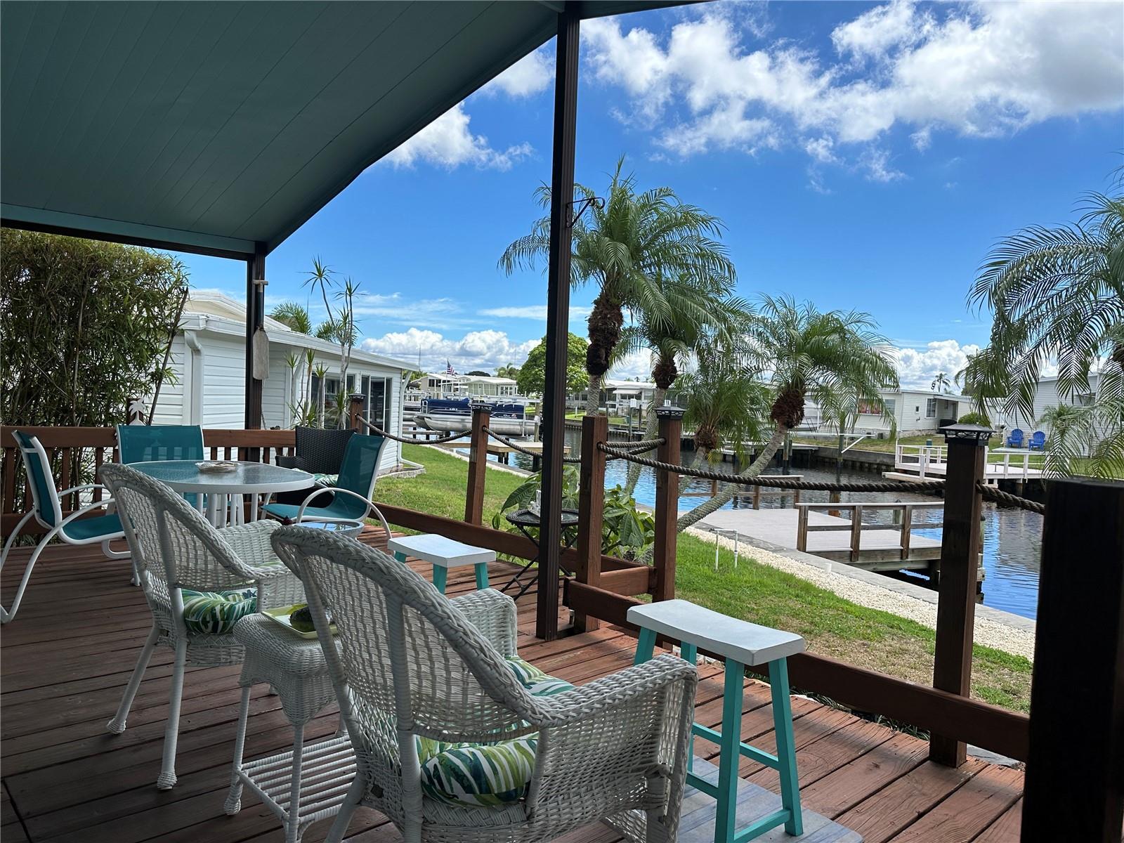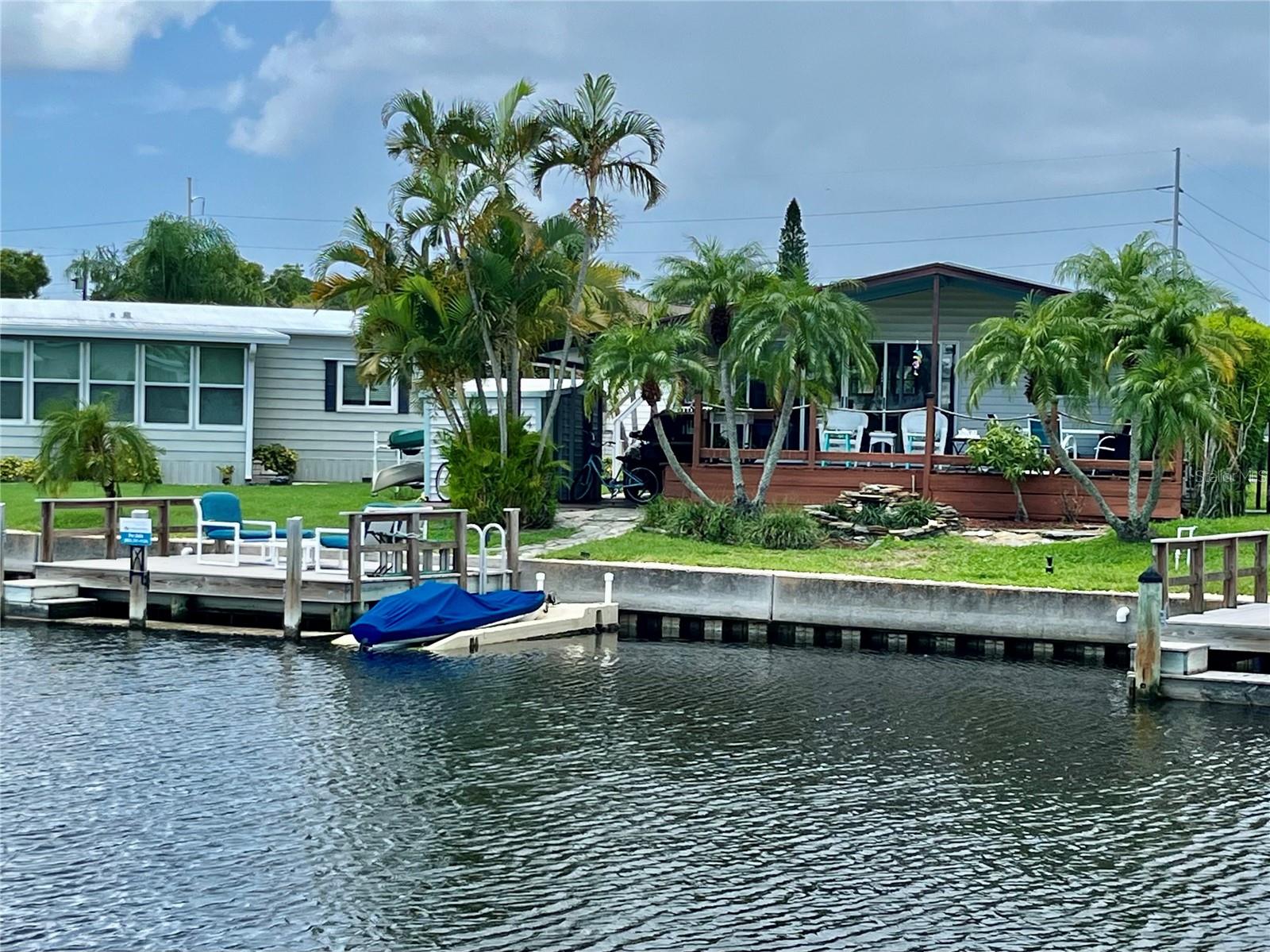 Watch dolphins and manatees from your dock, your back porch or your living room! This lovely home sits on a saltwater canal with awesome views and access to Tampa Bay. Tastefully done in coastal decor, this is a must see! This 2 bed/2 bath home built in 1975, is just under 1000 sq ft, and has a lot of outside space to enjoy. Laminate flooring throughout. AC 2017, most windows updated 2009, updated baths, with walk in showers, large kitchen with lots of cabinets and adjacent dining area. Living room has lots of windows with natural light and the double sliders leading to the outside porch provide stunning views of the waterway! 15 X 16 composite dock (2009). Price includes share for the lot and ownership in the community. Low HOA $360 includes water, sewer, trash and lawn maintenance, 24 hr manned gate, heated pool, fitness room and clubhouse, two boat ramps, shuffleboard, bocce, and many other activities. This home is 35 minutes to Tampa Bay via water, 20 minutes from 2 airports, and the beaches. Two indoor cats are welcome. 675 credit score required by management. This is a must see! Make an appointment today!