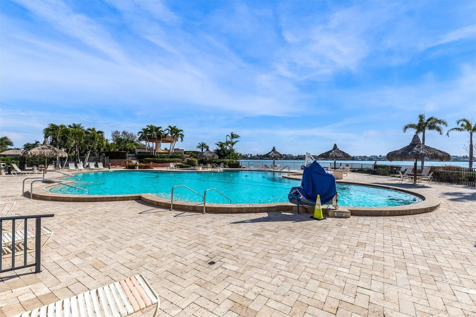 ~AMAZING PRICE ADJUSTMENT~ COMPLETELY DRY THRU HELENE & MILTON~ YES! DRY and on the ground level! You will feel like you are on vacation every day with this first floor, 2-bedroom, 2-bathroom 1605 sq foot HUGE condo, featuring water views and a bonus Florida room. One of the few units with an outdoor patio that overlooks lush landscaping with spectacular views of the Boca Ciega Bay and is completely STEP FREE. Enjoy the resort style pool right outside and stroll along a scenic walking path along the water to view the dolphins and manatees! Light and bright eat in kitchen with stainless steel appliances and white cabinetry. A built-in desk area in the second bedroom optimizes space and adds functionality. The Florida room boasts a wall of windows adorned with elegant plantation shutters, flooding the space with natural light. The building has passed its 2023 Structural Milestone Inspection, so you can rest easy and be ensured the highest standards surround you. Enjoy the convenience and luxury of Point Brittany, a 55+ community that offers a wide range of amenities from a state-of-the-art fitness center and relaxing swimming pool to beautifully landscaped gardens and social areas, there is something for everyone. 24-hour security, elegant clubhouse, billiards room, commercial catering kitchen, ballroom, yoga/dance studio, arts and crafts room with pottery kilns, conference rooms, on-site social director, lockers, spa and more! Other outdoor enhancements include a waterside gazebo, firepit, grilling areas, gardens, shuffleboard, kayak storage with launch and marina. The laundry room is super close and no charge or limit to use. Minutes to downtown St Petersburg AND the beautiful St Pete/Pass A Grille/Ft Desoto beaches. Hop on the bike trail right outside your door or shop and dine minutes away! Brand new AC/furnace! Welcome to Paradise!!!!!
