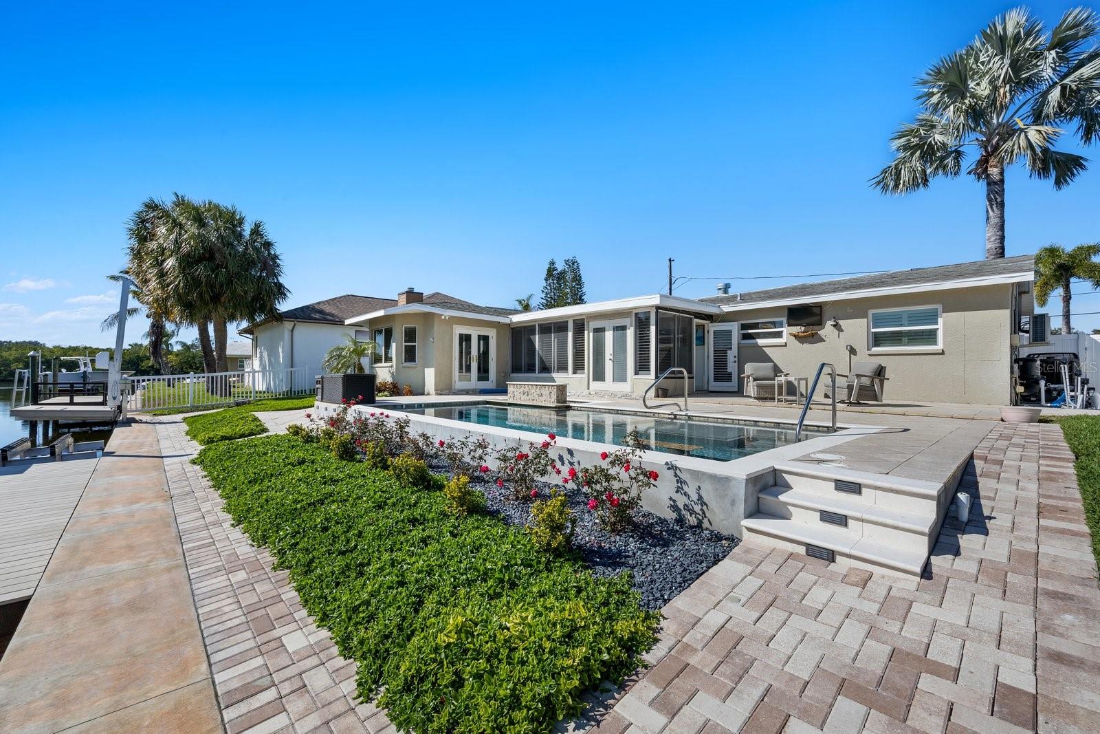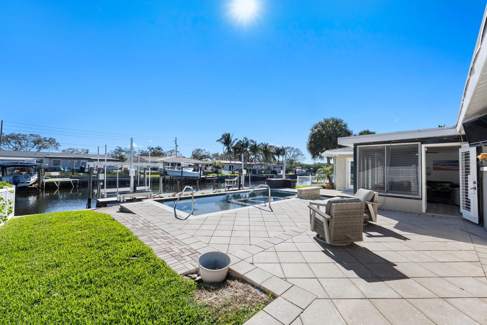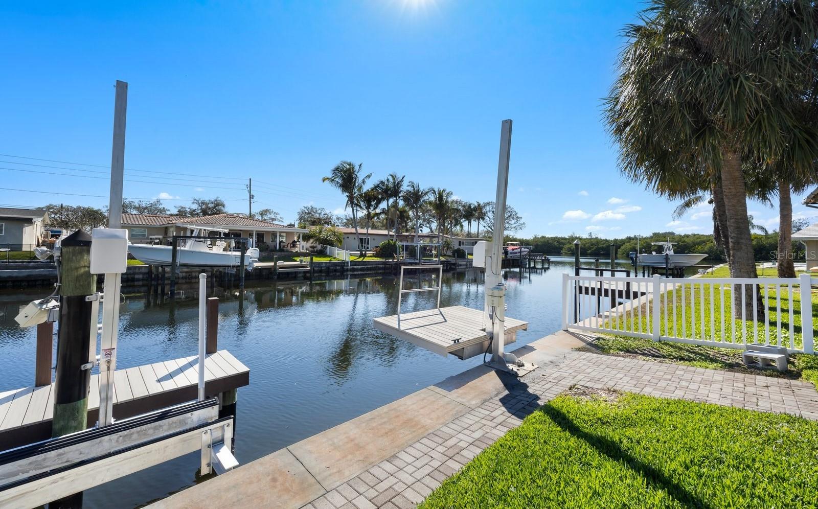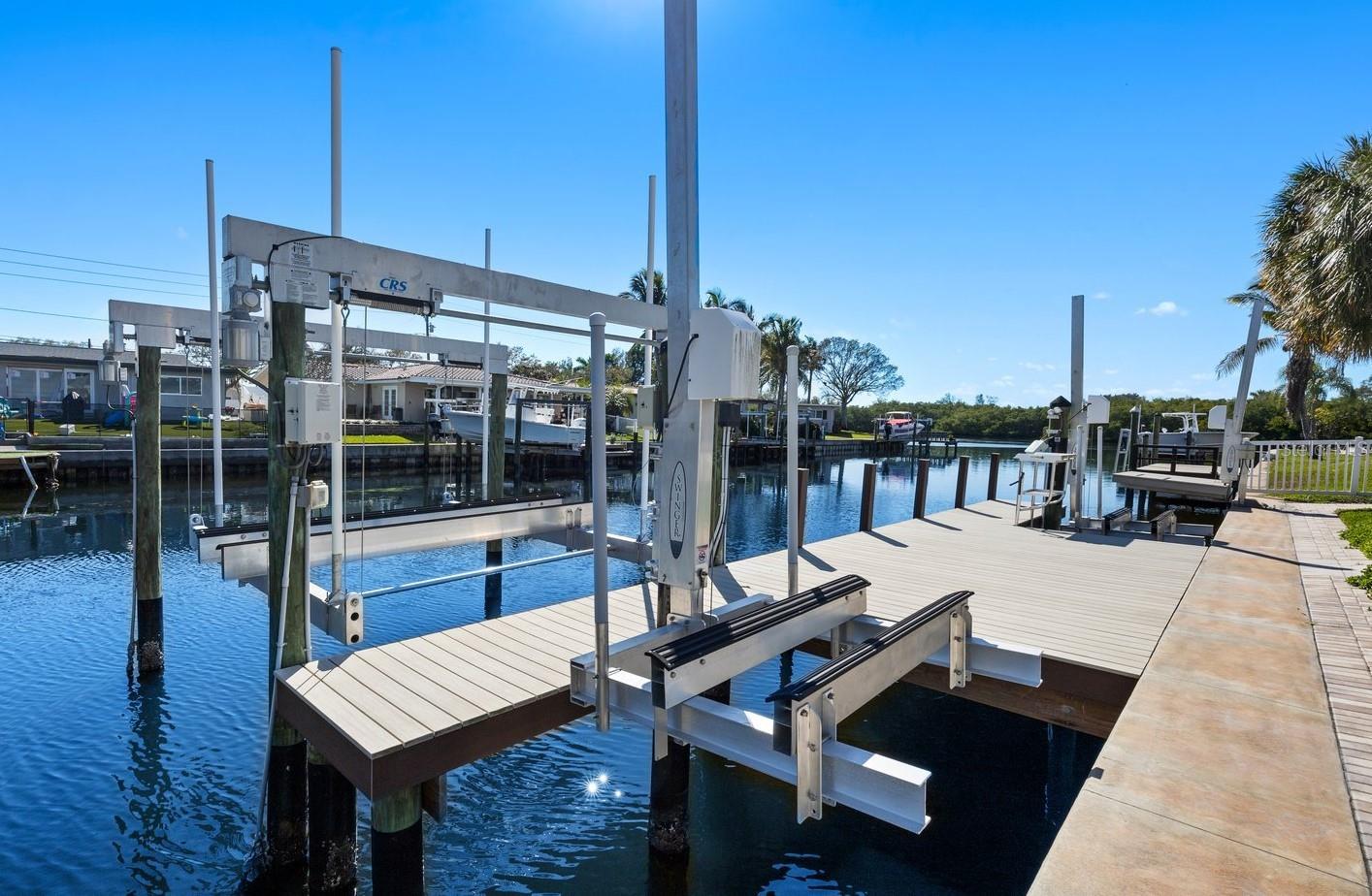 Don't miss this beautiful waterfront property that has so much to offer for a true boating lifestyle. Upon entering the home, you will be greeted by a kitchen that is a chef's and entertaining dream. No expense was spared in the design and execution of this kitchen. The chef in the family will delight in the custom cabinetry, an industrial Viking double oven, a commercial dishwasher and a 55-lb ice maker, the Jade commercial natural gas 6 burner stove, and a remotely driven range hood. The kitchen bar can comfortably seat six or more and is the heart of the home. From the kitchen, your family and guests will flow effortlessly to the open-concept dining and living room which features a beautiful water and pool view. For extra comfort, there are remote-controlled blinds and ambient lighting. Two additional guest bedrooms and a guest bath are split from the master bedroom and bath which features a double sink, separate walk-in shower, and jetted tub. Walking through the French doors, you will be amazed at the custom-built heated and cooled pool with an integrated hot tub, a 3-jet exercise swim lane, a waterfall, and two separate lounging areas. Remote-controlled functionality of the lights, pumps, temperature, and jets ensures easy operation of the pool and its many features. The dock and 75 feet of waterfront of this property are truly a boater's dream. From the new 13k remote-controlled boat lift, and 2 Jet Ski lifts to the independent water lift for kayaks/paddle boards and the fish table with water and lights, this property checks all the boxes for a true Florida boating lifestyle. Don't miss this exceptional property, schedule your private showing today.