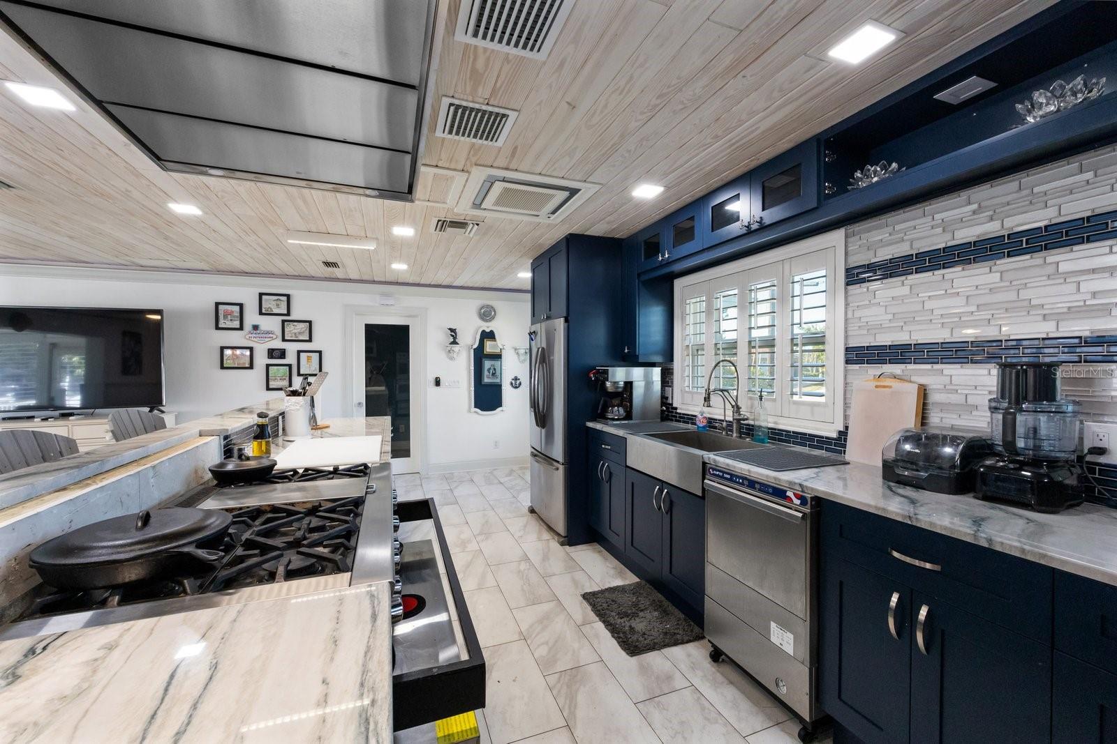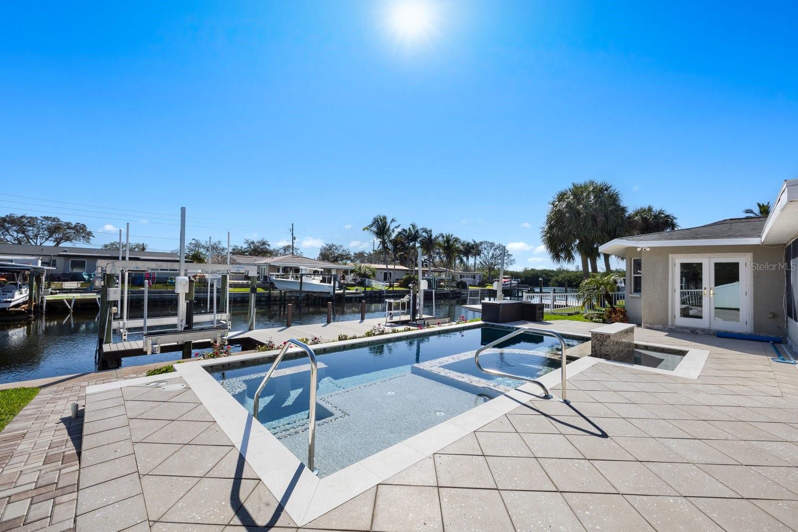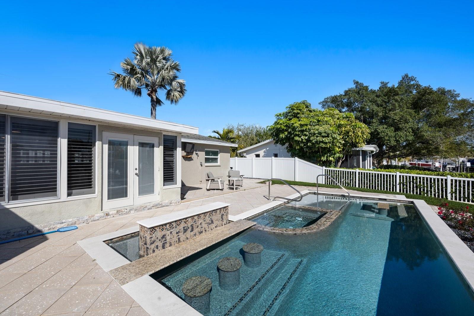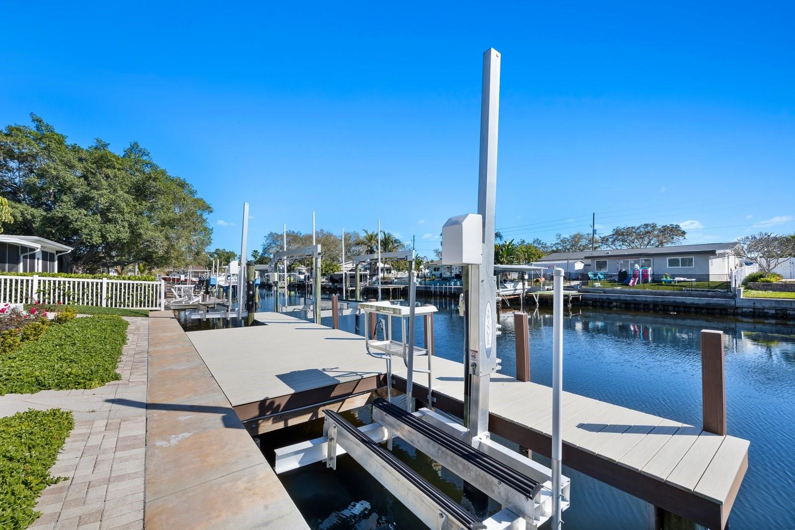 Don't miss this beautiful waterfront property that has so much to offer for a true boating lifestyle. Upon entering the home, you will be greeted by a kitchen that is a chef's and entertaining dream. No expense was spared in the design and execution of this kitchen. The chef in the family will delight in the custom cabinetry, an industrial Viking double oven, a commercial dishwasher and a 55-lb ice maker, the Jade commercial natural gas 6 burner stove, and a remotely driven range hood. The kitchen bar can comfortably seat six or more and is the heart of the home. From the kitchen, your family and guests will flow effortlessly to the open-concept dining and living room which features a beautiful water and pool view. For extra comfort, there are remote-controlled blinds and ambient lighting. Two additional guest bedrooms and a guest bath are split from the master bedroom and bath which features a double sink, separate walk-in shower, and jetted tub. Walking through the French doors, you will be amazed at the custom-built heated and cooled pool with an integrated hot tub, a 3-jet exercise swim lane, a waterfall, and two separate lounging areas. Remote-controlled functionality of the lights, pumps, temperature, and jets ensures easy operation of the pool and its many features. The dock and 75 feet of waterfront of this property are truly a boater's dream. From the new 13k remote-controlled boat lift, and 2 Jet Ski lifts to the independent water lift for kayaks/paddle boards and the fish table with water and lights, this property checks all the boxes for a true Florida boating lifestyle. Don't miss this exceptional property, schedule your private showing today.