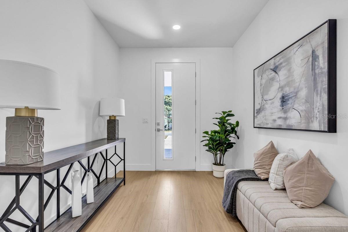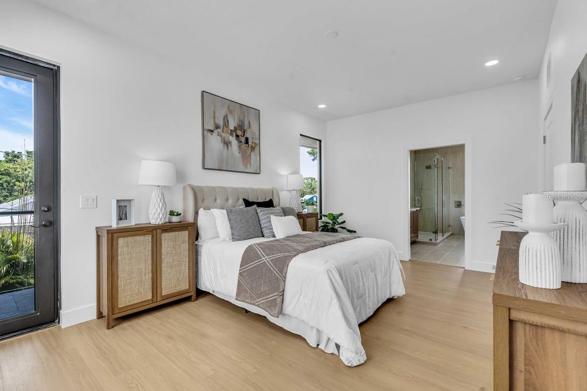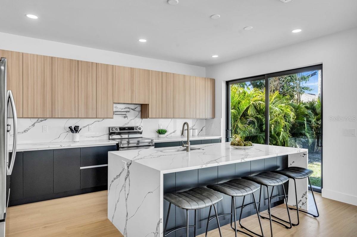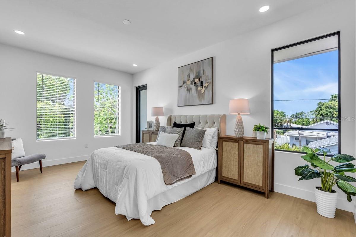 Step into modern luxury in this beautiful two-story home in St. Pete! Offering 4 bedrooms and 3 bathrooms, this stunning home is thoughtfully designed to provide the ultimate in comfort and style. As you enter, you're greeted by an open-concept living area, adorned with luxury vinyl plank floors that flow seamlessly throughout and large PGT hurricane impact windows that flood the space with natural light. The chef's kitchen boasts custom-made solid wood cabinets, exquisite granite countertops, and top-of-the-line stainless steel appliances. The second floor houses all three bedrooms, ensuring privacy and tranquility. The master bedroom is a true retreat with its own private balcony, perfect for enjoying your morning coffee or evening sunsets. The master en-suite bathroom is luxuriously appointed with modern fixtures. This home also includes an EV charger for electric vehicles. Another delightful feature is the blend of architectural design and nature on the front porch, adding a distinctive and natural element to the home's curb appeal. Make this modern masterpiece your own and enjoy a lifestyle of comfort and elegance with a touch of nature! Contact us today for more details.