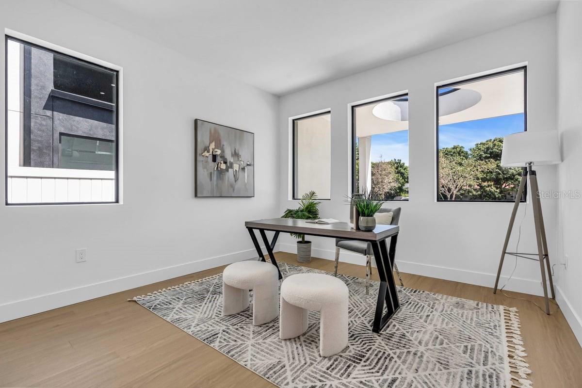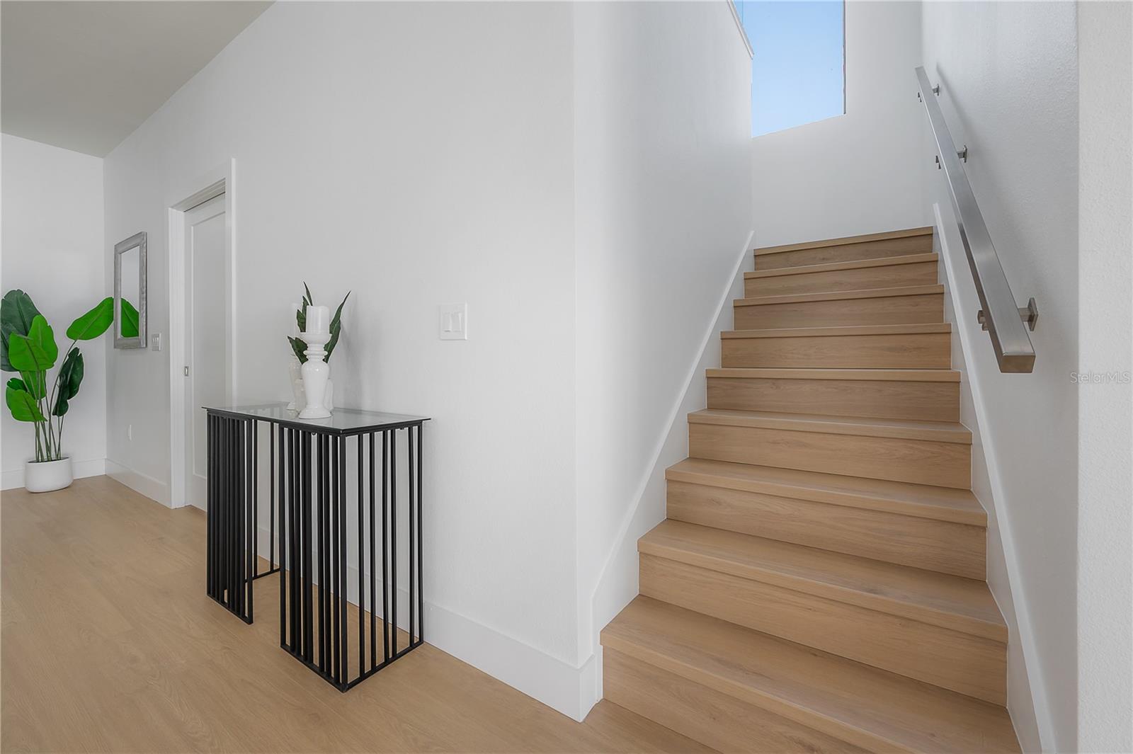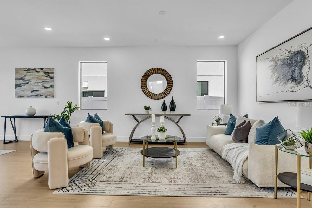 Step into modern luxury in this beautiful two-story home in St. Pete! Offering 4 bedrooms and 3 bathrooms, this stunning home is thoughtfully designed to provide the ultimate in comfort and style. As you enter, you're greeted by an open-concept living area, adorned with luxury vinyl plank floors that flow seamlessly throughout and large PGT hurricane impact windows that flood the space with natural light. The chef's kitchen boasts custom-made solid wood cabinets, exquisite granite countertops, and top-of-the-line stainless steel appliances. The second floor houses all three bedrooms, ensuring privacy and tranquility. The master bedroom is a true retreat with its own private balcony, perfect for enjoying your morning coffee or evening sunsets. The master en-suite bathroom is luxuriously appointed with modern fixtures. This home also includes an EV charger for electric vehicles. Another delightful feature is the blend of architectural design and nature on the front porch, adding a distinctive and natural element to the home's curb appeal. Make this modern masterpiece your own and enjoy a lifestyle of comfort and elegance with a touch of nature! Contact us today for more details.