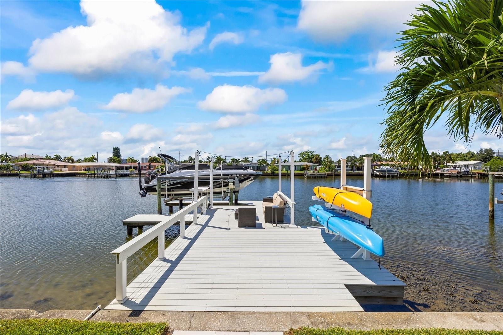 REMODELED AND MOVE-IN-READY! NEW INTERIOR DOORS AND CASINGS, DRYWALL REPLACED, INTERIOR REPAINTED, NEW BASEBOARDS, NEW LOWER KITCHEN CABINETS, ALL ELECTRICAL OUTLETS REPLACED, NEW RANGE/STOVE, WASHER AND DRYER, POOL PUMP, BOAT LIFT CONTROLS PANEL, GUEST BATH VANITY, MIRROR AND FIXTURES, ADDED 30AMP RV OUTLET, AND MORE! 3 EXTERIOR DOORS ON ORDER AND WILL BE REPLACED IN JANUARY. ALL PERMITTED AND COMPLETED BY LICENSED GENERAL CONTRACTOR. Experience the best of waterfront living with this charming 3-bedroom, 2-bathroom, POOL home in the desirable Causeway Isles. Boasting a prime location with no fixed bridges, this property is a boater's dream, featuring an updated dock with a 12,000LB boat lift. With direct access to the intracoastal it's just minutes to the Gulf of Mexico. Enjoy sunny days lounging by the salt water pool surrounded by Travertine tile that does not get hot. The backyard is fully fenced with a lovely patio and tiki bar to entertain your friends and family. The open floor plan is perfect for modern living, with tile flooring throughout. The primary bath was remodeled in 2022 with a walk in shower and floating sink. There is a one-car garage for added convenience with great shelving for storage. The home features a carport with a circular driveway which allows for plenty of parking. Explore nearby Treasure Island Beaches, less than 2 miles away, or take advantage of the short 15-minute drive to downtown St. Petersburg, where you'll find an array of incredible restaurants, vibrant bars, shopping, and a rich selection of museums and art galleries. Don’t miss out on this opportunity to own a piece of paradise with everything you need right at your fingertips. Photos were taken prior to the storm however the house is even better now. Come see in person! Contact us today to schedule a viewing!