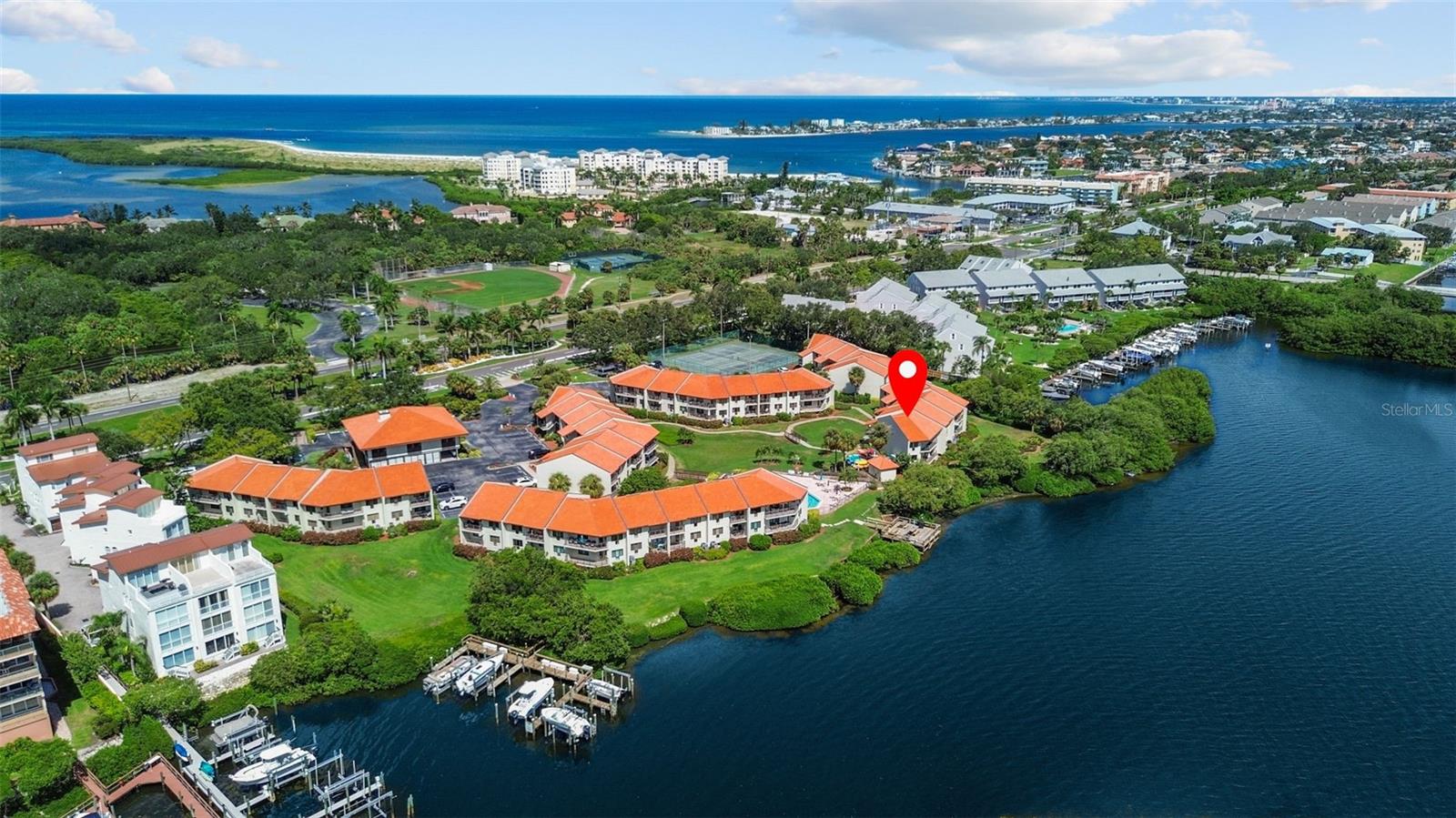 Attention investors! Rare opportunity for waterfront unit allowing short-term rental (STR). This gorgeous waterfront community offers three-day minimum rental. One of the only communities that legally allow STR on the Island. Survived Hurricane Helene and Hurricane Milton. No water intrusion, structural or property damage, according to the owner, after Hurricane Helene's and Milton's storm surge along Florida's Gulf Coast. Upon entering this desirable oasis, you will be greeted with sparkling waters of the bay and the oversized community pool and spa. Conveniently next to the pool are kayaks and kayak racks and storage, a 30-by-30-foot wooden dock/pier with picnic tables, and barbecue grills for cookouts and gatherings. Other community amenities include tennis/pickleball courts, boat dock rental with water and electric (waitlist may apply), clubhouse with ample meeting space, kitchen and bar, large screen TV, free Wi-Fi, fitness room, laundry room, storage room, bike storage, bike trails and boat parking spaces as well as guest parking spaces. This two-bedroom, two-full bath offers serene waterfront views that will take your breath away! The 6-by-30-foot covered patio overlooks the bay, and is only a short distance from the pool and spa, kayak racks, and the pier/dock. This community is just minutes to Fort De Soto Park, and other popular beaches. Just 15 minutes to downtown St. Pete. This tropical paradise has it all. What are you waiting for?