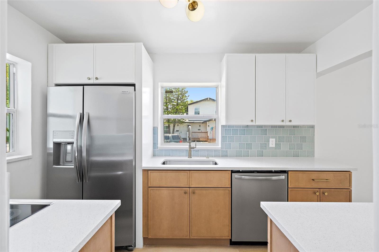 Welcome home to this beautiful 2 bedroom, 1 bathroom with a bonus room house featuring lots of open space and amazing natural sunlight with perfectly designed updates modernizing this home but keeping the original charm and character situated just one block from Central Ave on a corner lot with a two car attached garage and a 1 bedroom apartment with a full size kitchen newly renovated with brand appliances and quartz countertops. Plenty of outdoor space to entertain and garden. This is a perfect home or a great investment opportunity. Just a short walk to Central Avenue, where you'll find an array of shops, cafes, and restaurants. Plus, downtown St. Pete is only minutes away. And when it's time to hit the beach, St. Pete Beach is just a quick 12-minute drive, providing endless opportunities for outdoor Florida living. Don't miss out on this solid block home that is not in a flood zone.