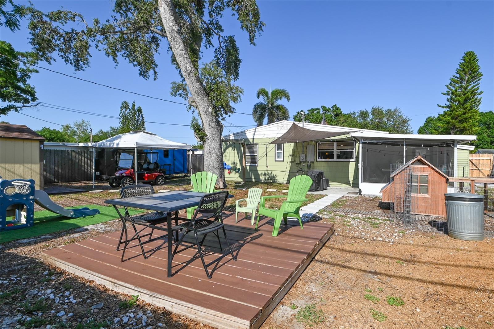 Discover your new home in this charming 3-bedroom split-plan property! The layout is designed to provide privacy, and the backyard your oasis! Step outside to a backyard that’s an entertainer’s dream. The open space is perfect for hosting gatherings, while the mature shade trees add beauty and provide a cool retreat on sunny days. The screened-in patio enhances your outdoor living experience, offering year-round enjoyment. The fully fenced yard isn’t just spacious—it’s versatile, with room for your RV or large items and a 30-amp outlet in the outdoor shed, making it ideal for campers and hobbyists alike. Centrally located, this gem is close to shopping, the interstate, stunning beaches, and right next to Meadowlawn Park. Have you checked it out? It is an active park that has a calendar loaded with events. Plus, being in a golf cart-friendly community adds convenience and charm to your lifestyle. With upgraded electrical systems inside and out, a newer AC, and no water intrusion during Hurricane Milton, this home is move-in ready and built to last. Don’t miss out on this rare find—schedule your tour today!