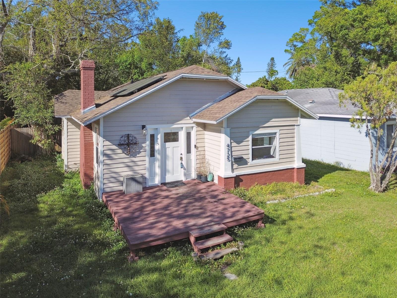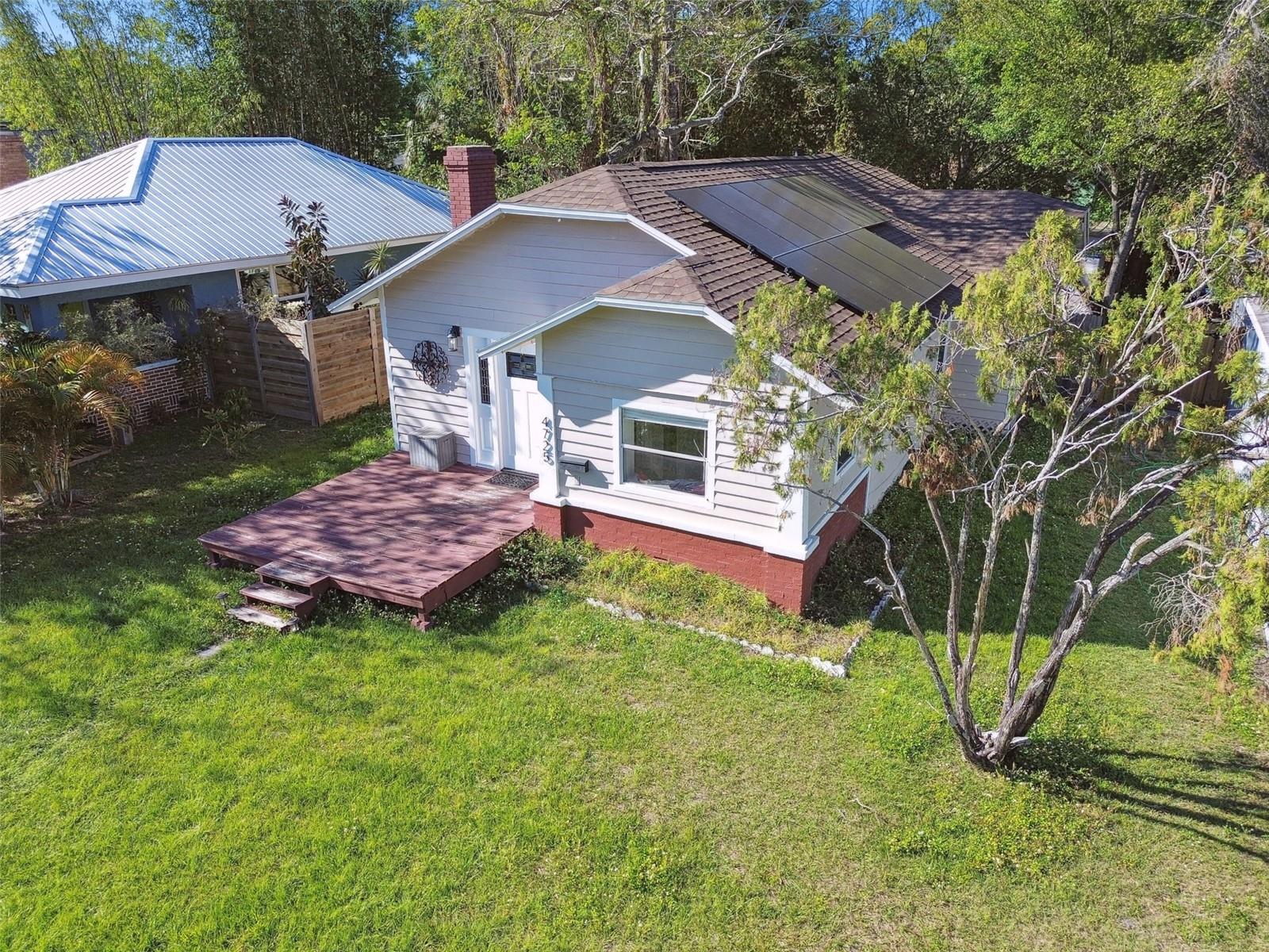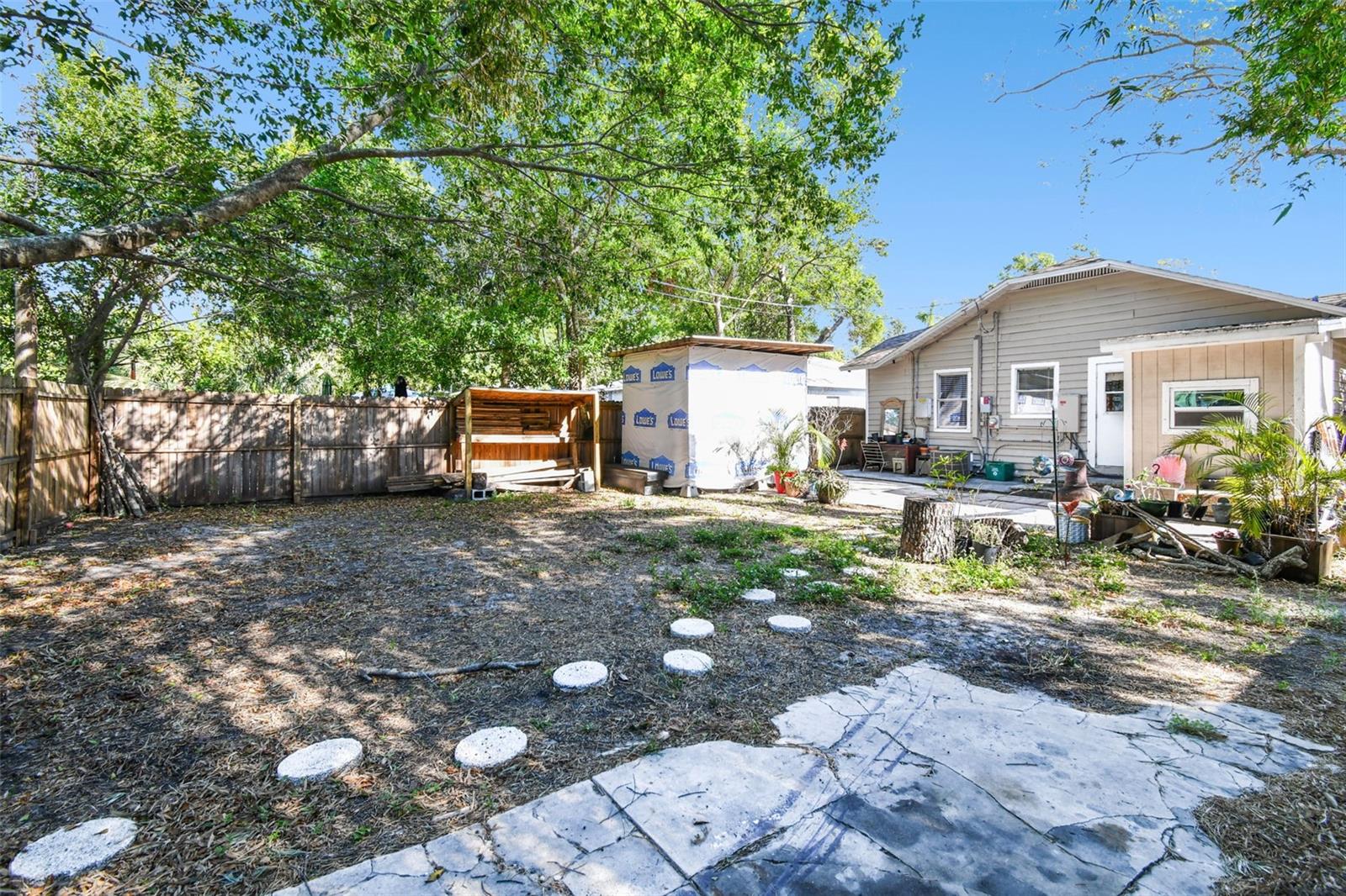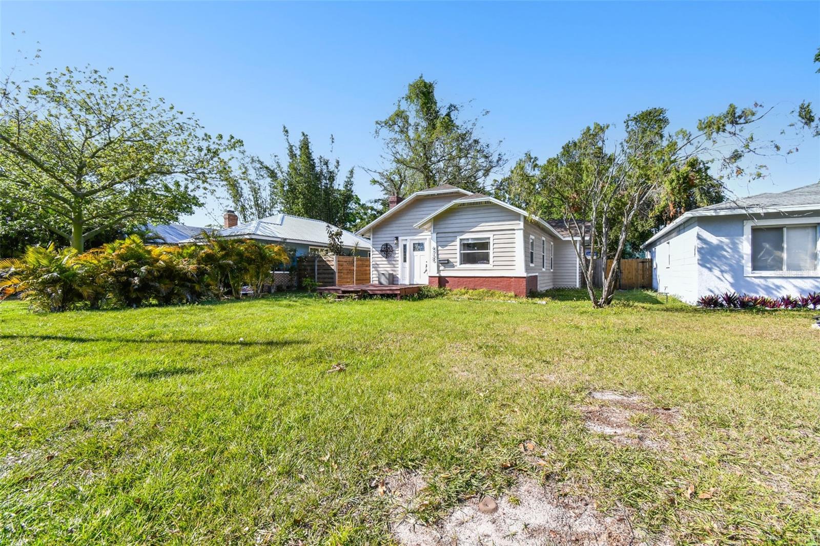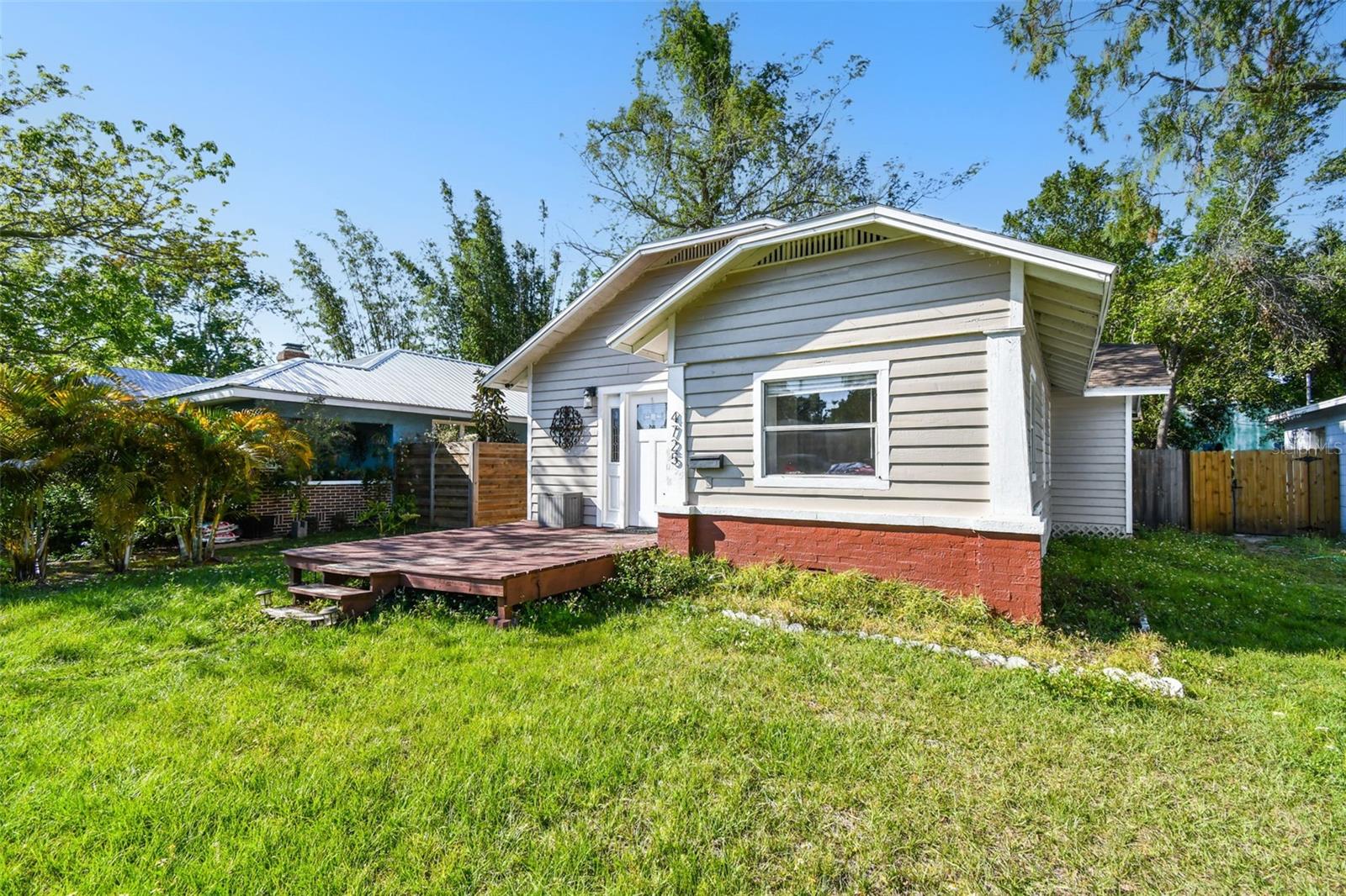Charming Bungalow with modern amenities in prime St Petersburgh location. This home is not in a flood zone and took no damage from the recent hurricanes. Looking for the perfect blend of comfort, convenience, and sustainability? This delightful home is a 4-bedroom 1-bathroom 1,091 square foot home is ready to welcome you home! Features you will love is 1,091 sq ft of cozy living space, perfect for the family. Beautiful laminate floors run throughout the main spaces of the home for easy maintenance and a sleek look. This home offers a spacious living room/dining room combination that is open to the simplistic kitchen. The kitchen has updated cabinetry and beautiful quartz countertops along with 3-year-old Frigidaire appliance package. This home offers a secured and private fenced in large yard, ideal for pets and outdoor enjoyment, with plenty of room for a pool or addition. A large shed, ready for you to finish to your standards, creates a potential workshop, studio, or extra storage. Convenient rear parking access for added convivence. RV or boat enthusiasts rejoice because there is ample space for all your toys also complete with a 50-amp hookup. Another A Plus option for this property is the Eco-friendly 22k worth of solar panels, ensuring low electric bills especially during the hot summer months. Roof is only 3 years old which is great for peace of mind. With this charming neighborhood you will enjoy the unique character of the brick pavers streets. But this location, location, is minutes from vibrant downtown St. Pete, offering a plethora of dining, coffee shops, shopping, entertainment options, or take in a baseball game with our beloved Rays. So many fun options just minutes away. Enjoy a short ride to our world-famous beaches. This home offers a unique opportunity to live comfortably in one of St. Pete's most sought-after locations. Don't miss out on this gem. Schedule your showing today.
