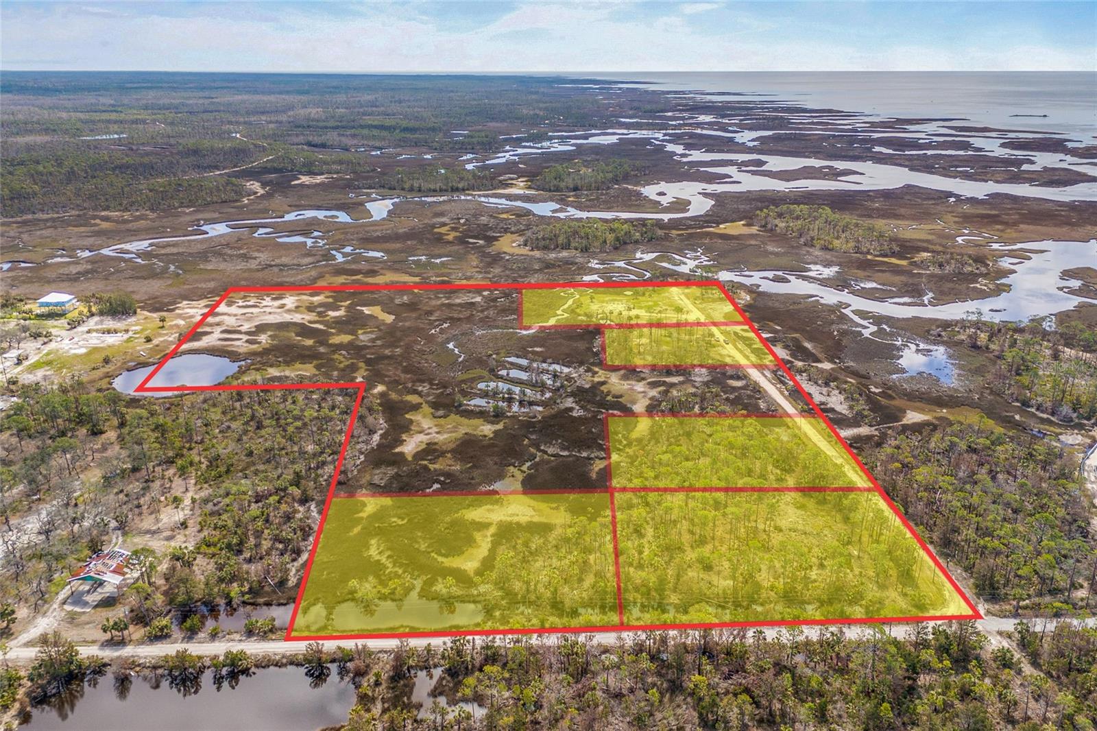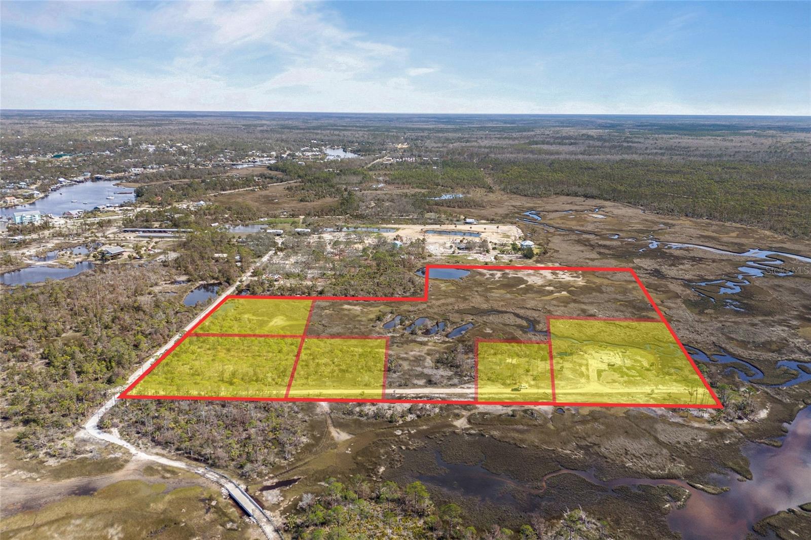 Waterfront Property for Sale on the Gulf of America! Picture yourself at the end of a private lane, where panoramic Gulf of America views, saltwater channels, and unforgettable sunsets create a daily spectacle. This property includes +/- 25.48 acres right in the heart of Steinhatchee. Bordered by state-owned land to the west, south, and much of the east, you'll find a truly tranquil and nature-filled environment. This rare waterfront retreat, divided into three parcels with potential for up to five homes or ventures like a private retreat, family compound, or eco-tourism development, is a boater’s and angler’s dream. Quick access to Deadman’s Bay Marina and Sea Hag Marina provides direct routes to world-class fishing and scalloping grounds. Immerse yourself in the laid-back charm of Steinhatchee, a historic fishing village known for its friendly community and unspoiled natural beauty, while enjoying the convenience of local dining, shopping, and year-round fishing. The surrounding state lands enhance privacy and offer opportunities for wildlife viewing. With a convenient location just 1.5 hours from Gainesville, 49 minutes to Chiefland, and minutes from Florida’s renowned springs and rivers, this prime waterfront location offers the perfect blend of tranquility, adventure, and investment potential in one of Florida’s most sought-after coastal communities.