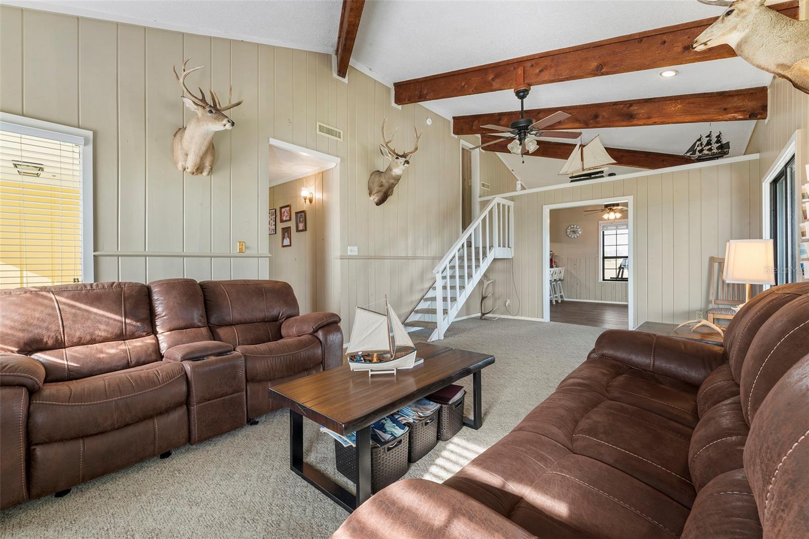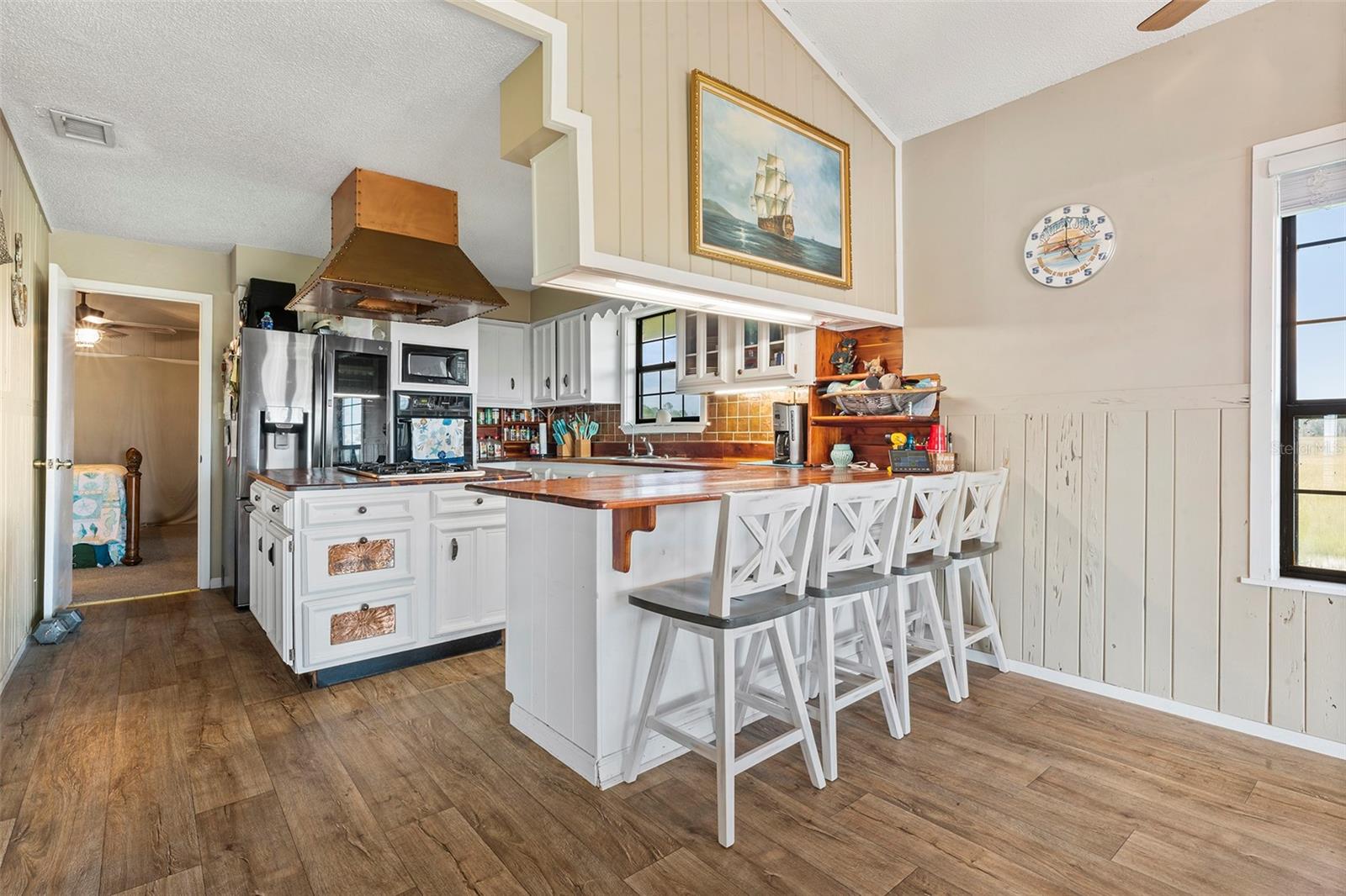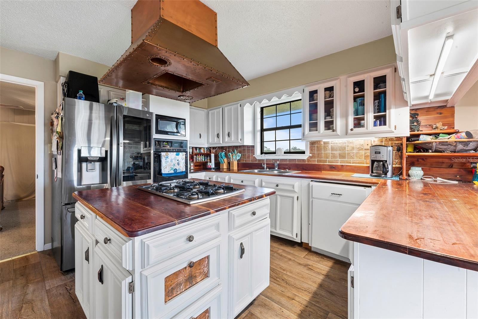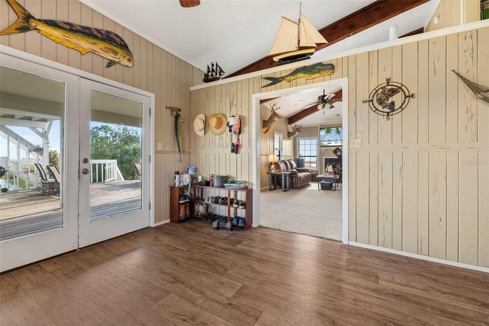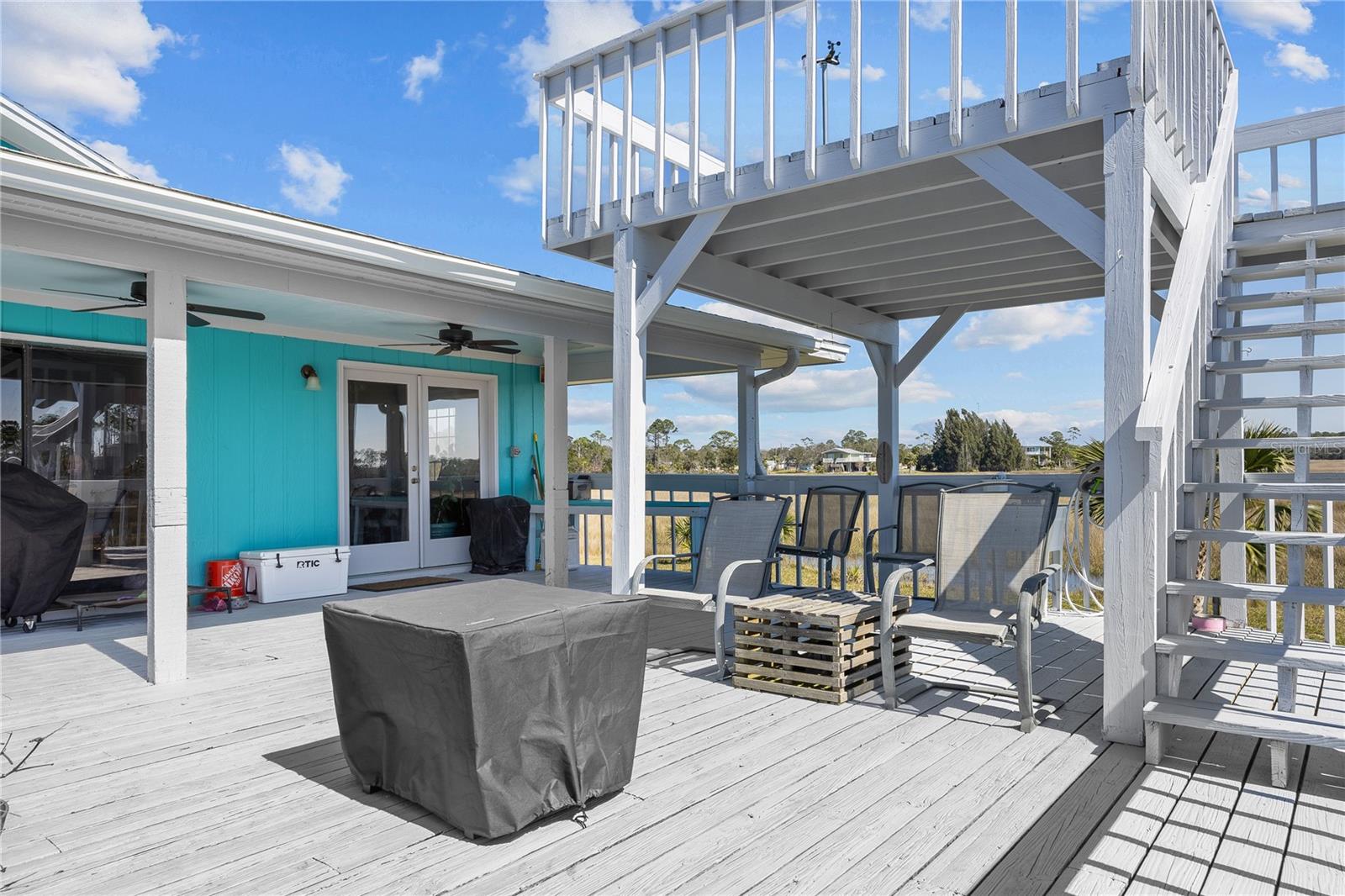 Experience paradise at the end of your private lane, where every vista showcases the beauty of the Gulf of Mexico, saltwater channels, and awe-inspiring sunsets. Nestled on 25.5 +/- acres in the thriving community of Steinhatchee, this 4-bedroom, 2-bathroom haven is a rare gem. Immerse yourself in nature as you relax on one of the decks, fish from your backyard, and marvel at the abundance of wildlife and birds. Recently refreshed with exterior painting, this home has weathered every storm with resilience, standing as a testament to its durability and strength. This home harmoniously blends with its natural surroundings, welcoming you with a charming open floor plan. The kitchen boasts custom-designed copper range hood and handcrafted cedar countertops, adding an artistic touch to the space. Glass French doors off the dining room lead to expansive three sided decks, offering breathtaking views and providing an ideal setting for entertaining friends and family. Below, ample space awaits to park your boat, toys, or create an outdoor kitchen area, offering endless possibilities for enjoyment. With state-owned land to the West and South, as well as a significant portion of the East, rest assured of unparalleled privacy and seclusion. Additionally, the property is divided into 3 separate parcels, opening avenues for future family homes or other ventures. Steinhatchee boasts top-notch amenities, including the state-of-the-art Deadman's Bay marina and the renowned Sea Hag Marina, accompanied by a variety of restaurants and shops. Known for its scalloping season and year-round fishing, this locale caters to outdoor enthusiasts. Conveniently located just an hour and a half from Gainesville, 49 minutes to Chiefland, and minutes from Florida's premier rivers and springs, this waterfront sanctuary offers the perfect blend of tranquility and accessibility. Don't miss this unparalleled opportunity to live in harmony with nature in one of Florida's most sought-after destinations.