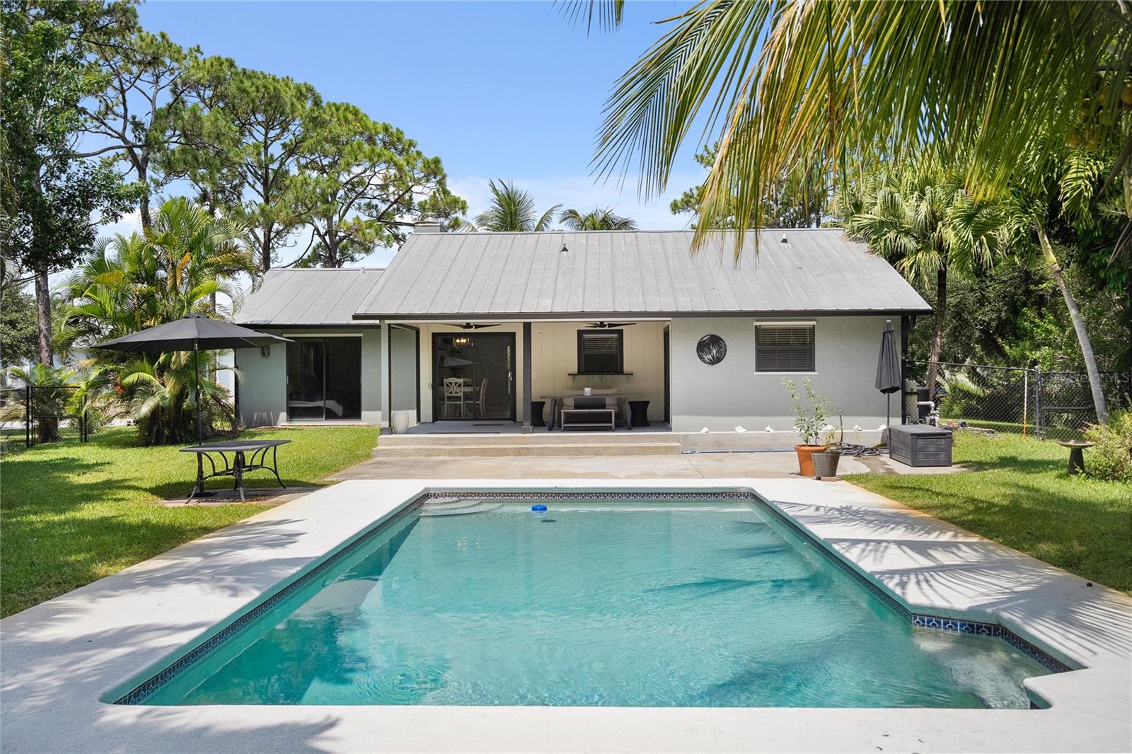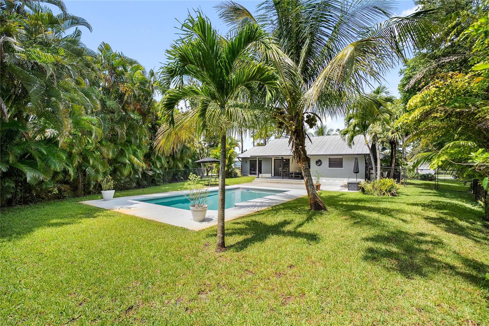 Welcome to your private tropical retreat with NO HOA and a gorgeous pool. This beautifully maintained 3-bedroom, 2-bathroom pool home offers 1,350 square feet of comfortable living space on a spacious private 0.32-acre lot. SELLER OFFERING up to 3% of purchase price towards closing costs/prepaids. Step inside to find a bright, open-concept layout featuring tile flooring, brand new cabinets and quartz countertops. The backyard is a true oasis, featuring a sparkling 15x30 pool surrounded by lush tropical landscaping and a mature wooded county lot next door, providing privacy and a serene atmosphere. A covered veranda area offers a shaded space for outdoor dining or lounging. Additional features include a 2-car attached garage, central cooling, and a metal roof. The property is located in the Vista Salerno Revised subdivision, offering a peaceful neighborhood setting. This home was built in 1990 and has only ever had 2 owners. Experience the perfect blend of comfort, privacy, and Florida charm in this exceptional Stuart home close to all the dining, banking, grocery stores that Stuart has to offer. ** WASHER/DRYER & ALL APPLIANCES INCLUDED
