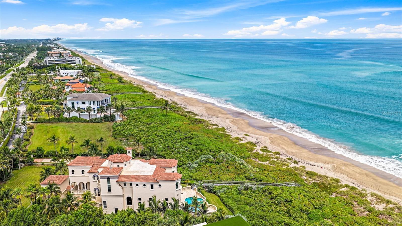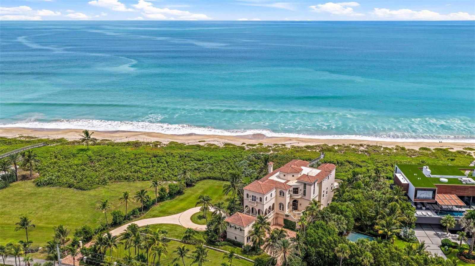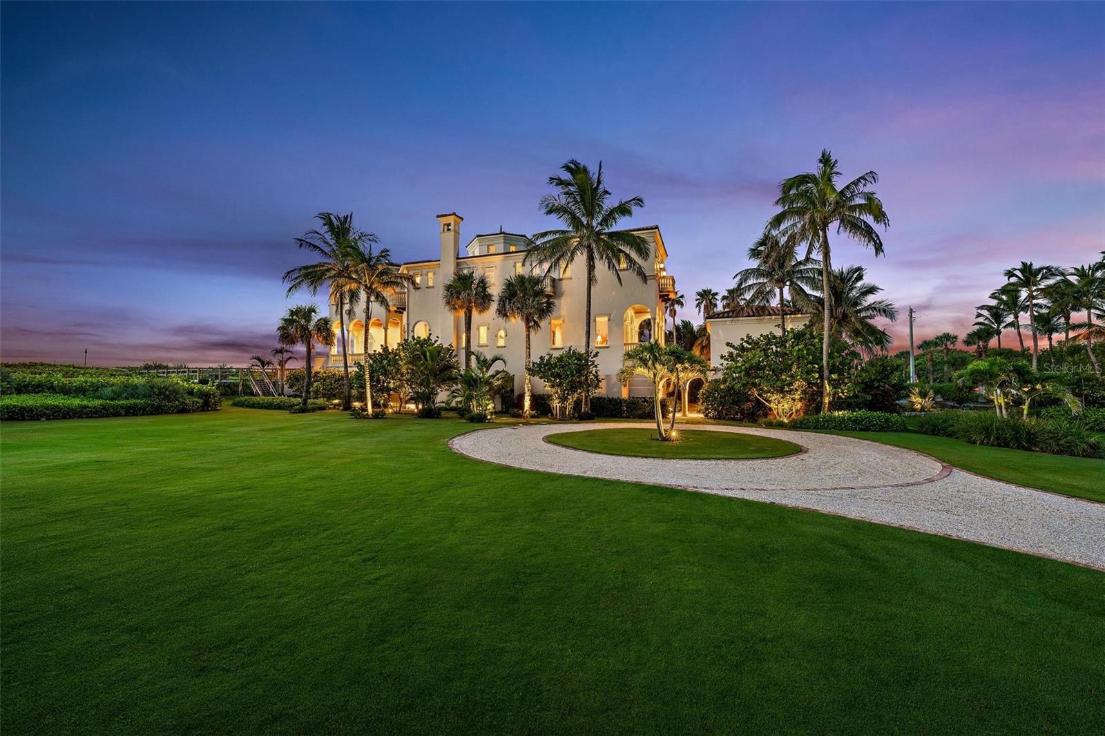 Welcome to Castillo de Mar, a landmark oceanfront estate in the intimate, gated community of Galleon Bay. Blending modern design with Mediterranean elegance, this residence offers 10,585 sq. ft. of living space (12,950 total) on 2 pristine acres of direct ocean frontage. Designed for luxurious living and entertaining, the home features 5 ensuite bedrooms, 6 full baths, powder room, a 2-story guesthouse, and a climate-controlled 5-car garage. A recent expansion added an additional landscaped oceanfront acre with a grand circular drive, while renovations include impact glass, pool, whole-house generator, entry gate, and automated window treatments (to name a few). Here, privacy meets convenience—10 minutes to private FBOs with U.S. Customs, 0.8 miles to yacht dockage for vessels up to 100’, and a short drive to Palm Beach. A rare opportunity to enjoy world-class luxury, effortless entertaining, and South Florida’s most desirable coastal lifestyle.