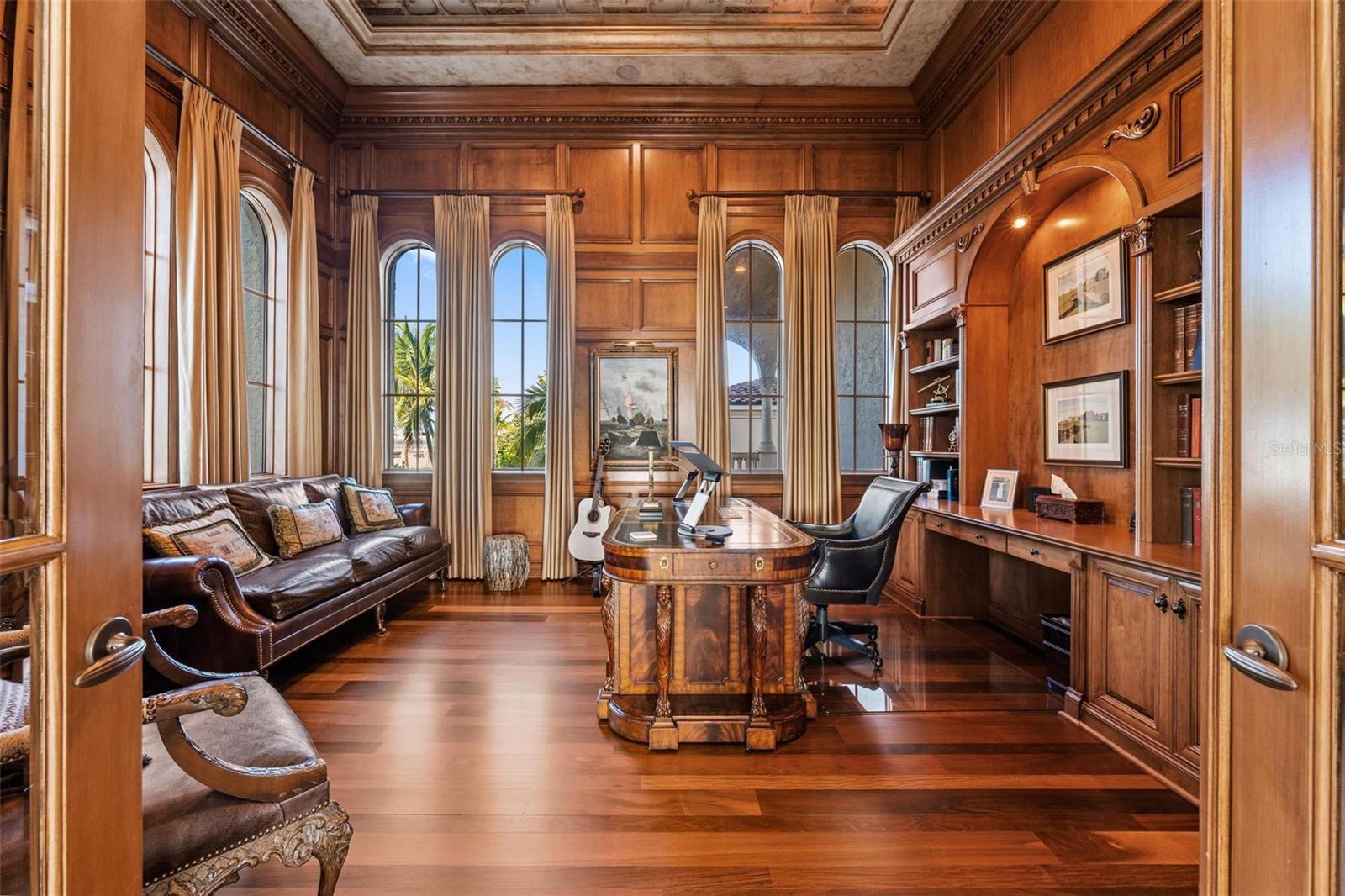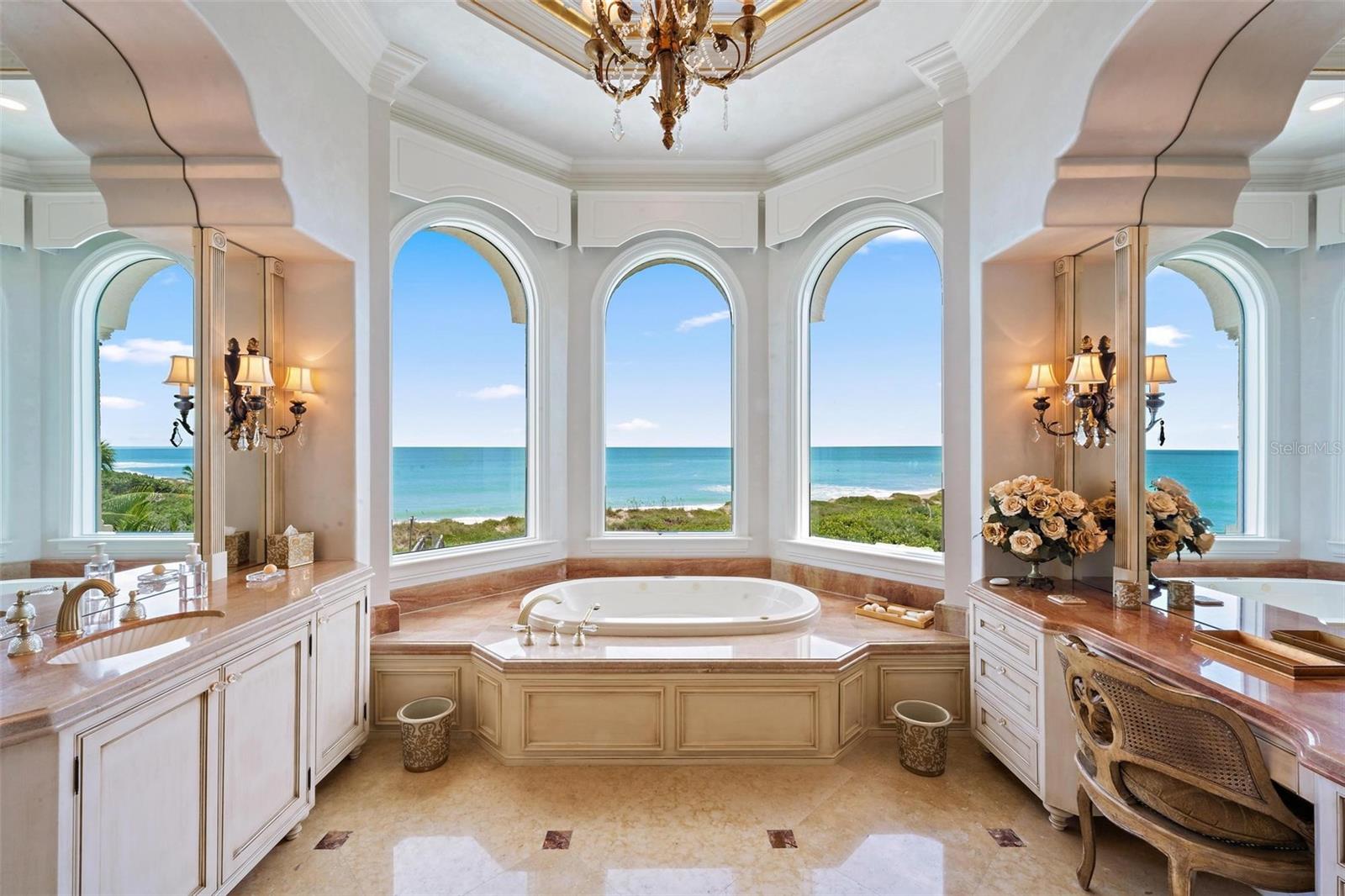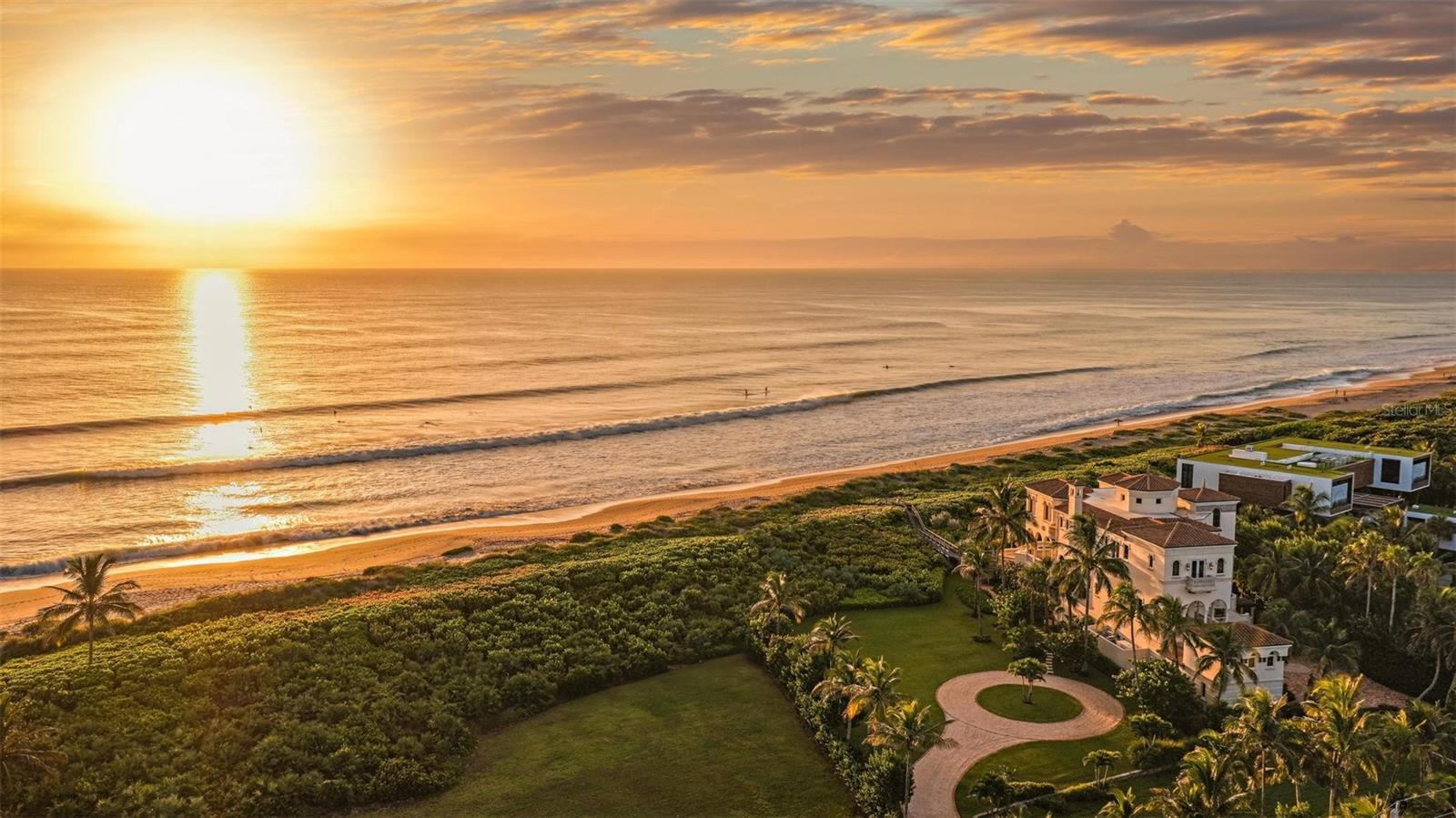Welcome to Castillo de Mar, a landmark oceanfront estate in the intimate, gated community of Galleon Bay. Blending modern design with Mediterranean elegance, this residence offers 10,585 sq. ft. of living space (12,950 total) on 2 pristine acres of direct ocean frontage. Designed for luxurious living and entertaining, the home features 5 ensuite bedrooms, 6 full baths, powder room, a 2-story guesthouse, and a climate-controlled 5-car garage. A recent expansion added an additional landscaped oceanfront acre with a grand circular drive, while renovations include impact glass, pool, whole-house generator, entry gate, and automated window treatments (to name a few). Here, privacy meets convenience—10 minutes to private FBOs with U.S. Customs, 0.8 miles to yacht dockage for vessels up to 100’, and a short drive to Palm Beach. A rare opportunity to enjoy world-class luxury, effortless entertaining, and South Florida’s most desirable coastal lifestyle.