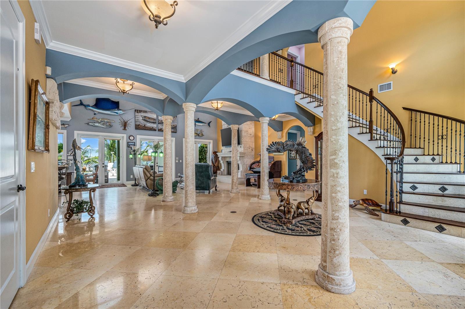 Would you like living 5 minutes away from the Atlantic Ocean by boat? If so, you might want to pencil this property to have a closer look at. Are you tired of the "hustle and bustle" of a busy city — traffic, crowds, and congestion? If so, please, keep reading, we have roundabouts! Do you enjoy fishing, golf, or watersports like sailing or wing foiling? If so, you're in the right place. The City of Stuart is known as the Sailfish Capital of the World for a reason. We have numerous golf courses and some of the best beaches on the east coast of Florida. With beach access every 1-2 miles, wide white sand, ample parking, and fewer crowds even during peak winter season, you might love the simplicity and happiness this lifestyle offers. Please don't hesitate to reach out with any inquiries. This stunning riverfront home offers breathtaking wide river views and an incredible backyard complete with your own sandy beach! Boating enthusiasts, rejoice—your private dock is a dream come true, featuring top-of-the-line composite decking and massive 33,000 lb and 16,000 lb lifts. And the best part? You're just minutes away from the Saint Lucie Inlet with no fixed bridges in your way. As you enter through the gated entry, you're welcomed into a world of elegance and serenity. The resort-like ambiance is complete with a heated salt-water pool and spa, fruit trees, and a cozy firepit. This residence offers plenty of space for both living and entertaining, plus a spacious three-car garage. The first floor is an entertainer's paradise with a grand foyer and living room, formal dining room, family room with fireplace, media room/office, a chef's kitchen, entertainment bar, butler's pantry, guest suite, and cabana bath. Whether you're hosting a fancy dinner party or just enjoying a quiet evening by the pool, this home has it all. Welcome to your slice of paradise—just don’t forget your sunglasses and a straw hat!