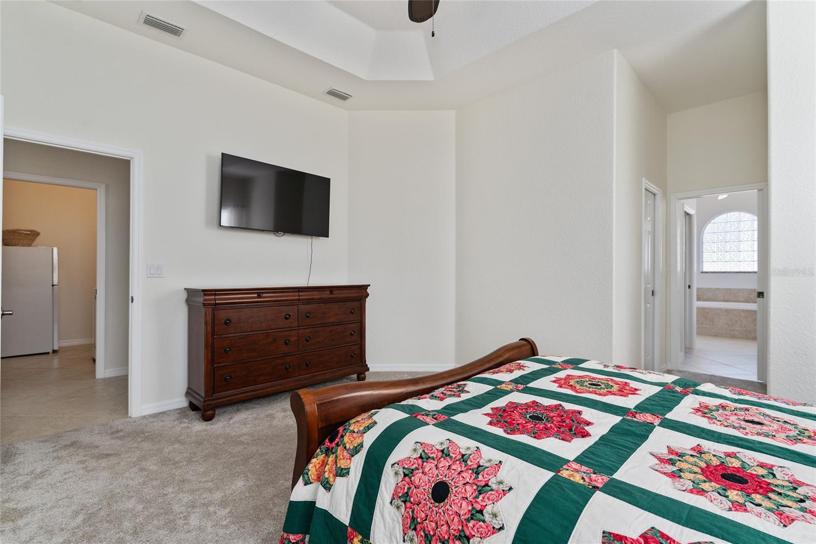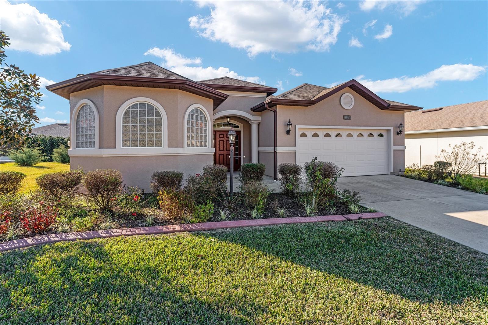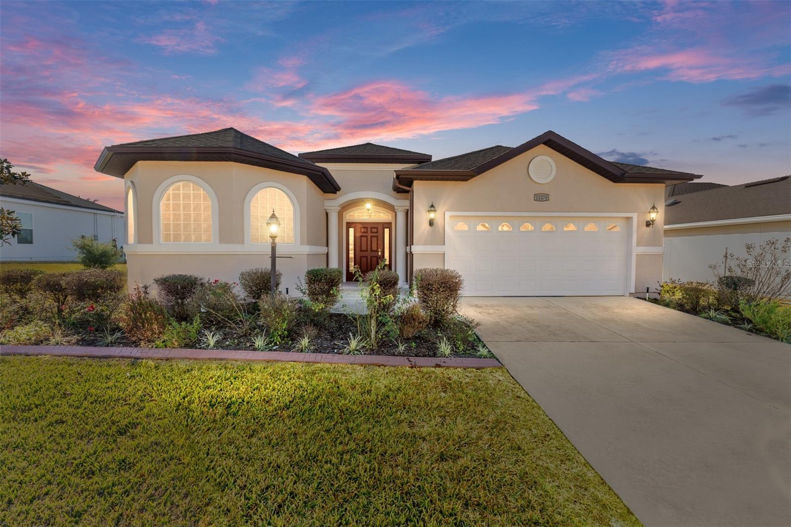 Enjoy a best kept secret in the exclusive 55+ gated golf community of Stonecrest, a vibrant and active neighborhood located just minutes from The Villages, Florida. This beautifully designed Maple floor plan by Armstrong offers the perfect blend of luxury and comfort, featuring 10-foot ceilings throughout, granite countertops, and elegant tile floors. The bedrooms are newly carpeted for added coziness, and the HVAC system, upgraded in 2021, includes a hydrostatic filter for pristine air quality. The spacious primary suite serves as a personal retreat, complete with a soaking tub, a large walk-in shower, and dual comfort-height vanities with stunning granite countertops. His-and-hers closets provide ample storage space, ensuring both functionality and convenience. The home’s thoughtful layout offers privacy with a split-bedroom floor plan, while the foyer includes a coat closet for additional storage. Designed for both relaxation and entertaining, the lanai with an extended birdcage provides the perfect setting to enjoy your morning coffee or unwind in the peaceful surroundings. The home also features both a formal dining room and a cozy breakfast nook, offering options for both formal meals and casual dining.Living in Stonecrest means access to an array of resort-style amenities, including four pools—one of which is indoors—pickleball and tennis courts, a softball field, and RV storage. The community is filled with clubs, groups, and activities, fostering an engaging and social atmosphere. Additionally, residents enjoy the convenience of nearby restaurants, doctors, and hospitals, all accessible by golf cart. Stonecrest is more than just a place to live; it’s a place to thrive. Schedule a tour today and experience the lifestyle and comfort this exceptional home portrays.