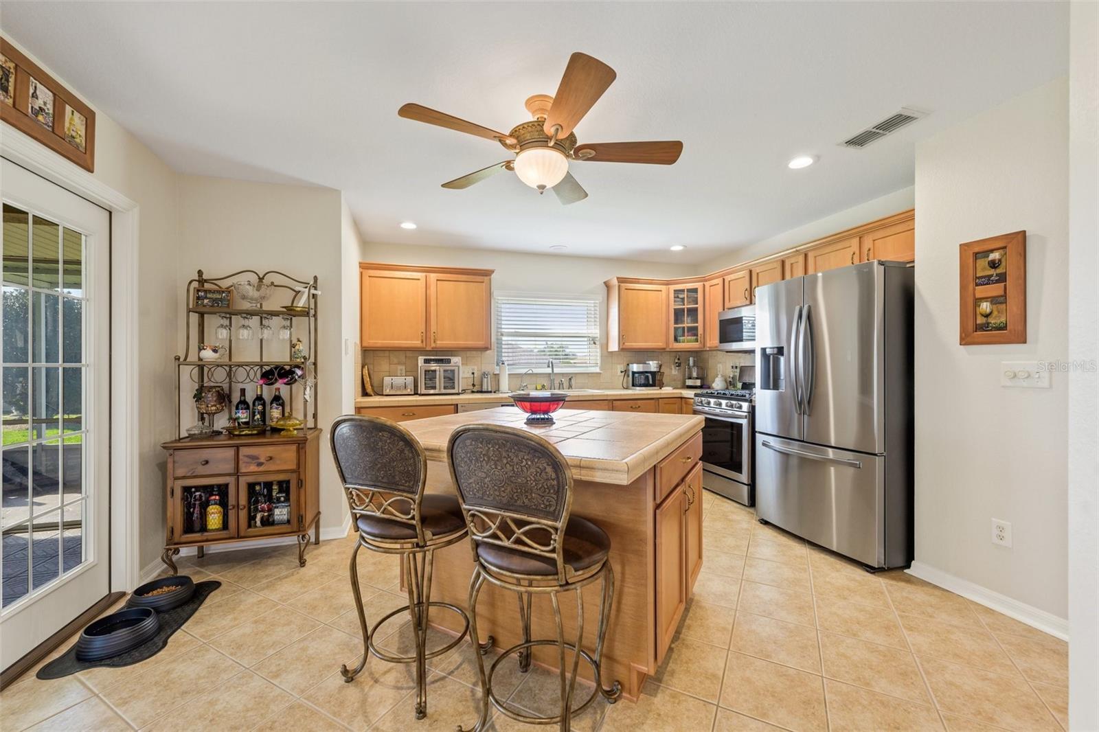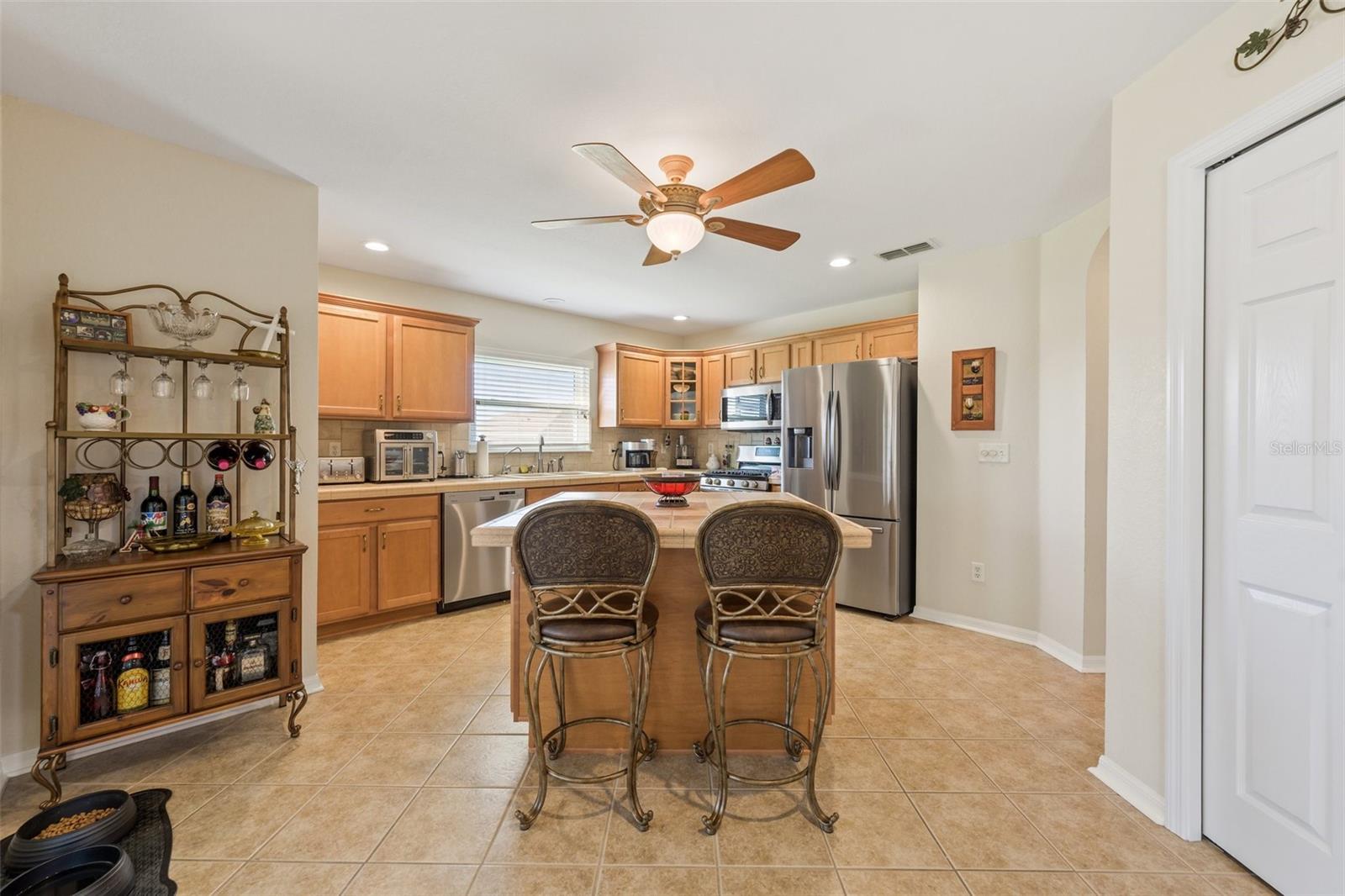 Welcome to your dream home in the sought after STONECREST COMMUNITY bordering THE VILLAGES! STONECREST 55+ is a PRIVATE, GATED, GOLF COURSE/CART community with all the AMENITIES! 4 POOLS ( 1 INDOOR), SOFTBALL, GYM, over 100 DIFFERENT CLUBS to join and many other AMENITIES! This STUNNING 2-bedroom, 2-bath with a spacious DEN/or THIRD BEDROOM home boasts numerous recent updates. This home features a NEW ROOF in NOVEMBER, 2023, ensuring peace of mind for years to come, and an AC system installed in 2018 for optimal comfort. The exterior was FRESHLY PAINTED in 2024, providing a captivating curb appeal. New DOUBLE PANE FOLDING WINDOWS installed in 2017 making it super easy to clean and maintain. ALL NEW FLOORING and APPLIANCES, 2017. 20 SOLAR PANELS, 2017, which has DRASTICALLY lowered the sellers utility bills down to an average of $35-$60 monthly. UPGRADED ADT SECURITY SYSTEM along with a RING DOOR BELL, 2023. OVERSIZED GARAGE and TONS of STORAGE SPACE in attic above garage. Seller had plywood flooring installed for added convenience. Home comes with a full house CULLIGEN WATER SOFTENER and REVERSE OSMOSIS SYSTEM and is equipped with a Generator, connected to two 40 Gallon Propane Tanks, ensuring peace of mind in case of a power outage. Step out into the enclosed screened-in lanai which includes 3/16" Acrylic windows and be mesmerized by the professionally landscaped lawn, a perfect oasis for relaxation and entertaining and.... The lot is approved for the installation of a pool. Home also comes with a transferable Home Warranty which is transferable at closing and is valid until March of 2025. Home is located right around the corner from the community amenities making the location of this home SUPURB and HIGHLY SOUGHT AFTER. This home is a MUST SEE. Schedule your private showing today.