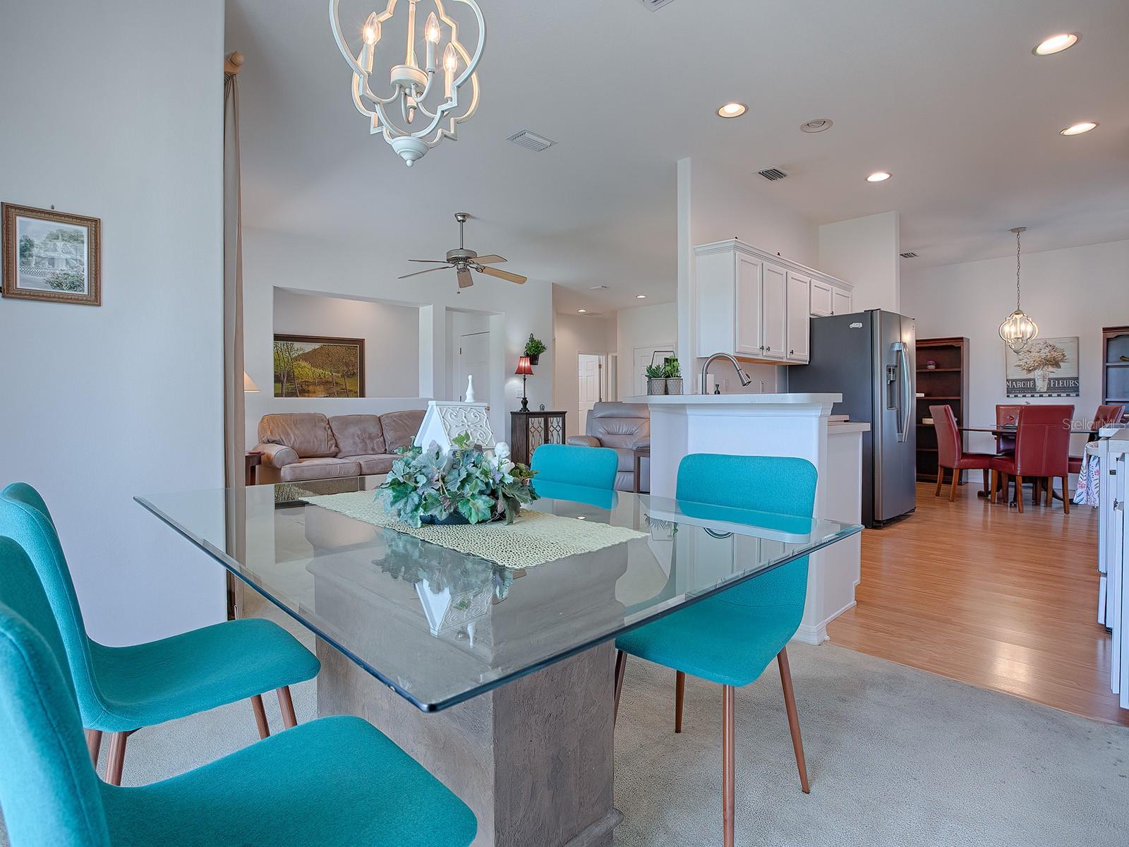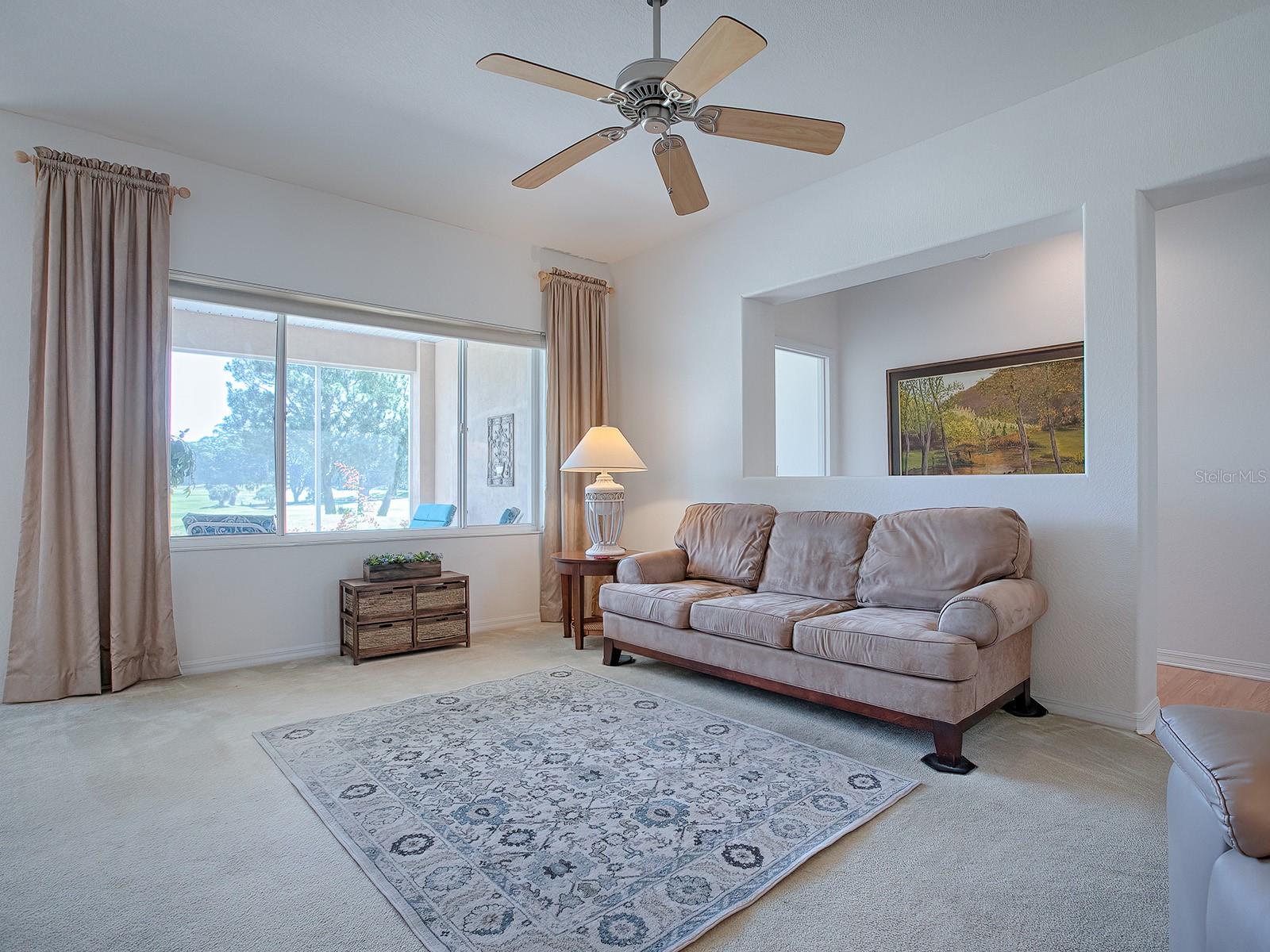 PRICE IMPROVEMENT!!! Enjoy Golf Front living with a gorgeous view at a Great Price!! This lovely 3 bedroom/ 2 bath (Den/3rd bedroom does NOT have a closet) home in Del Webb Spruce Creek Golf & Country Club comes furnished and can be yours today. New Roof 2024, New Hot Water heater 2/2020, New Air Compressor 2021, New Paint Inside, New Vanities and Counters in Both Baths! From the moment you walk up you will be able to see yourself living here. The living area opens onto the kitchen and breakfast room so you can enjoy entertaining your guests while you prepare the meal or drinks. The kitchen also has a breakfast bar for casual eating and dining. Enjoy relaxing on the screen enclosed lanai. The primary bedroom has an all around view of the golf course and wildlife from the built in reading nook with storage below. Both baths have new vanities, cabinets and marble countertops. The primary bath features a glass enclosed walk in shower, separate water closet and large walk in closet. You can enjoy reading or watching TV in the den with built in shelving for more storage. Your guests can relax in their own spacious bedroom with attached bath at the other end of the house. The kitchen features white cabinets, glass top range and SS refrigerator, dishwasher and microwave, as well as a nice pantry for the chef in your home. You will love the inside laundry just off the 2 car garage with screen. Spruce Creek Golf and Country Club offers all the amenities you need, including golf, tennis, pickleball, softball, indoor heated lap pool and a gym. Come live the luxury Country Club life in a true Gated Community at an affordable price!! Call us today for your private showing.