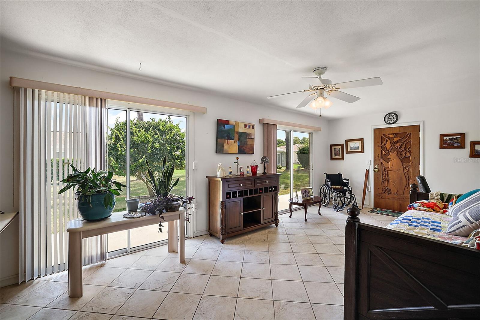Remarkably well kept 2/2 Palm model in the vibrant and fulfulling 55+ Spruce Creek Golf and Country Club. This home has a freshly painted interior (2021), HVAC (2018), large enclosed lanai under air that has beautifully crafted cabinentry for your office, intricate hand carved wooden door that leads to the sitting area. The lot itself is large enough to support a swimming pool or bird cage. The kitchen features matching high end stainless steel appliances for the budding chef in your family, new garbage disposable (2023). Located close to the 441 entry gives you quick access to Ocala or The Villages. Only a few miles from the VA clinic, hospitals, premiere shopping and restaurants. Come look at this move in ready home waiting to be yours! Call today for your own personal tour.