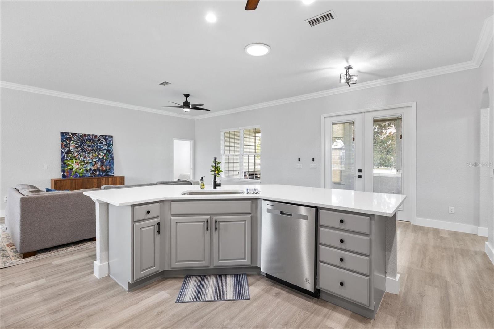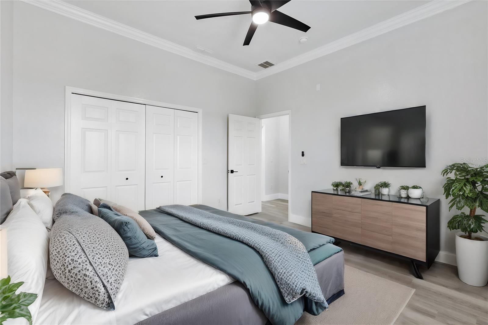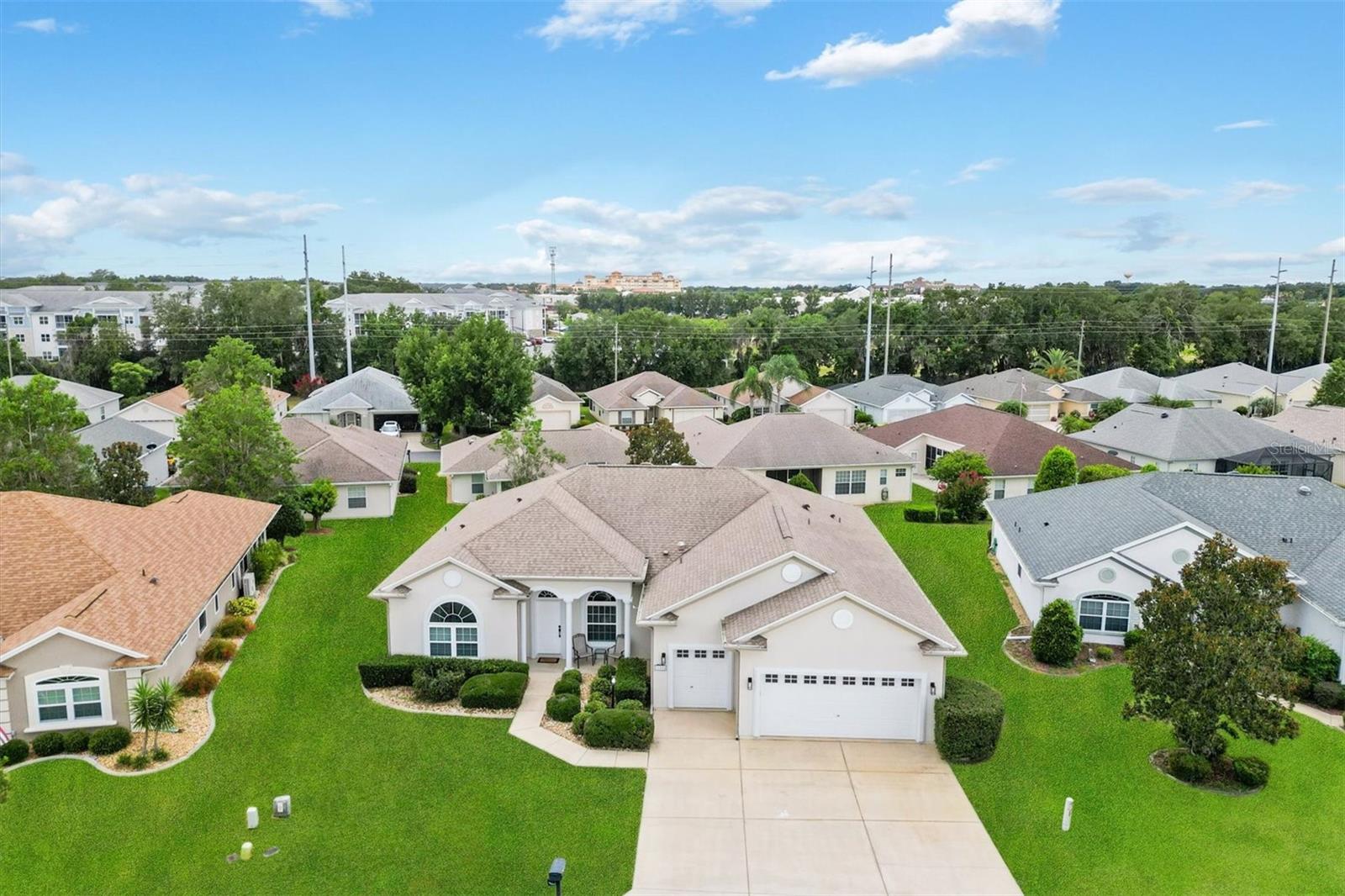 One or more photo(s) has been virtually staged. This stunning 2002-built Cedar floorplan home has been COMPLETELY REMODELED and is located just outside The Villages in a truly GATED, resort-style community. Pictures don’t do this home justice—it looks even better in person! With a new roof (2020), a 5-ton HVAC system, & water heaters (2024), there’s no concern about the home’s age. Boasting 4 bedrooms, 3 full bathrooms, an oversized 2-car garage, and a golf cart garage with 11’ ceilings, this home is a MUST-SEE. Upon entering, you’ll be wowed by the natural lighting, high-end upgrades, and brand-new flooring throughout—luxury vinyl planks in the living areas and porcelain tile in the bathrooms (no carpet). The 10’ ceilings, along with 6” baseboards and crown molding throughout, elevate the sense of spaciousness & elegance! Kitchen & laundry room even feature skylights for extra natural light. Gourmet kitchen is a chef’s dream with REAL WOOD cabinets, SOFT-CLOSE drawers/cabinets, QUARTZ countertops, matching backsplash, & stainless steel appliances (new dishwasher & microwave). This massive kitchen island offers ample seating, a farm sink, & open to the living room, perfect for entertaining! Master suite is designed to impress with two WALK-IN closets—one featuring BUILT-IN drawers & shelving—& a luxurious bathroom that includes a spacious walk-in shower with double shower heads, a makeup area, & sleek modern finishes. Plus, there’s a 2nd MASTER SUITE with its own private bathroom & walk-in shower with a sliding glass barn door! Both the 3rd and 4th bedrooms are spacious with built-in closets & modern finishes, & the 3rd bathroom mirrors the 2nd but in a slightly smaller footprint. ENCLOSED LANAI is perfect for YEAR-ROUND enjoyment with porcelain tile, 11’ ceilings, & an abundance of natural light! The oversized garage comes equipped with built-in cabinets, a sink, and pull-down attic stairs. The attic is equipped with plywood flooring, providing extra storage space, & well insulated making the home energy efficiency! Don’t miss out on this one-of-a-kind home that combines modern luxury with resort-style living!