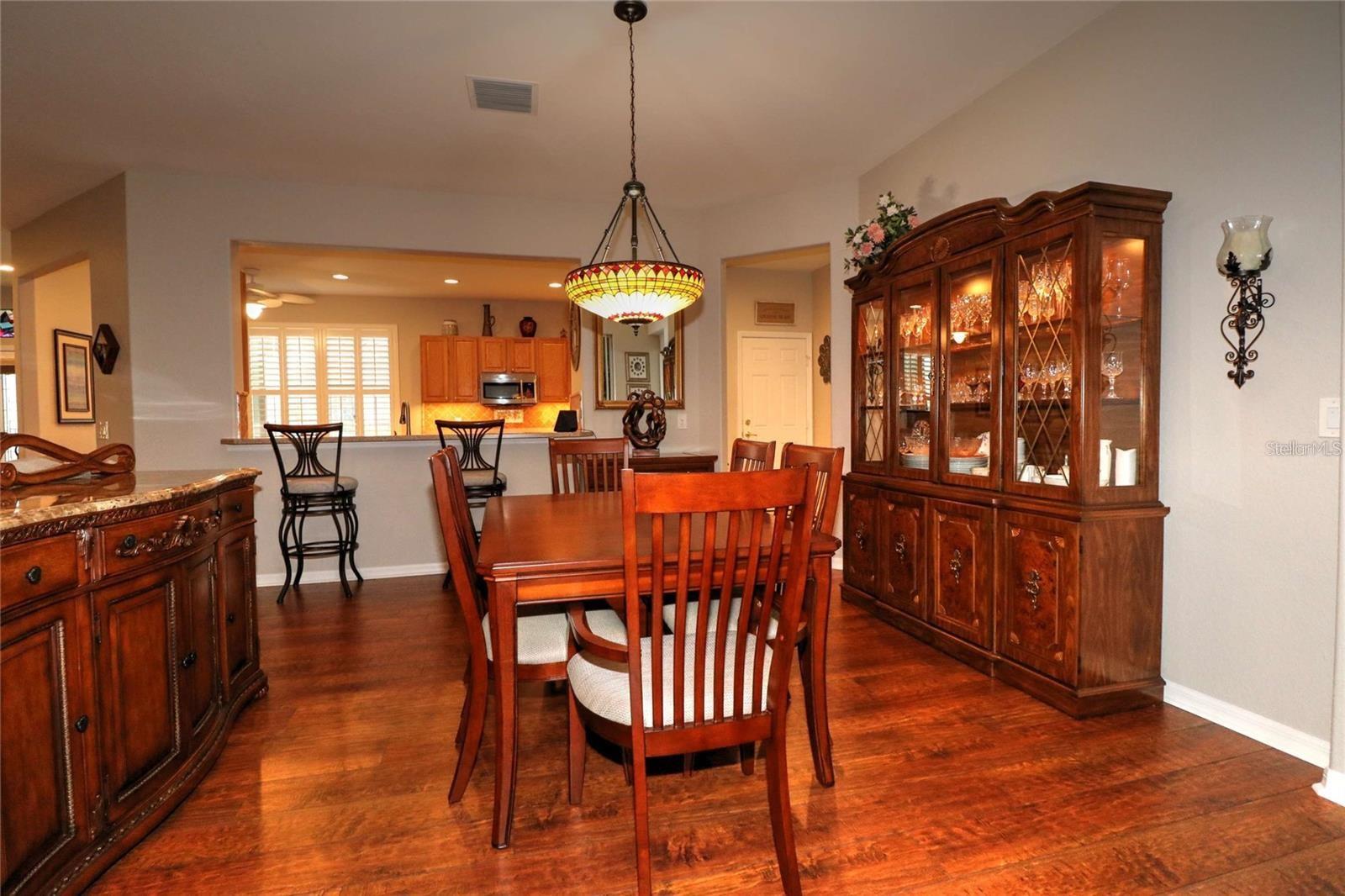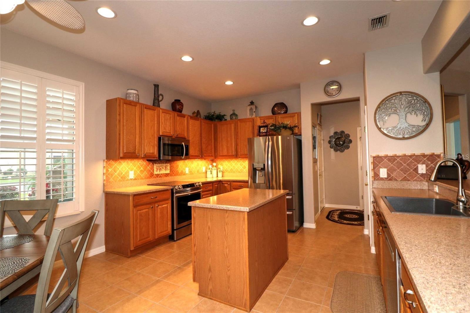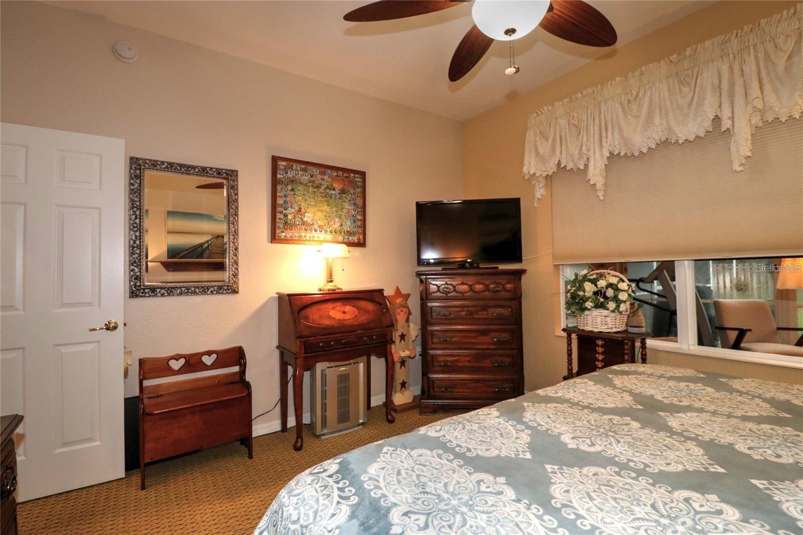 One special kind of home. Great curb appeal. Designer drive/walkway (2023). Front porch with eastern exposure patio. Wonderful place to enjoy your morning coffee and read the paper. Concrete block and stucco. Designer double door entry with phantom screens. Popular open, split floor plan. Library with full built-in shelving/sitting beach off of the entry foyer (laminate flooring). Lovely formal dining and great room concept (laminate flooring). Built-in shelving in living room with plenty of storage. Eat-in kitchen with island shutters, breakfast bar, island, and closet pantry compliments the stainless steel appliances & slate backsplash. Primary bedroom (carpeting) with en suite bathroom featuring double sinks, shower, tub, water closet and walk-in clothes closet. Guest bedroom (carpeting). Bonus room for the craft enthusiast or additional storage. Lanai is enclosed with acrylic full-view windows, a mini split for climate control and beautiful designer tile floor (40' by 10'). The lanai opens up to a screened 16' by 14' birdcage with patio space around the birdcage. Talk about living the Florida lifestyle. Oh, and did I mention a private backyard. Garage is oversized and also has awesome storage cabinetry. Laundry is located in the garage. Re-shingled September 2023. HVAC 2015. Re-piped in 2020. Home has been well taken care of (immaculate and move-in ready). Designer wall color and ceiling fans. Some of the furnishing/furniture will be available for sale under a separate package.