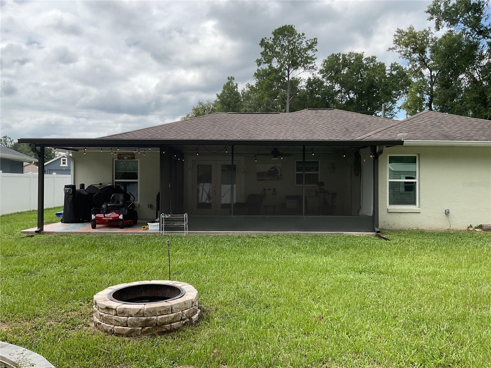 This beautiful home is excellently located in Orange Blossom Hills area right outside The Villages. Enjoy all that The Villages has to offer, including numerous restaurants, entertainment, golf, shopping, recreational activities, medical facilities, grocery stores and more, all without the HOA fees! Built in 2018 the spacious 1507 sqft. home features a 3-Bedroom, 2-Bathroom split floorplan and a two-car garage. The home welcomes you with an open floorplan containing the living room/kitchen area and eat in dining room with vaulted ceilings. French doors from the kitchen lead into a screened Florida room with an adjacent covered porch perfect for grilling out. The backyard has a fire pit, 8 x12 shed, is fully enclosed with vinyl fencing and there is no neighbor on one side offering further privacy. Other key features include luxury vinyl/tile throughout, stainless steel appliances, granite counter tops, water filtration system, custom blinds, laundry room, walk-in closet off the master bedroom, dual sinks and walk-in shower in the master bathroom. This is a great starter home, call to schedule a showing today!