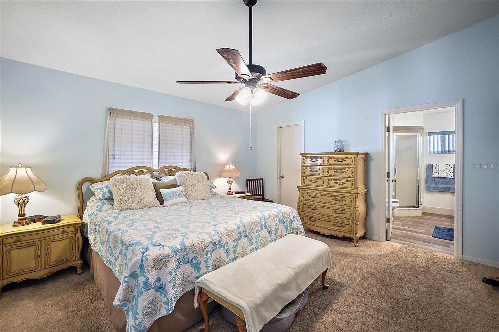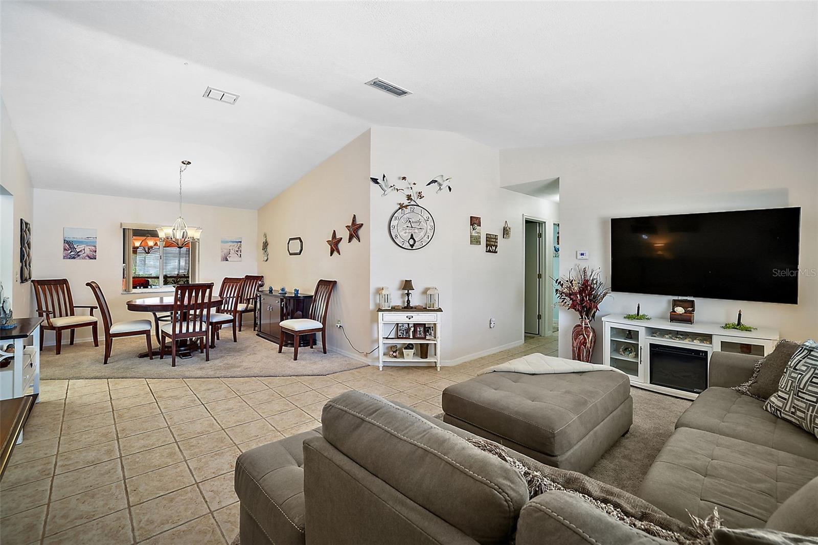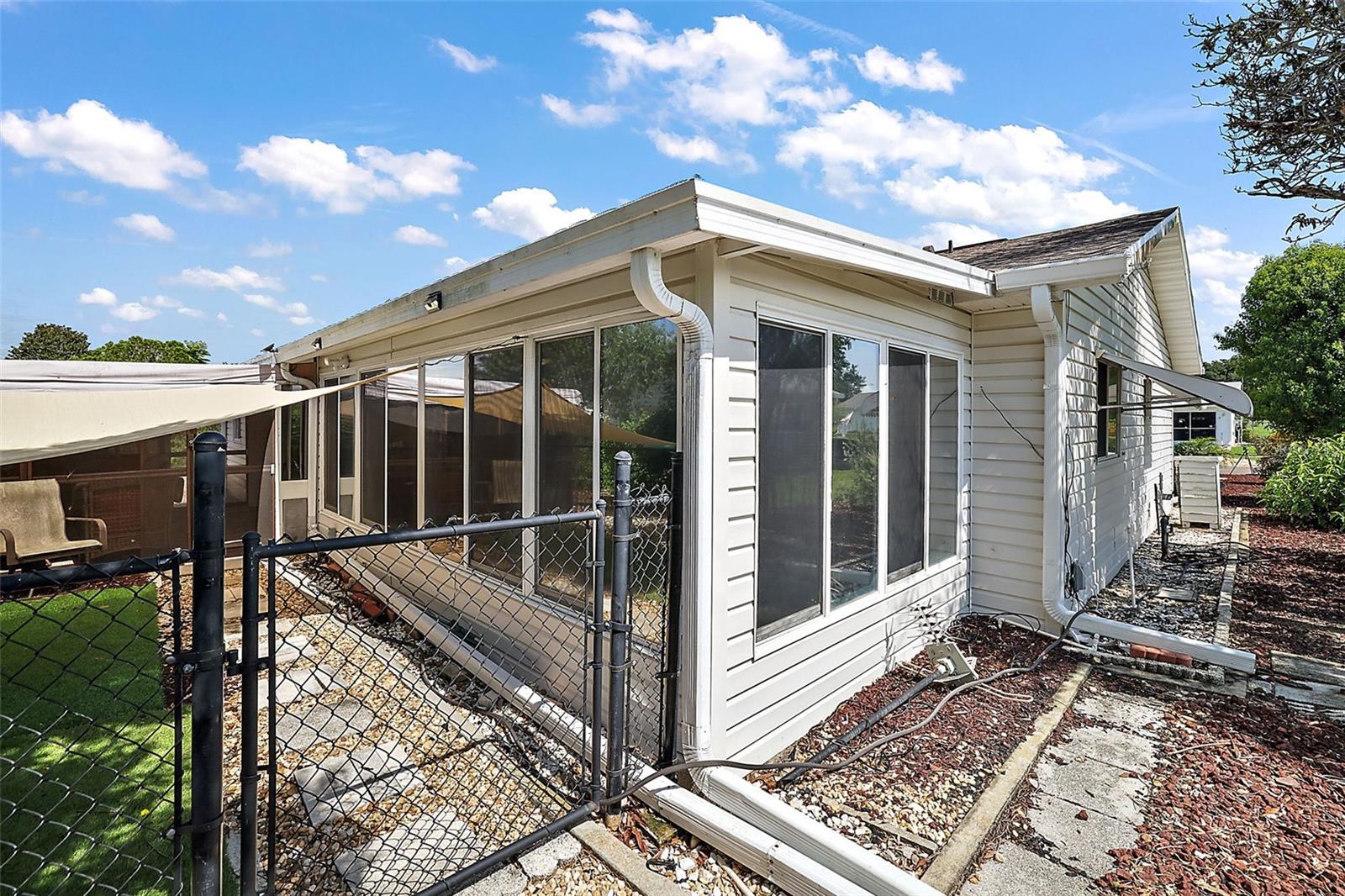Fabulous Active Retirement Living. SPRUCE CREEK SOUTH 55 + Gated Golf Community. This fabulous home offers a 3-bedroom and 2-bath split floor plan. As you enter, a large open Living Room and dining room await you, perfect for entertaining friends and family. To your left is a marvelous updated Kitchen and Family Room. The kitchen offers loads of counter space, storage cabinets, and a breakfast bar with updated granite countertops and Stainless Steel appliances. Overseeing the kitchen, you can enjoy a large family room perfectly set up for watching loads of TV and getting together. Hey, if you need more TV space or an in-home office, there is an oversized 10x20 enclosed Florida Room with central heat and air remote roll-down blinds and tile flooring. Three large bedrooms with a split floorplan work perfectly when family and guests come by for a short stay. The primary bedroom is an ample size 14x14 with an ensuite bathroom, a walking-in shower, and an extra-long vanity with abundant storage. If you need another entertainment spot or getaway, look at the outdoor covered patio with screens and shades. Pretty patio pavers lend party lighting to the unique feel of this secluded porch. For the four-footed friends, there is a fenced-in dog walk. If you like convenience and ease, this home site virtually offers no lawn upkeep. This could be perfect for the new owner who could be here part-time, or if do not like yard work!! New roof December of 2022 and newer AC/Heat unit approx five years old. Spruce Creek South offers many activities: golf courses, volleyball and pickleball, dance club, veterans club, exercises and swimming, crafts and card clubs, tennis, softball, and more! And best of all, this home is one block away from the hub of activities. For future owners/neighbors, if you are looking for a community to belong to Spruce Creek South, it may very well be what you are looking for. You are invited to make an appointment and see for yourself. We think you will love it!1