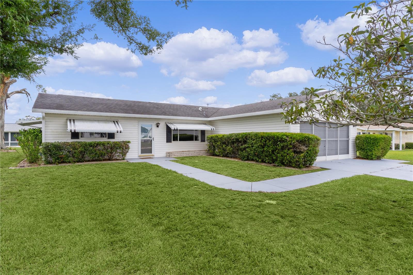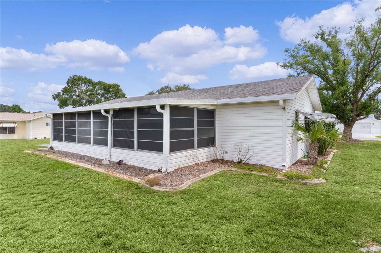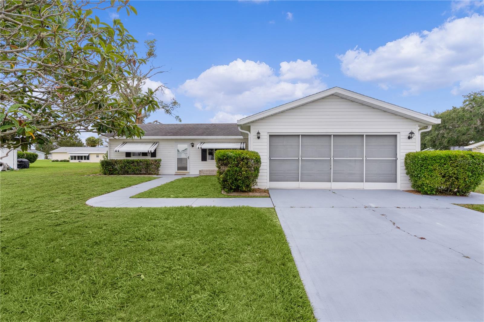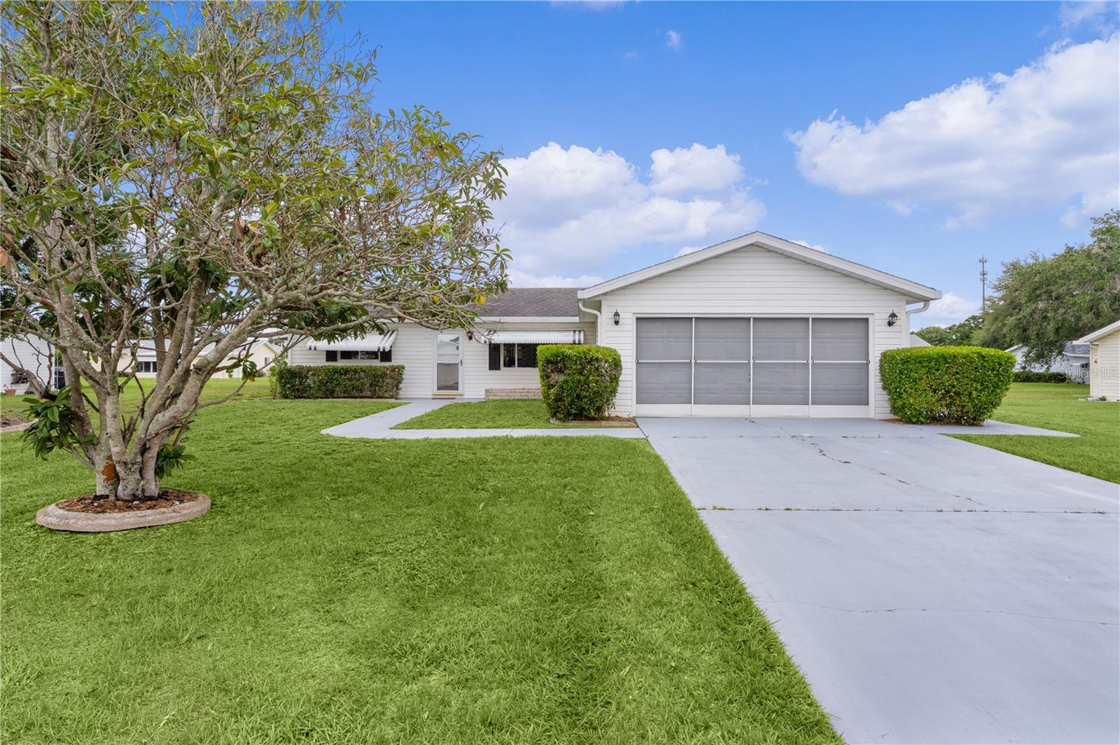 WOW!..MOTIVATED SELLER offering unbelievable incentives! $5,000 FLOORING CREDIT! NEW ROOF before closing! BEST PRICED HOME in Spruce Creek South. Welcome Home to the retirement lifestyle you've dreamed of in Central Florida! Located in charming SPRUCE CREEK SOUTH, a vibrant 55+ retirement community with spacious lots and mature trees, this ever popular Chestnut Model home is known for its open concept floor plan, 2 bedroom / 2 bathroom layout. The bright kitchen has an island overlooking your living room and dining room perfect for hosting your neighbors' book club or pot luck dinner. The primary bedroom features an elegant en suite with BRAND NEW TILED Walk-In, handicap-accessible shower and large walk-in closet. The guest bedroom (with walk-in closet) and guest bathroom are also ample in space providing your guests with privacy and room to relax. The home has a FRESHLY PAINTED INTERIOR including the extended/enclosed LANAI (which has room for outdoor dining and additional entertaining space), driveway and walkway adding to the over all curb appeal of the home. The garage door has sliding screens for added enjoyment of the outdoors, mature landscaping and a NEW HOT WATER HEATER. Nestled conveniently next to THE VILLAGES, you're only a stones throw away from fabulous dining, shopping and entertainment but let's not forget the amazing amenities you'll enjoy right here in Spruce Creek South. With NO BONDS, a low monthly HOA fee and easy access to amenities, The Links Golf Course (golf for an additional charge), you can start living your dream retirement lifestyle today!! Give me a call TODAY!